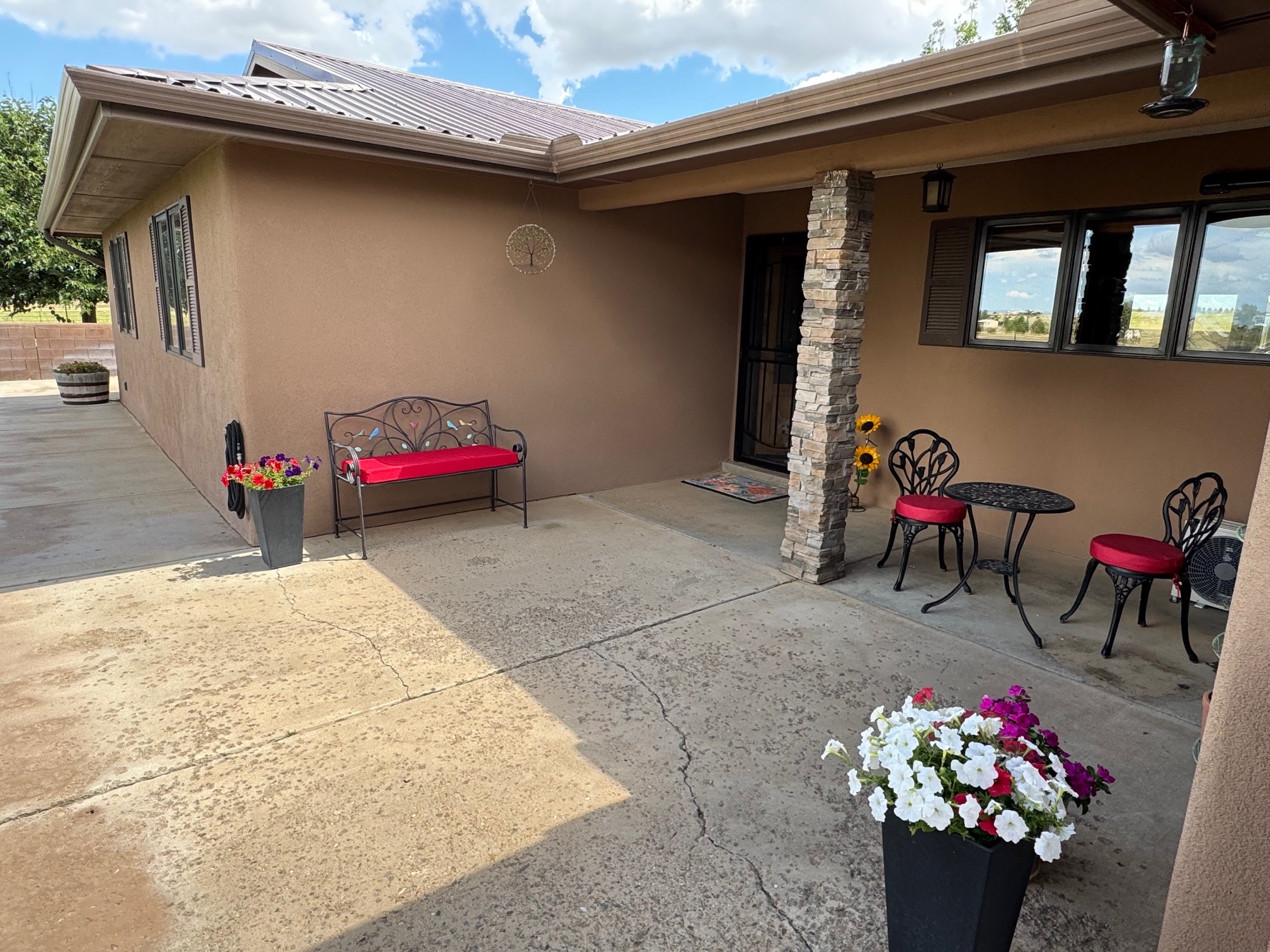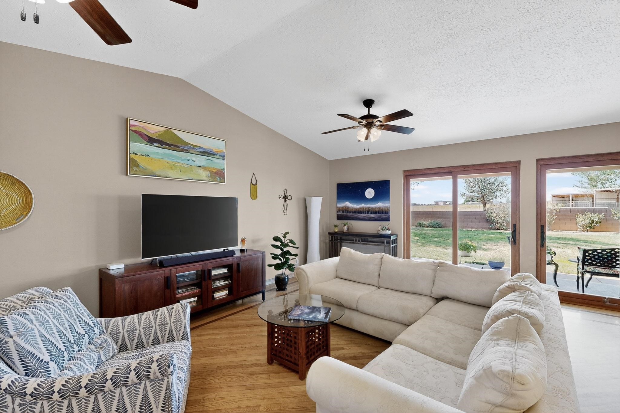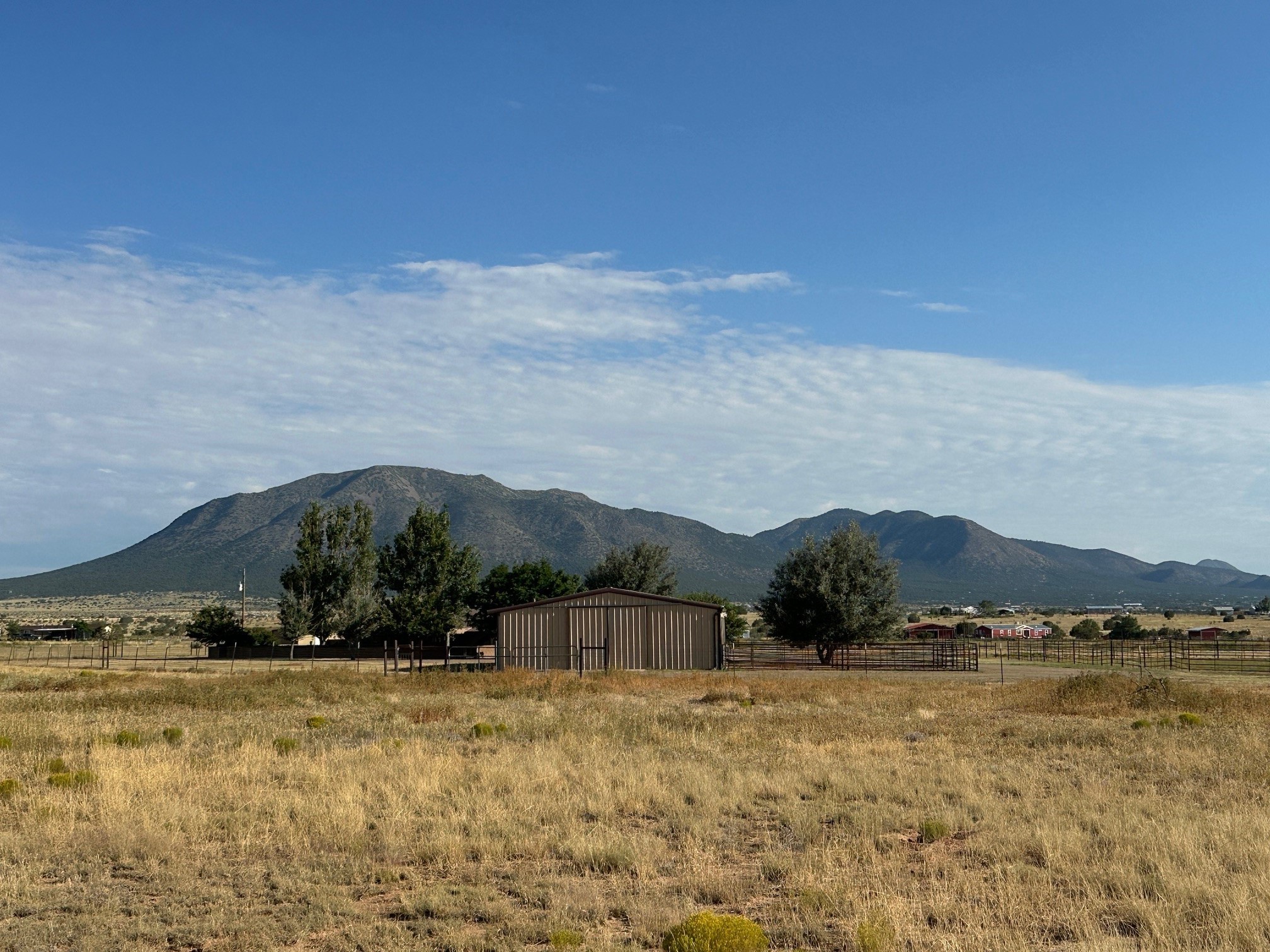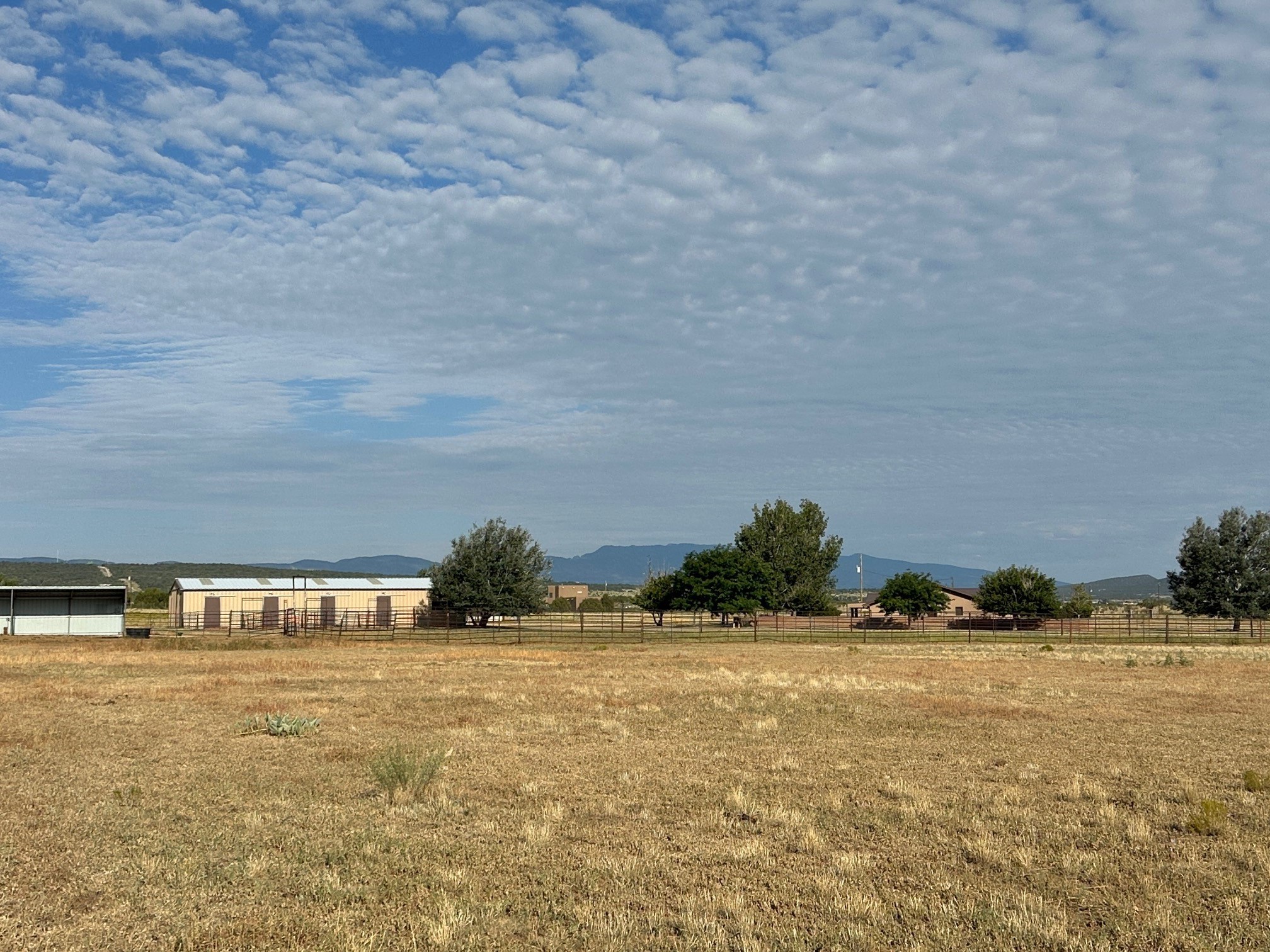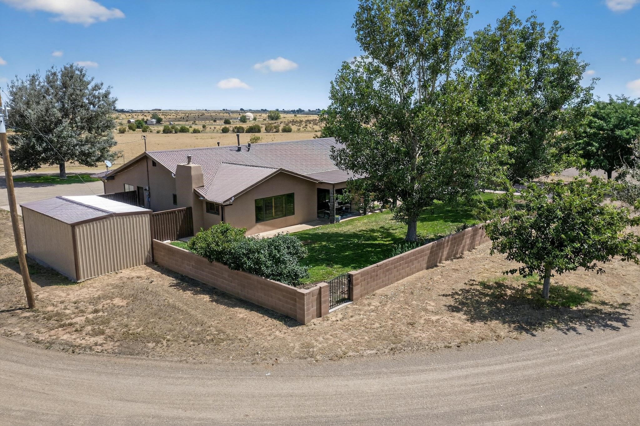This true equine estate has finally come on the market so don't miss your opportunity to own this amazing property. 38.8 acres fully fenced and cross fenced! 3051 heated sqft of main home and guest suite. This estate home boasts hardwood floors throughout, with custom touches, large spacious open floor plan with great room and kitchen for entertaining, primary bedroom suite with wall to wall closets, double vanities, and exterior access. 3bed 2bath main home, 2 living areas, gourmet stainless steel kitchen, laundry room with storage. There are so many built in storage and closets the possibilities are endless on how you use it. Oversized finished 2 car garage with built in storage. 4 stall barn with finished tack room, and 1 bedroom, 1 bath, kitchenette, walk in closet: guest suite.Not only are you going to love this estate, but your animals will love it too! Full sized arena for your use and three cross fenced pastures all with barn loafing sheds. Water has been run throughout the property to the barns for the convenience of keeping the critters taken care of. The approx. 2300 sqft barn has pull through capability, a finished tack room, 4 walk out stalls, hay storage, rubber floor mats, and a 363 sqft guest living quarters! A large equine estate like this doesn't come up for sale in the East Mountains/Southern Santa Fe County area too often, and none are as nice and custom as this property. If you are needing a place to kick up your boots, let your critters stretch their legs, and for yourself to relax from dawn to dusk, you have found your 38.8 acre slice of paradise with this equine estate.