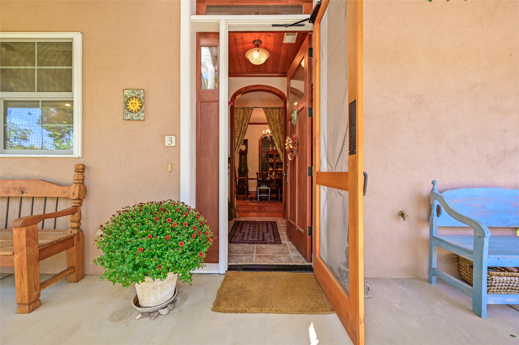 Welcome to 3 Vista Lagunitas: A classic old world style home that truly is set apart from the rest. The builder of this 3 bedroom 2.5 bath custom-crafted home originally built it for himself and it shows. From the vaulted wooden ceilings and custom-fit trim molding, to the choice solid wood doors throughout the home, you will find unparalleled quality at every corner. The northern New Mexico style exterior blends in well amongst the mature Juniper and Pinon Trees that populate the spacious and private 1.155 acre lot. You'll enjoy the best of outdoor living underneath the shady portal spaces and the established gardening locations are a joy to be had. What a fantastic opportunity to own a beautiful home in such an ideal setting. This is the dream home you've been waiting for!