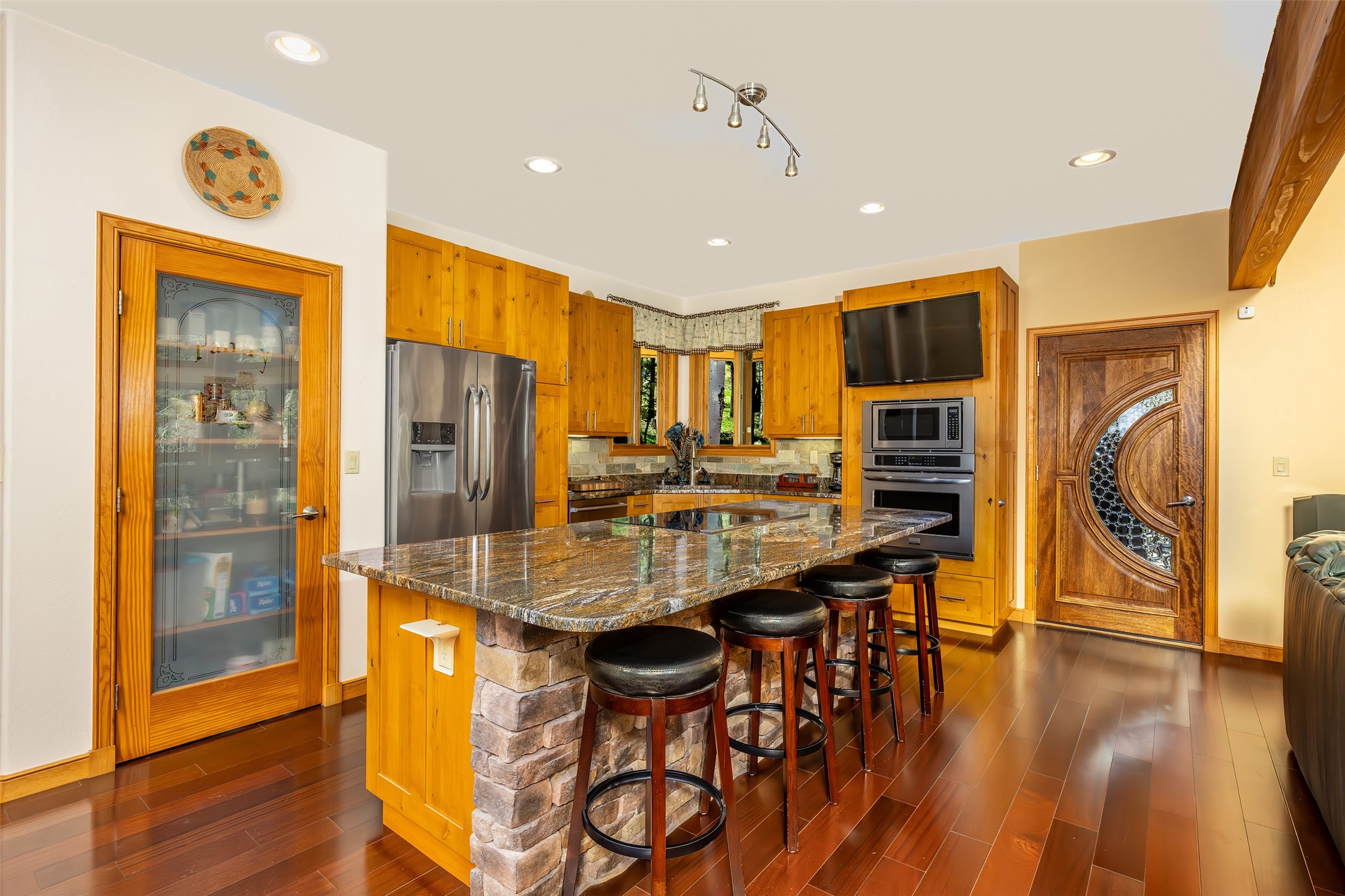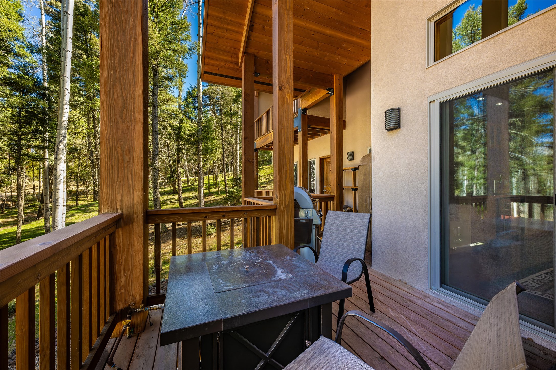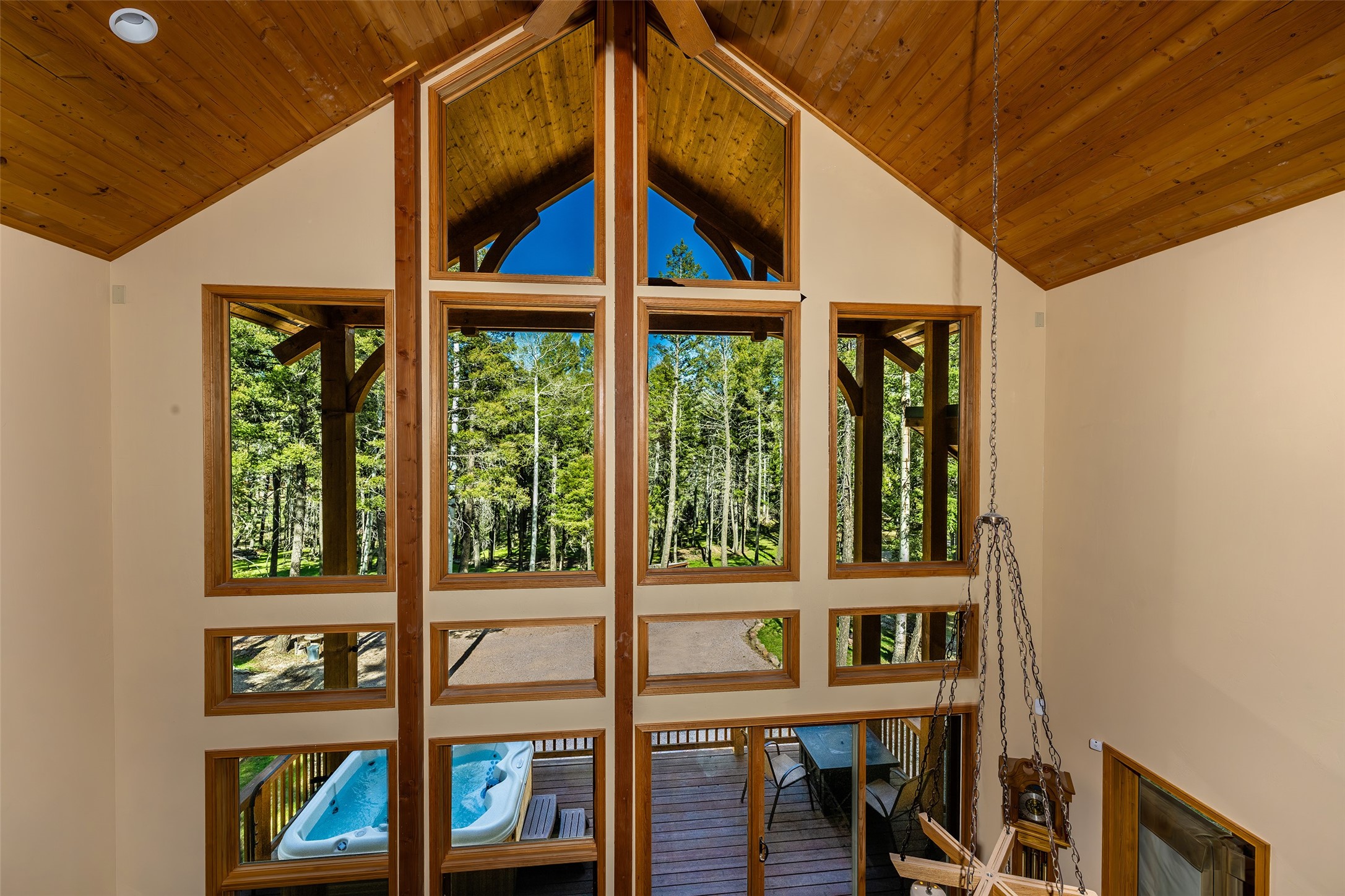 This beautifully maintained property sits on over 2 acres of fire-wise thinned forest, offering both privacy and peace of mind. Thoughtfully upgraded with high-quality appliances, luxury furnishings, and quality finishes throughout, this home combines comfort with sophistication. A gourmet kitchen designed for culinary excellence is perfect for both everyday living and entertaining in style. The towering rock-wall fireplace exudes rustic elegance and warmth. Stunning floor-to-ceiling windows create a seamless connection between indoor living and the large, reinforced covered decks built to withstand the elements and support outdoor living year-round. With ample space for dining, lounging, and gathering, this is truly an extension of the home--where nature and luxury meet. Unwind after a long day in the private hot tub, perfectly positioned to take in the serene mountain landscape. Key features include a home theatre room, an elegant wine cellar, an electric firewood hoist plus two spacious storage sheds for added convenience. Additionally there is a 30 AMP RV hookup for visiting guests and a redone gravel driveway for improved access and curb appeal. Access to nearby hiking trails, stocked fishing lake, PGA rated golf course, ski resort and country club all just minutes away. A true mountain oasis, blending modern upgrades with natural beauty. Move-in ready with furniture and meticulously cared for--this is the mountain lifestyle at its finest.