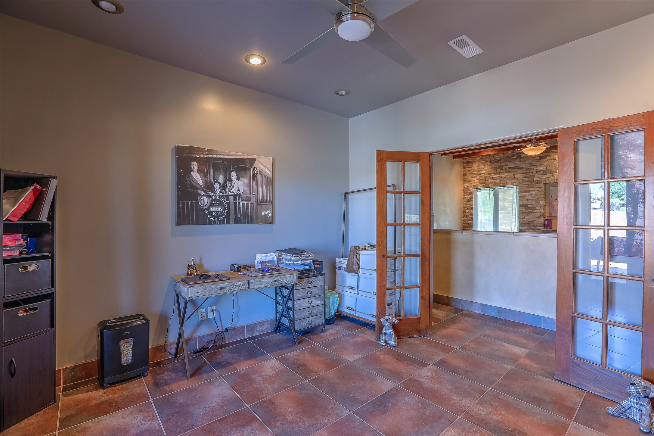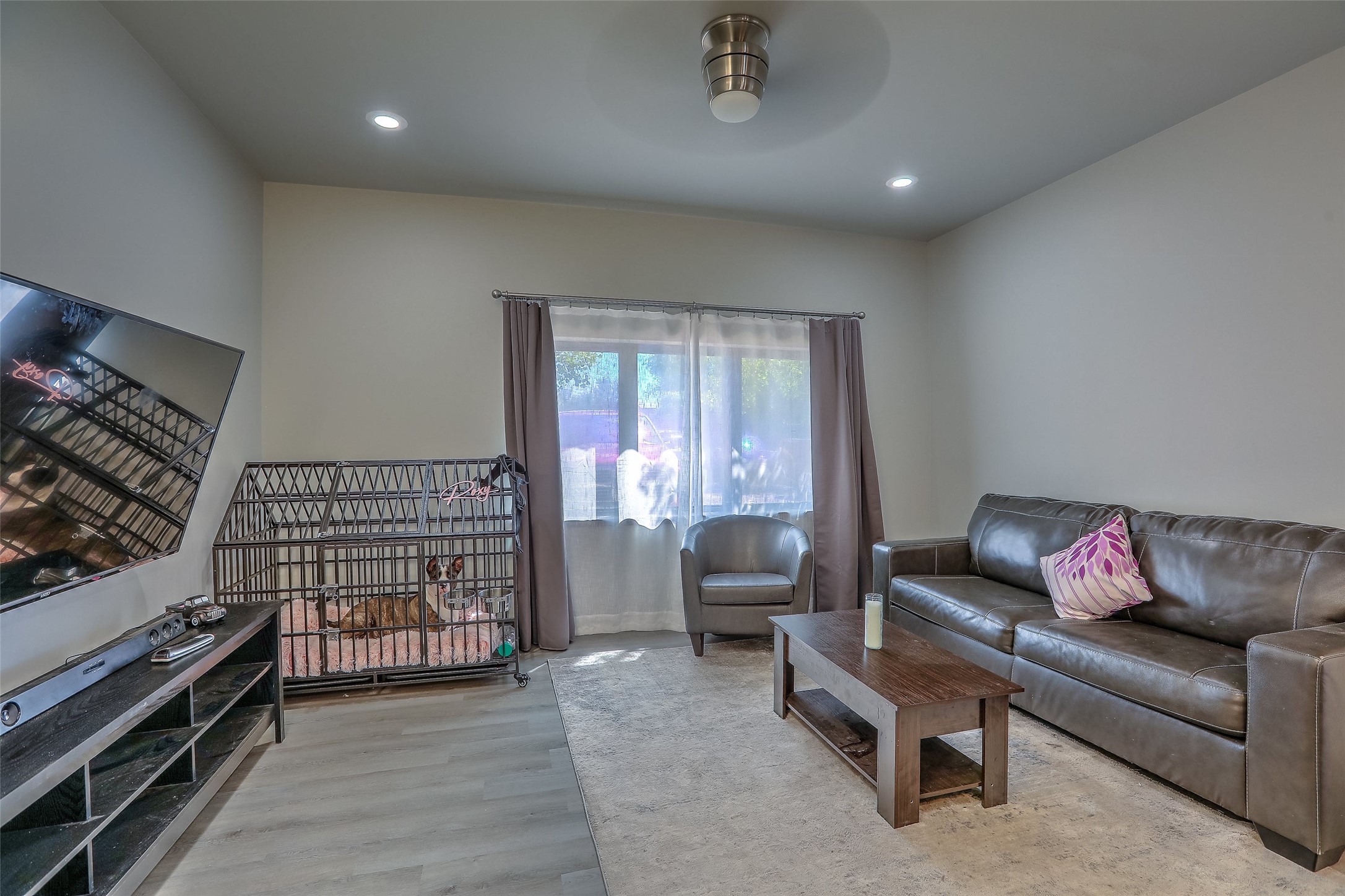 Priced to sell! Don't miss our on this opportunity!!! Absolute Stunner in Santa Fe! Perfect for a Large Family or Investor. Walk into the 2,764 SF 3 Bedroom, 3.5 Bath Primary Home and be greeted with Luxury! A Huge Sunken Family Room creates a Cozy and Intimate Atmosphere for Family Gatherings centered around a Fireplace accented with a Stonewall covering the entire South Wall. Magnificent Vigas and Diamond Finish Walls provide the Perfect Touch! The Kitchen is a True Chefs Delight! The Main Home includes an En Suite, Office, Radiant Floor Heating, Central Vac System, Water Softener System, and a High Efficiency Tankless Water Heater. The Comfy Primary Suite is equipped with its own Fireplace offering the Ultimate Relaxation. Attached to the Main Home is a Fabulous 1,008 SF Efficiency Suite with its own Private Entrance and includes 1 Bedroom, 1 Bath, Office, Full Kitchen, Laundry Room and Living Area. Behind the Full Size Enclosed Basketball Court you will find an additional 1,560 SF Guest Home that was built in 2022. This Modern New Home offers 4 Bedrooms; a Primary Suite, an En Suite, and 2 Guest Rooms and 3 Baths. Features include all Tile Flooring, Tankless Water Heater, TPO Roof, Fenced Yard and its own Private Road. The Two Large (480 SF Each) Utility Sheds/Carports also convey. Don't Miss Out on this One of a Kind Opportunity!!