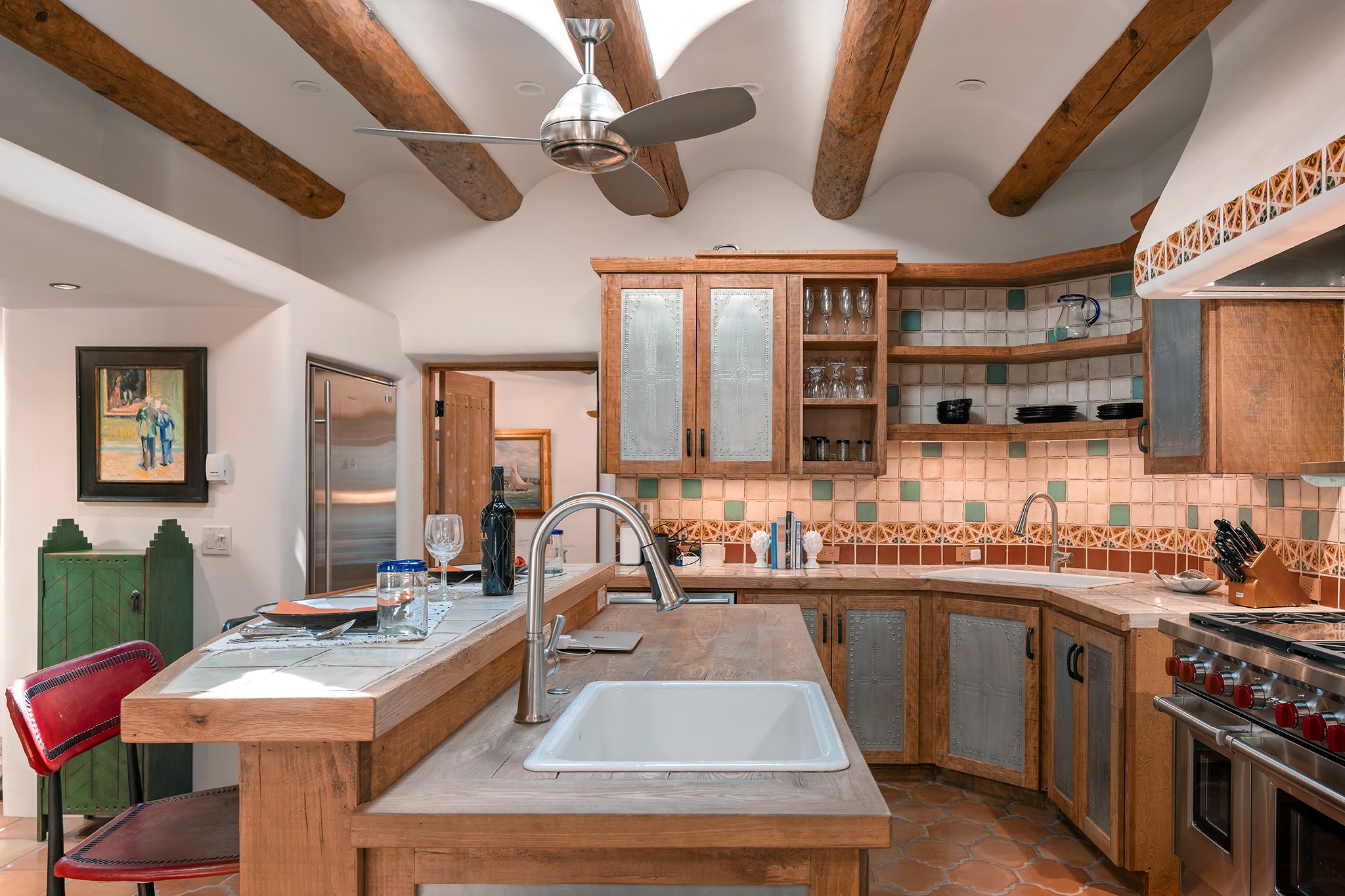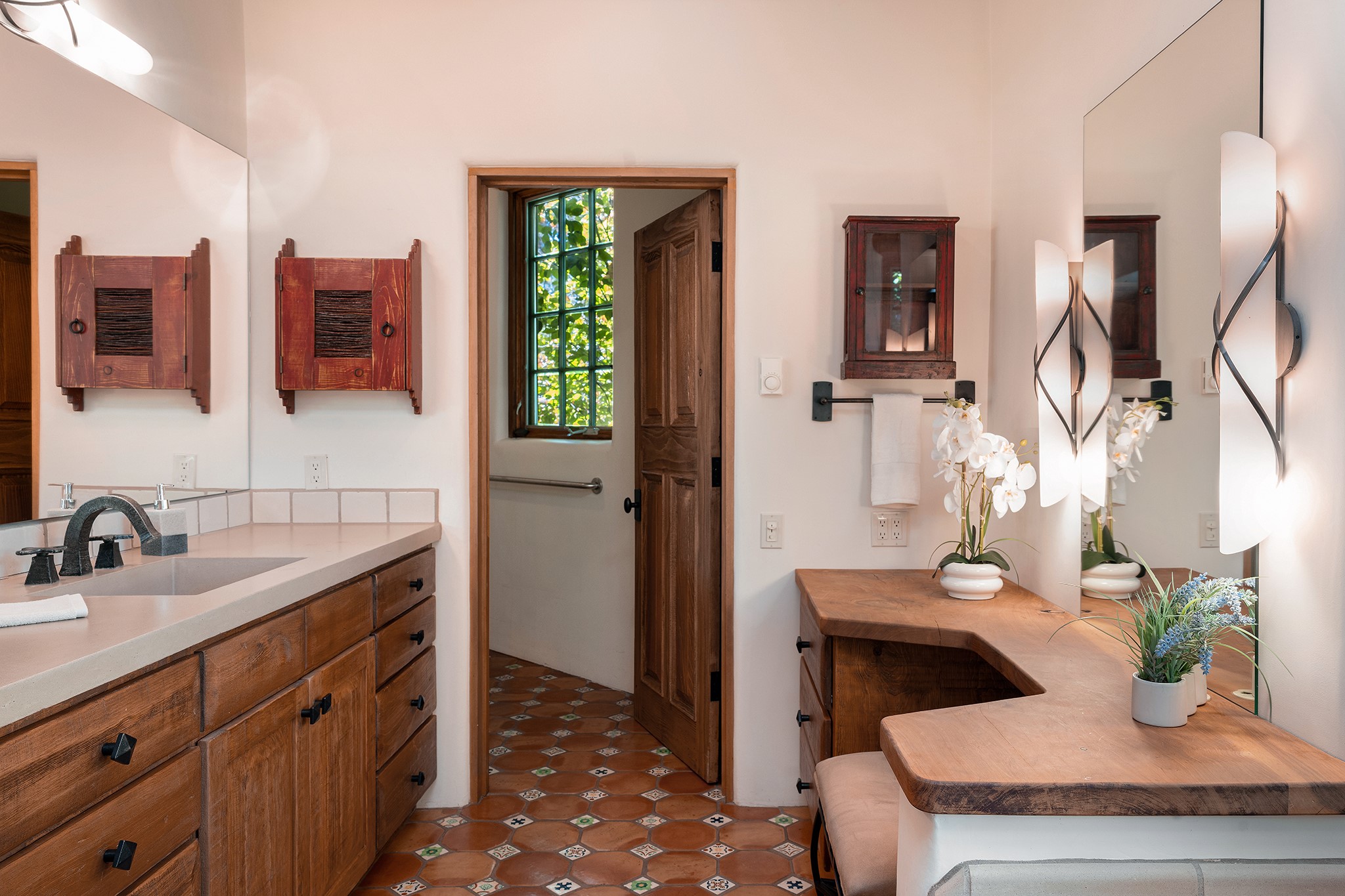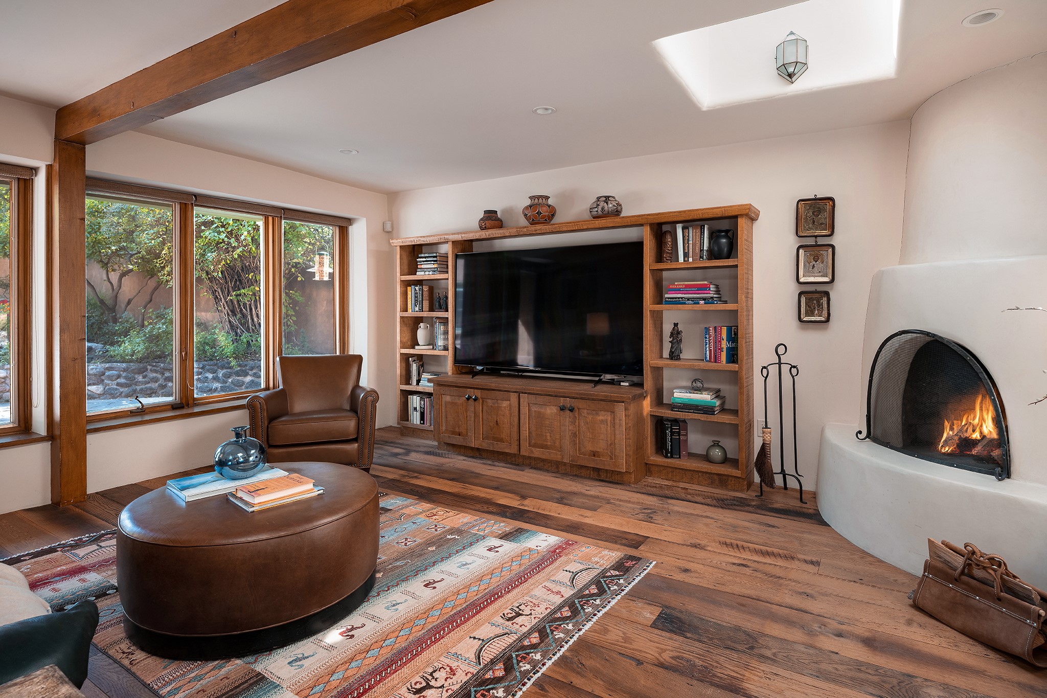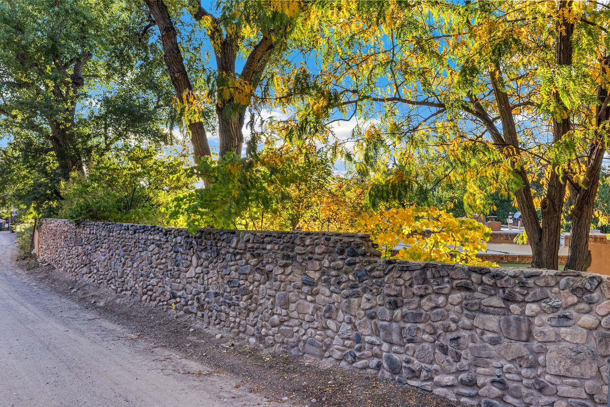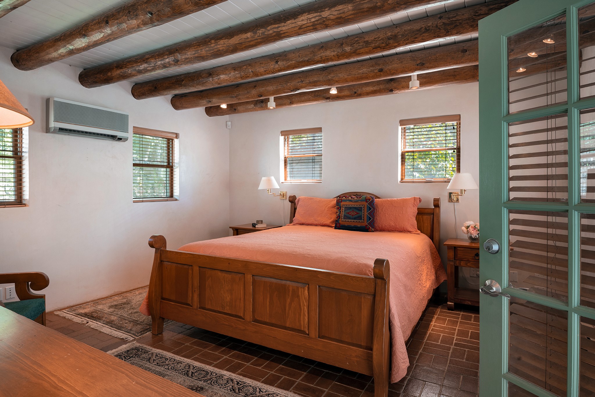 481 Arroyo Tenorio, behind an iconic stonewall in the heart of the Historic East side and the Acequia Madre runs through it! Tucked away and gated on a serene lane in the coveted Historic District is this enviable compound which blends traditional Santa Fe architecture with modern comforts. Thick plastered walls, vigas, coved ceilings, and multiple fireplaces create warmth and authenticity, while large windows and French doors invite abundant natural light. An elegantly designed pool, hot tub and extended outdoor living space and vegetable garden were added in 2022. The main house flexible floor plan offers gracious living and dining areas, a well-appointed kitchen, two private bedroom suites , additional guest bedroom , 2.5 baths office and media room. Perfect for full-time living or part time with privacy and security . The guest house features one bedroom , one bath , living area ,dining and kitchenette. Outdoor living is equally inviting, with lush, landscaped gardens, flagstone patios, and shaded portals ideal for entertaining or quiet retreat.Just moments from Canyon Road, the Plaza, and some of Santa Fe's finest restaurants and galleries, around the corner from famous local Downtown Subscription coffee shop and Garcia Street Books. This home provides the perfect balance of privacy and proximity. A rare opportunity to own a classic East side property in one of the city's most sought-after neighborhoods.