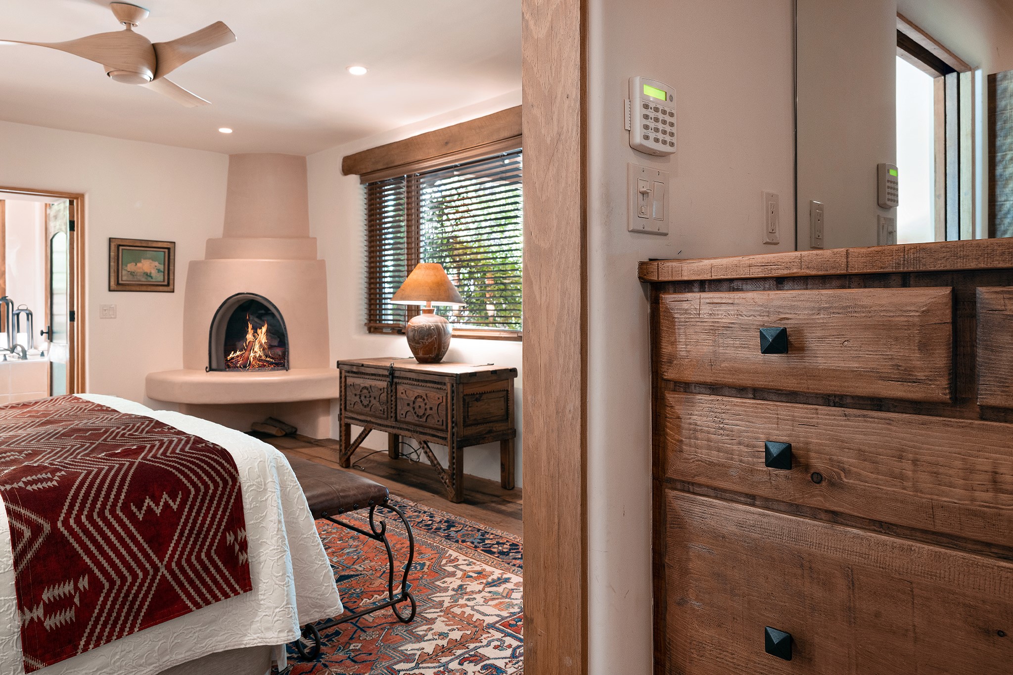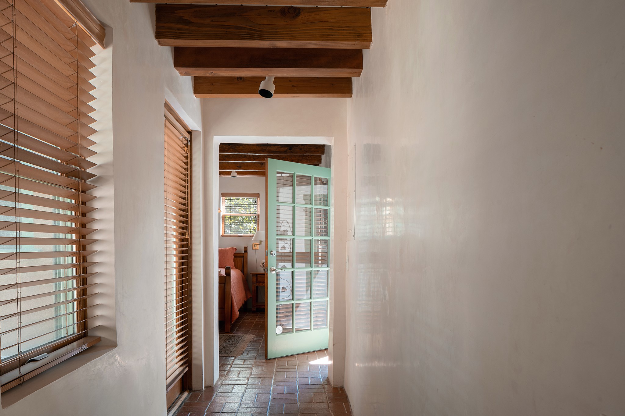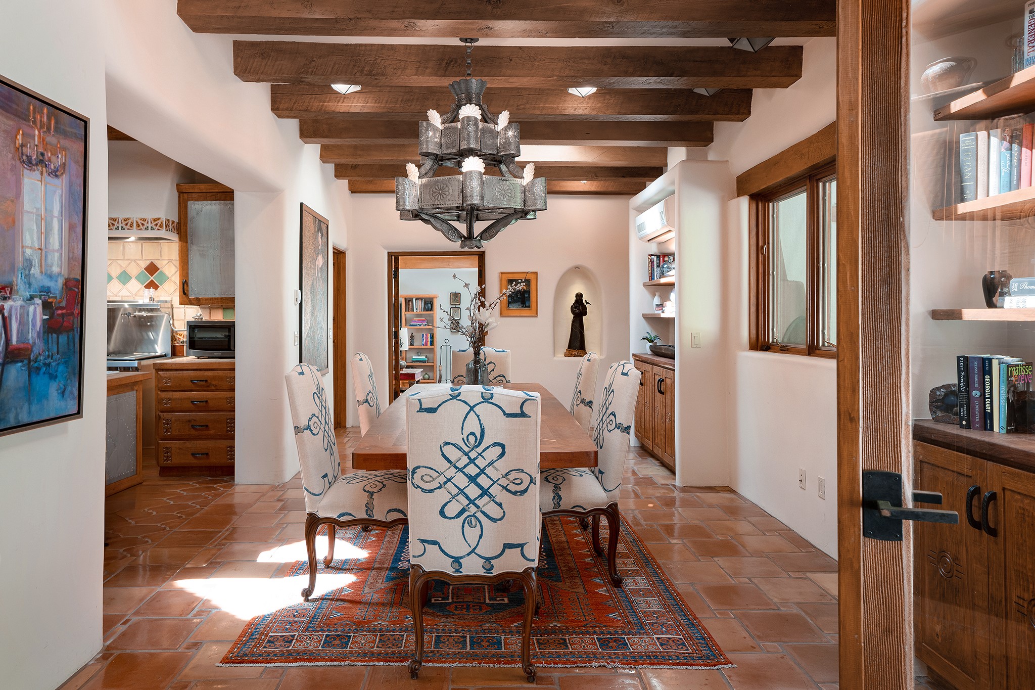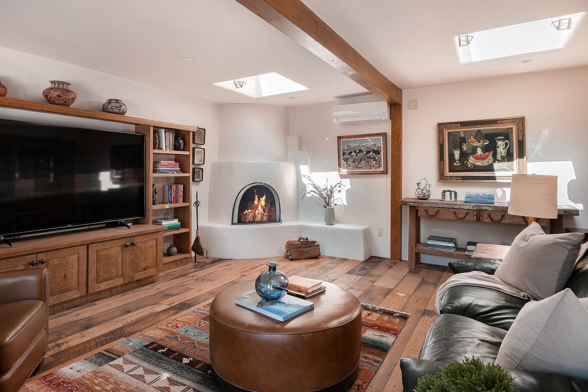 481 Arroyo Tenorio, behind an iconic stonewall in the heart of the Historic East side and the Acequia Madre runs through it! Tucked away and gated on a serene lane in the coveted Historic District is this enviable compound which blends traditional Santa Fe architecture with modern comforts. Thick plastered walls, vigas, coved ceilings, and multiple fireplaces create warmth and authenticity, while large windows and French doors invite abundant natural light. An elegantly designed pool, hot tub and extended outdoor living space and vegetable garden were added in 2022. The main house flexible floor plan offers gracious living and dining areas, a well-appointed kitchen, two private bedroom suites , additional guest bedroom , 2.5 baths office and media room. Perfect for full-time living or part time with privacy and security . The guest house features one bedroom , one bath , living area ,dining and kitchenette. Outdoor living is equally inviting, with lush, landscaped gardens, flagstone patios, and shaded portals ideal for entertaining or quiet retreat.Just moments from Canyon Road, the Plaza, and some of Santa Fe's finest restaurants and galleries, around the corner from famous local Downtown Subscription coffee shop and Garcia Street Books. This home provides the perfect balance of privacy and proximity. A rare opportunity to own a classic East side property in one of the city's most sought-after neighborhoods.