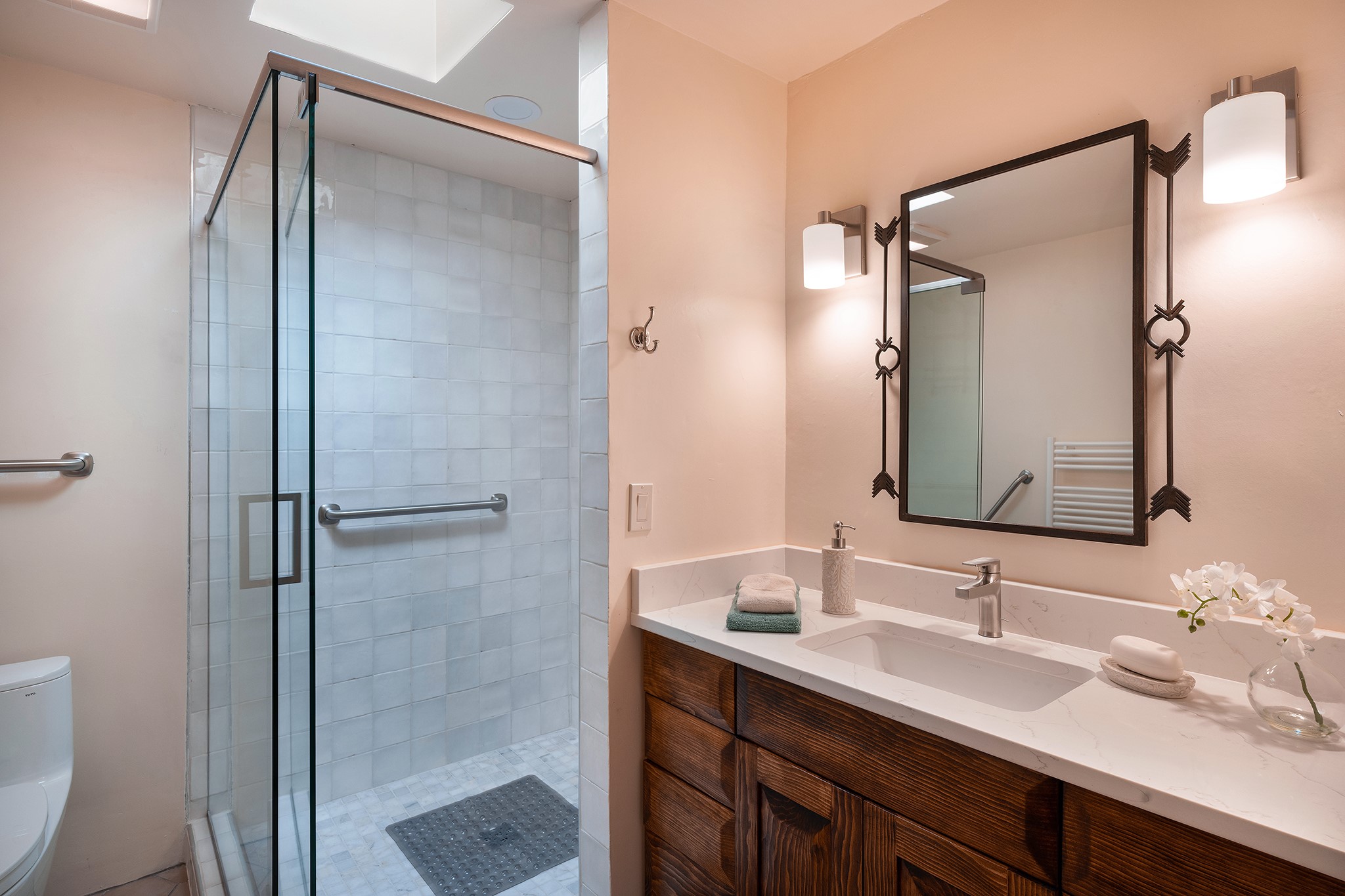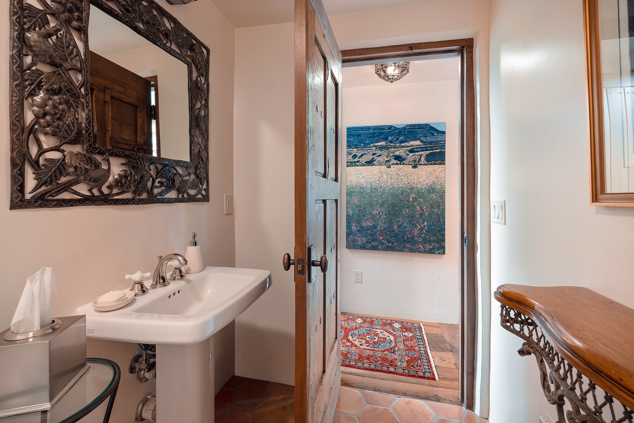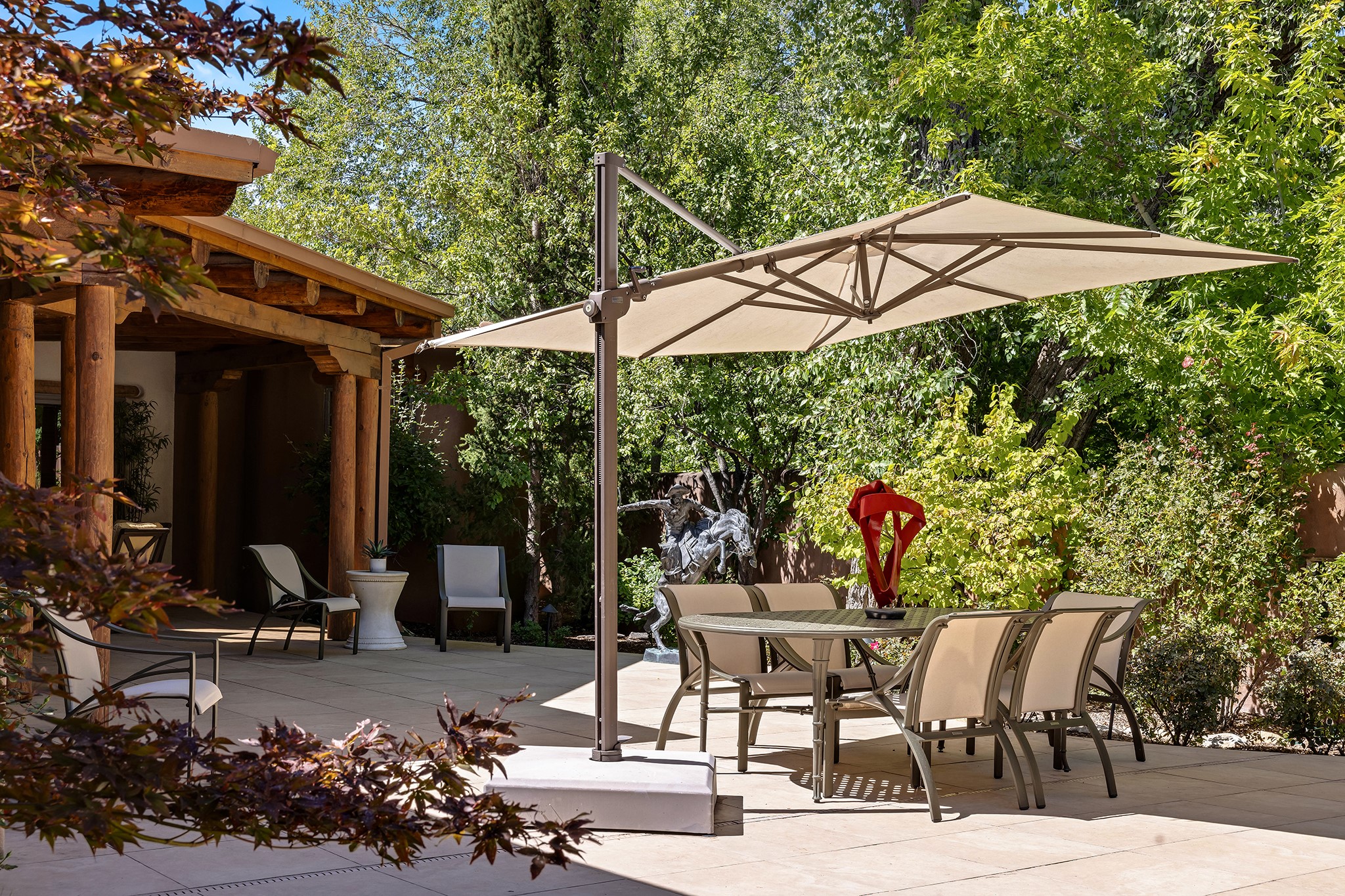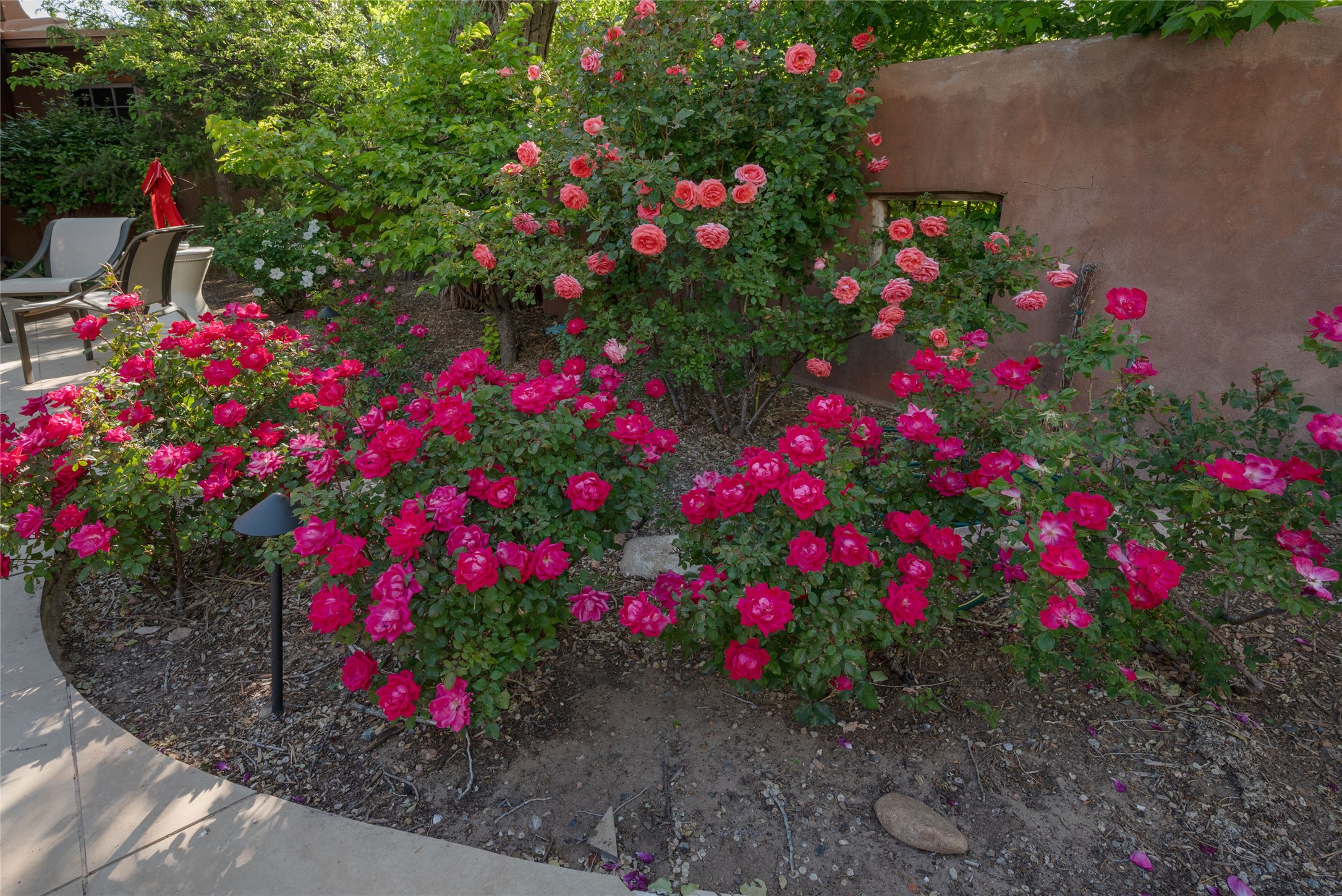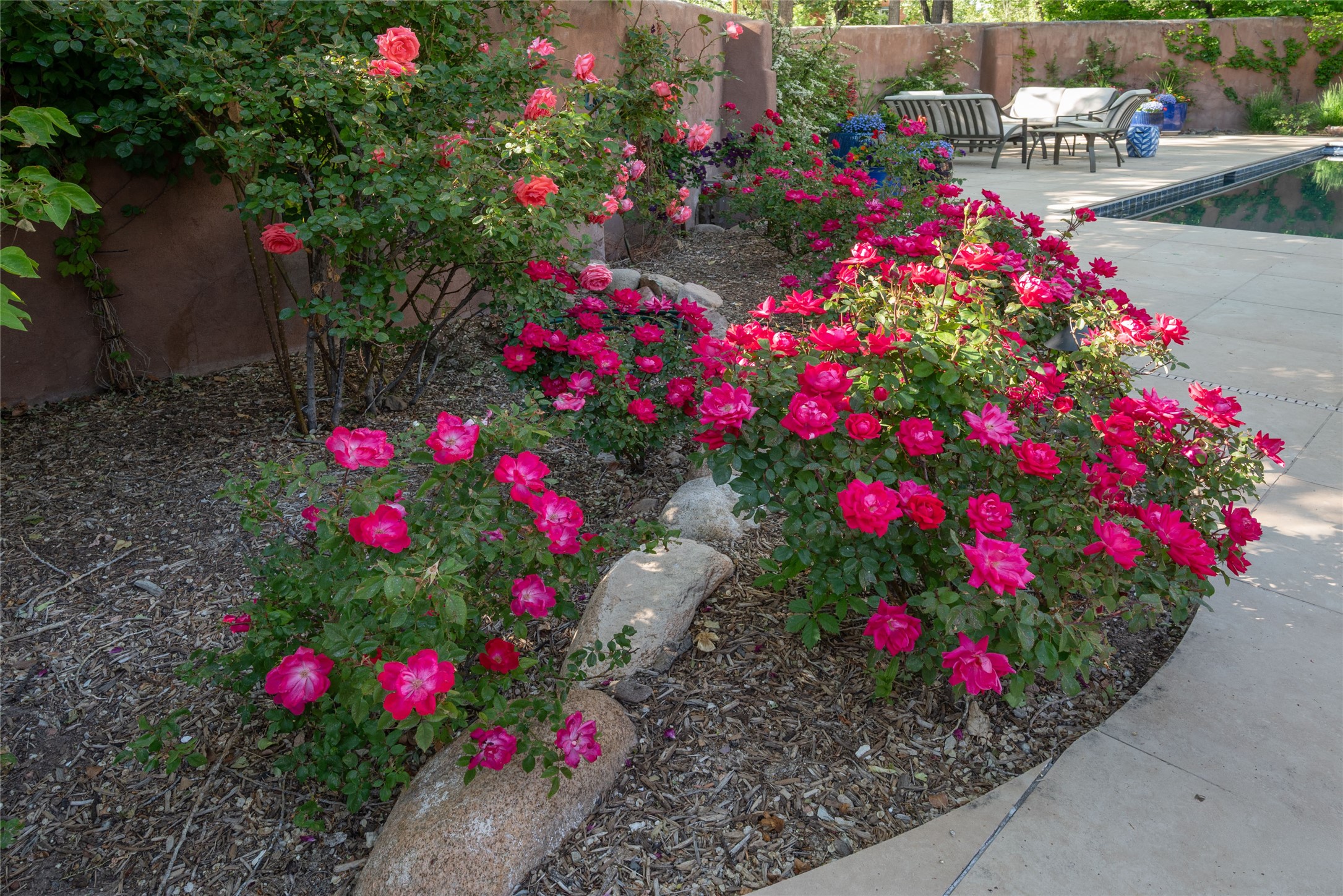 481 Arroyo Tenorio, behind an iconic stonewall in the heart of the Historic East side and the Acequia Madre runs through it! Tucked away and gated on a serene lane in the coveted Historic District is this enviable compound which blends traditional Santa Fe architecture with modern comforts. Thick plastered walls, vigas, coved ceilings, and multiple fireplaces create warmth and authenticity, while large windows and French doors invite abundant natural light. An elegantly designed pool, hot tub and extended outdoor living space and vegetable garden were added in 2022. The main house flexible floor plan offers gracious living and dining areas, a well-appointed kitchen, two private bedroom suites , additional guest bedroom , 2.5 baths office and media room. Perfect for full-time living or part time with privacy and security . The guest house features one bedroom , one bath , living area ,dining and kitchenette. Outdoor living is equally inviting, with lush, landscaped gardens, flagstone patios, and shaded portals ideal for entertaining or quiet retreat.Just moments from Canyon Road, the Plaza, and some of Santa Fe's finest restaurants and galleries, around the corner from famous local Downtown Subscription coffee shop and Garcia Street Books. This home provides the perfect balance of privacy and proximity. A rare opportunity to own a classic East side property in one of the city's most sought-after neighborhoods.