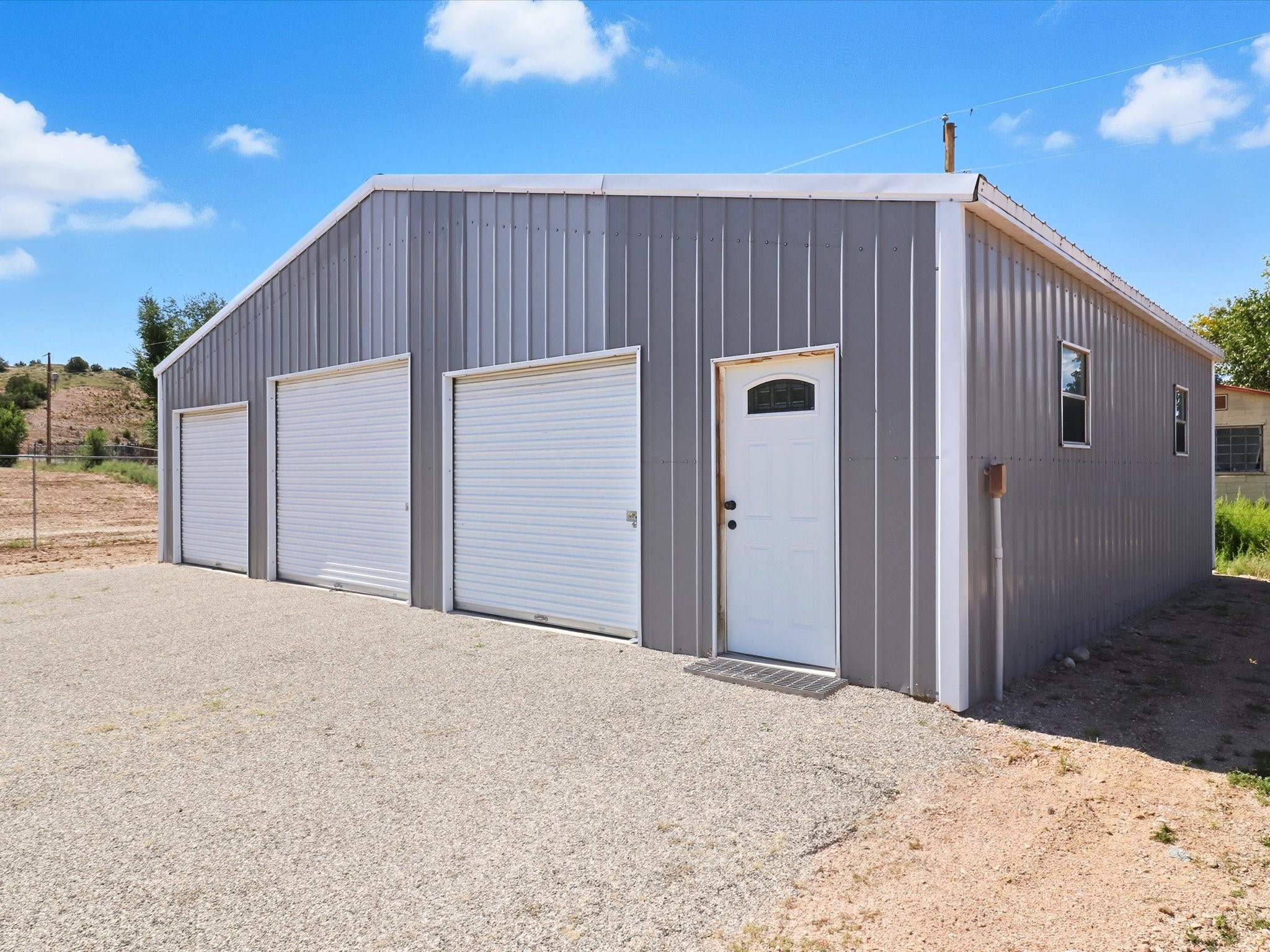 INCREDIBLE FIND - 0.75 acre property w/quality dream home and separate 1,206 sq ft workshop building w/3 garage doors (up to 6 car tandem). Found just 20 minutes from either Santa Fe plaza or Los Alamos National Labs in the coveted & fertile Pojoaque valley complete w/irrigation water rights. Special features of the home incl: new roof (installation 9/2025), newly painted interior & exterior, energy-saving Pella thermal windows, in-floor radiant heat for cozy winter days, 2 low-maintenance gas diamond plaster kiva fireplaces, tile or new high-quality engineered wood flooring throughout (no carpet!), updated baths with a Dream Style Shower, and a total kitchen remodel w/new cabinetry | stainless steel appliances | granite slab countertops. *Also available on 1.5 acres (including adjacent .75 acre lot) for September 2025 appraised value of $845,000.*