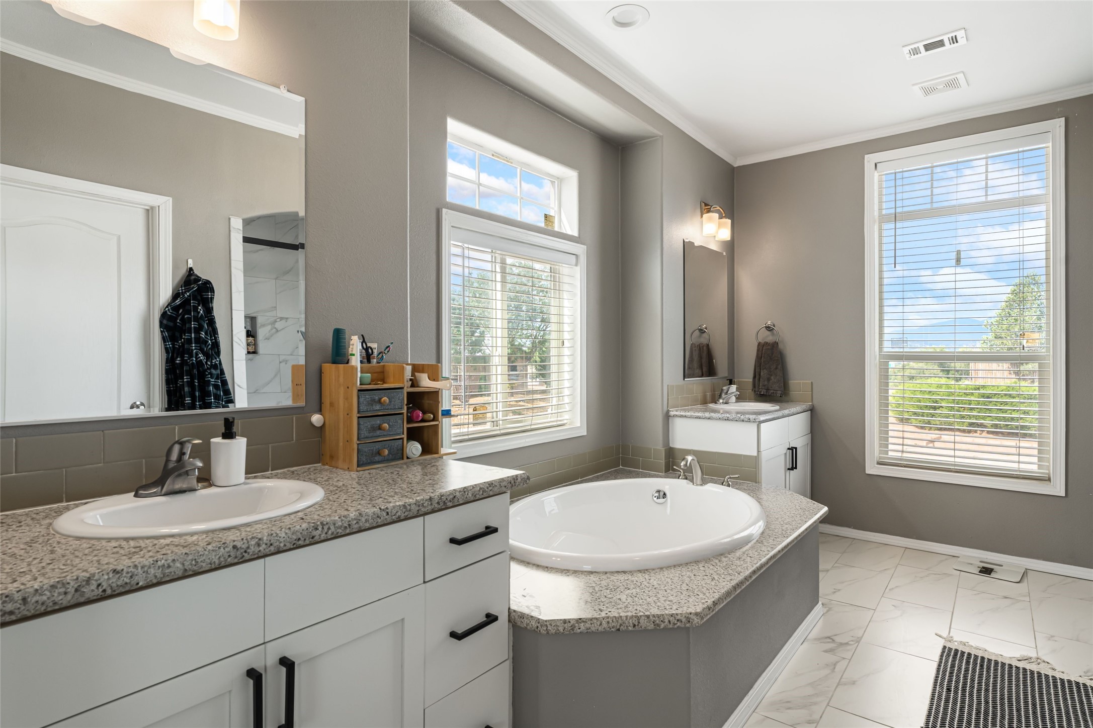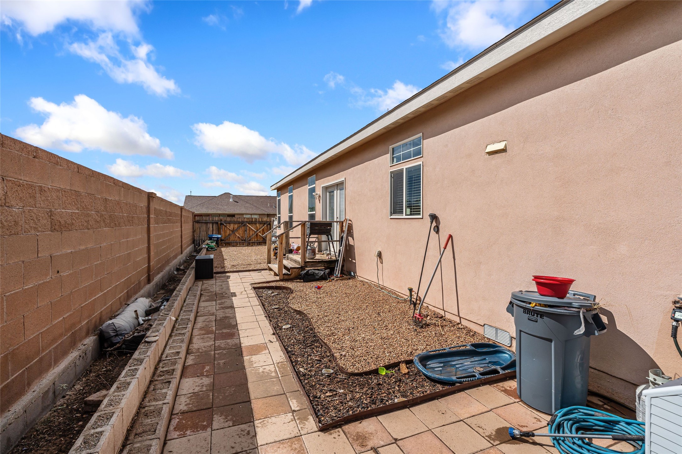 Updated 3-bedroom, 2-bath modular home sited on a corner lot with a permanent foundation and numerous seller improvements, this residence offers both style and functionality. Step inside to discover a bright and inviting open floor plan, featuring new luxury vinyl plank flooring. The kitchen showcases crisp white cabinets, modern appliances, and a spacious center island with seating for four. The built-in hutch and adjacent dining area provide a welcoming atmosphere for family meals and gatherings, with easy access to the backyard for outdoor entertaining. The primary bedroom has clerestory windows which fill the space with natural light and an oversized walk-in closet for ample storage. The remodeled en-suite bath has dual sinks and soaking tub, perfect for unwinding after a long day. Two additional guest bedrooms share a well-appointed bath, making this home ideal for families or guests. The second living area offers versatile options as a den, media room, or play area, catering to your lifestyle needs. Outside, enjoy the side pergola and covered outdoor dining area, perfect for alfresco dining and entertaining. The large side patio and garden areas provide ample opportunities for outdoor pursuits. Also has a retaining wall and fence. Located in the heart of Espaola with the added benefit of being equidistant from Santa Fe and Los Alamos.