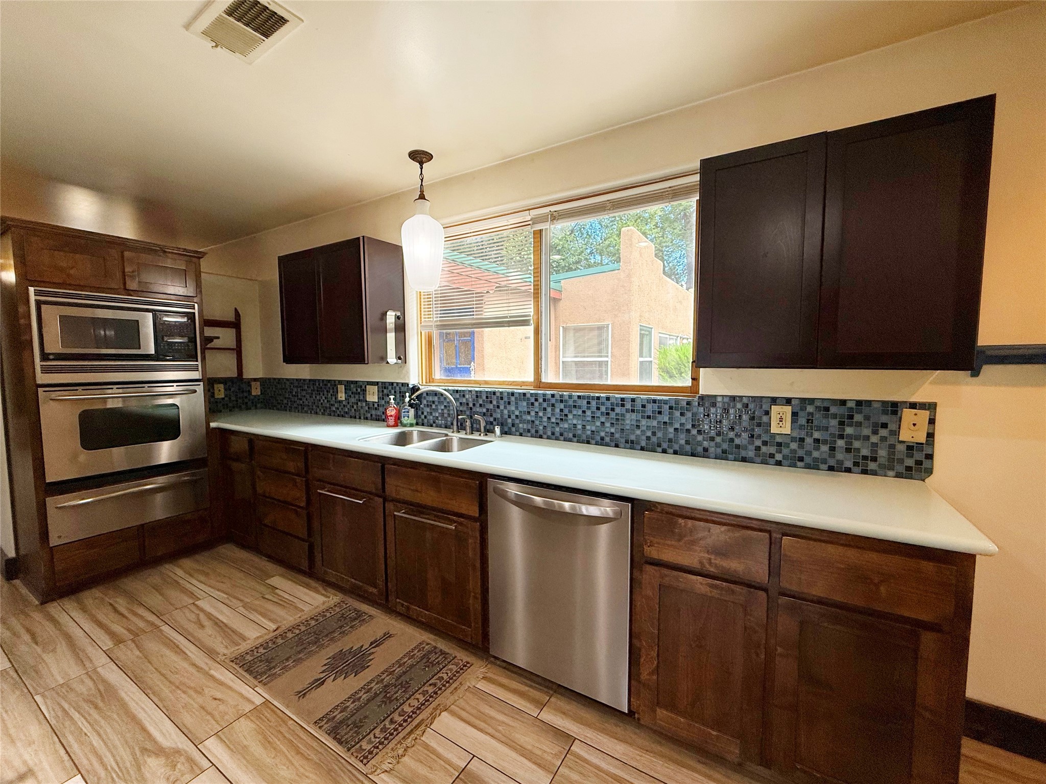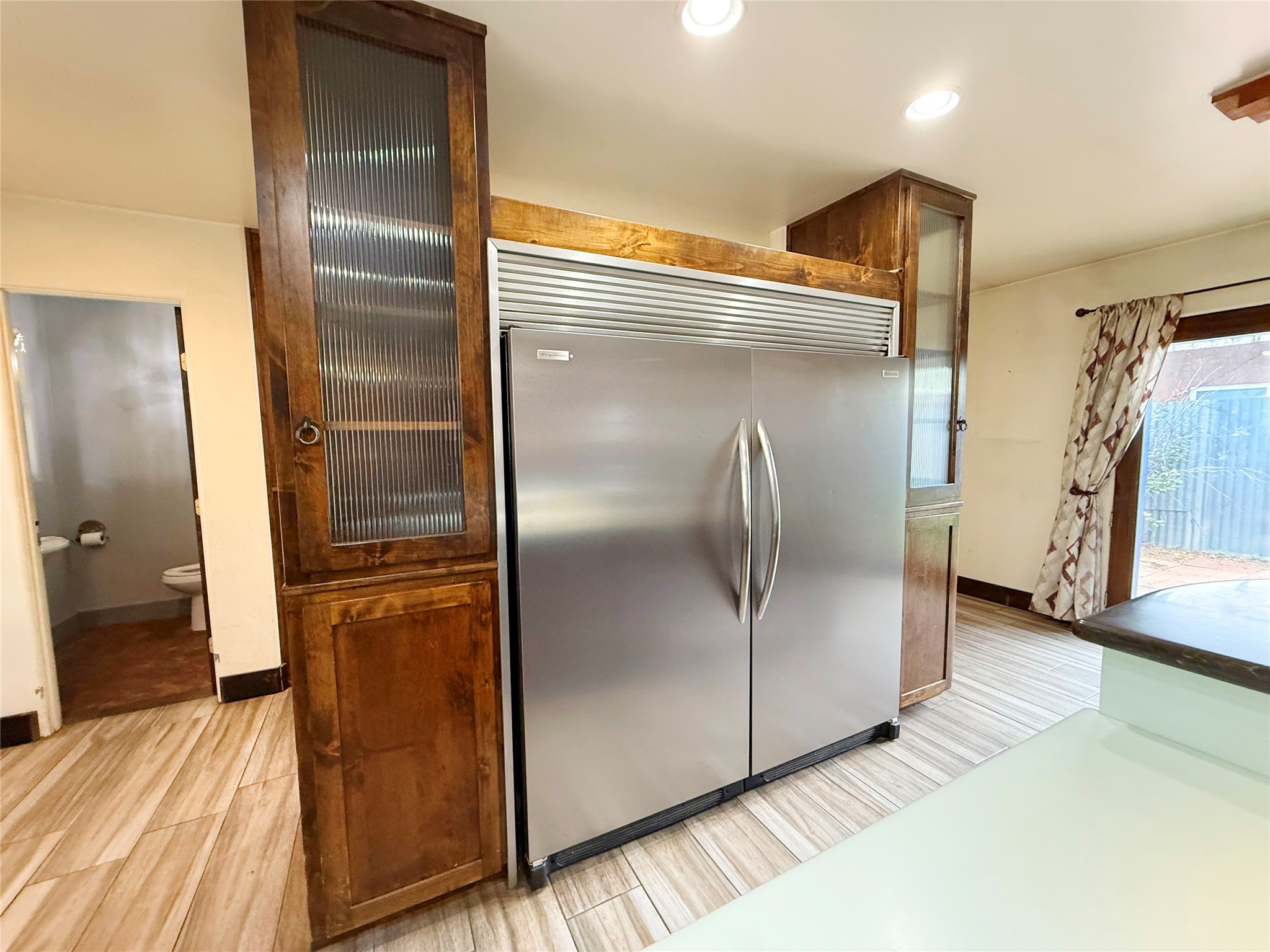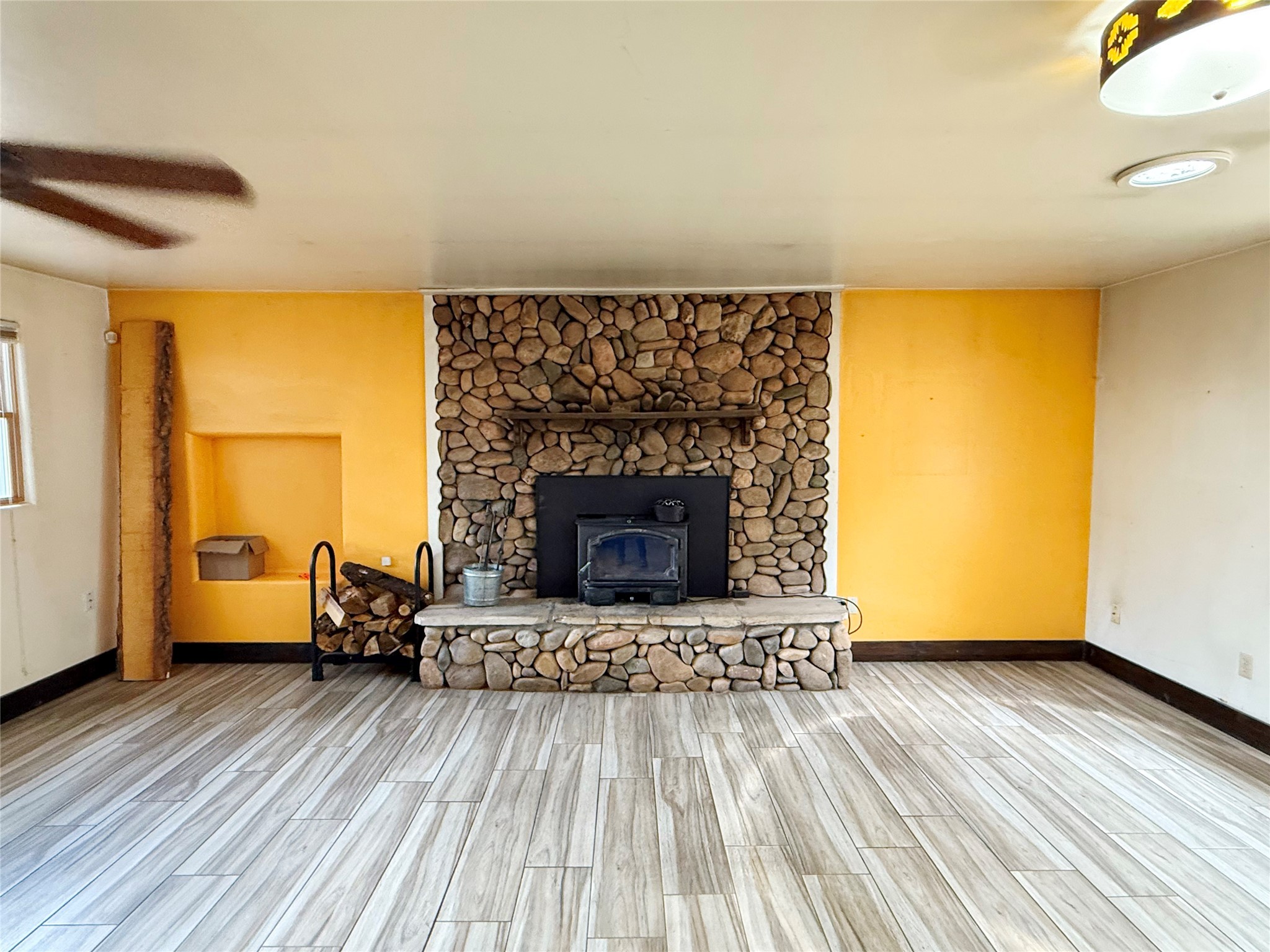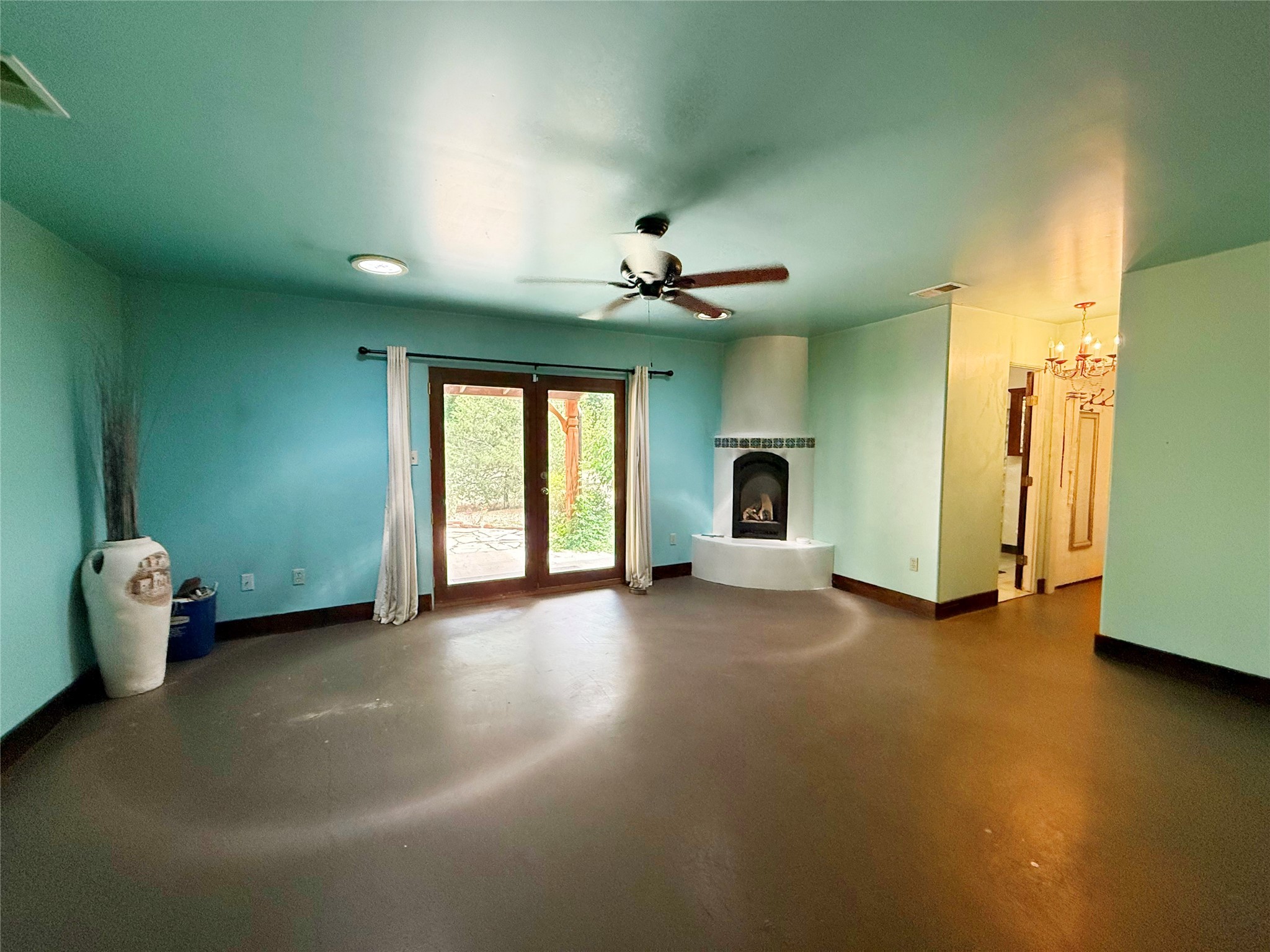Stunning former hotel transformed into a luxurious 3-bedroom, 2.5-bathroom residence on almost 3/4 acre along the Gallinas River. This chef's dream home features an open-concept living area anchored by a beautiful river rock fireplace, seamlessly connecting to a gourmet kitchen with double-sized refrigerator and freezer, 6-burner gas cooktop island with bar seating, wine refrigerator, double oven, microwave, and abundant pantry and cabinet space with stunning display cabinets, space for a butler's pantry or coffee bar and hard surface countertops. The master suite features a gas kiva fireplace, dual closets, step-down rainfall shower, and French doors opening to landscaped gardens and patios. A versatile sunroom/den with gas fireplace offers endless possibilities for relaxation or entertainment. Three bedrooms are accessed via a dramatic long hallway, with rooms tastefully numbered as a nod to the property's historic hotel past. Nearly every living area in the home features French doors leading to beautifully landscaped patios throughout the lush, green grounds. The property includes a three-car detached garage with workshop, storage shed, garden shed, and covered firewood storage. Grounds are accented with beautiful large mountain rocks and offer wide open spaces perfect for outdoor living. Located directly next to the Gallinas River, this unique property combines luxury amenities with historic charm and natural beauty - truly a must-see opportunity.