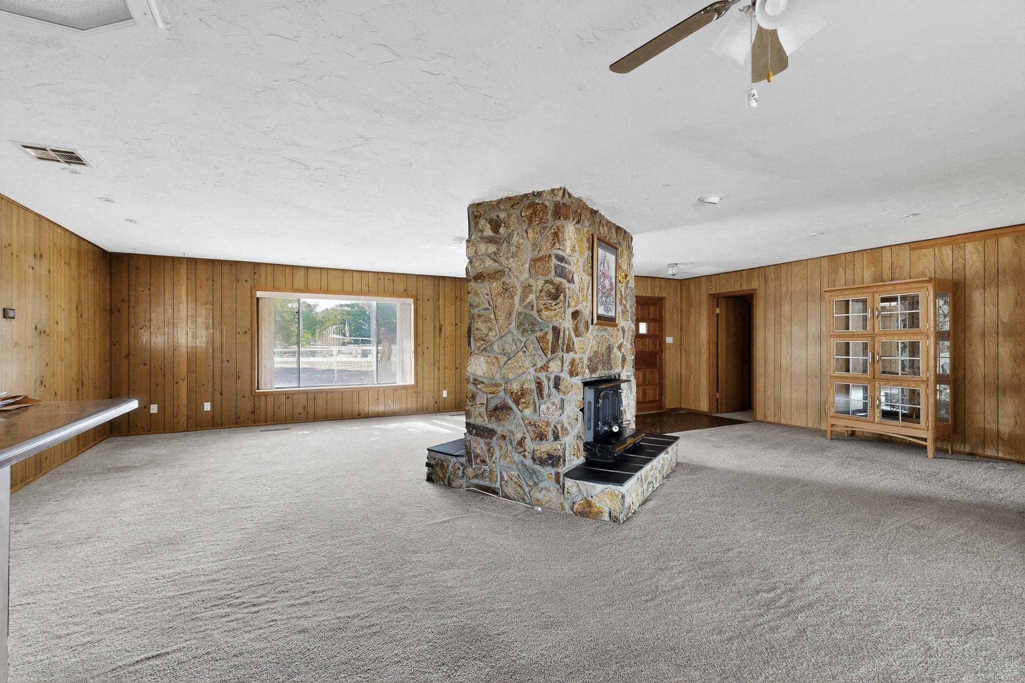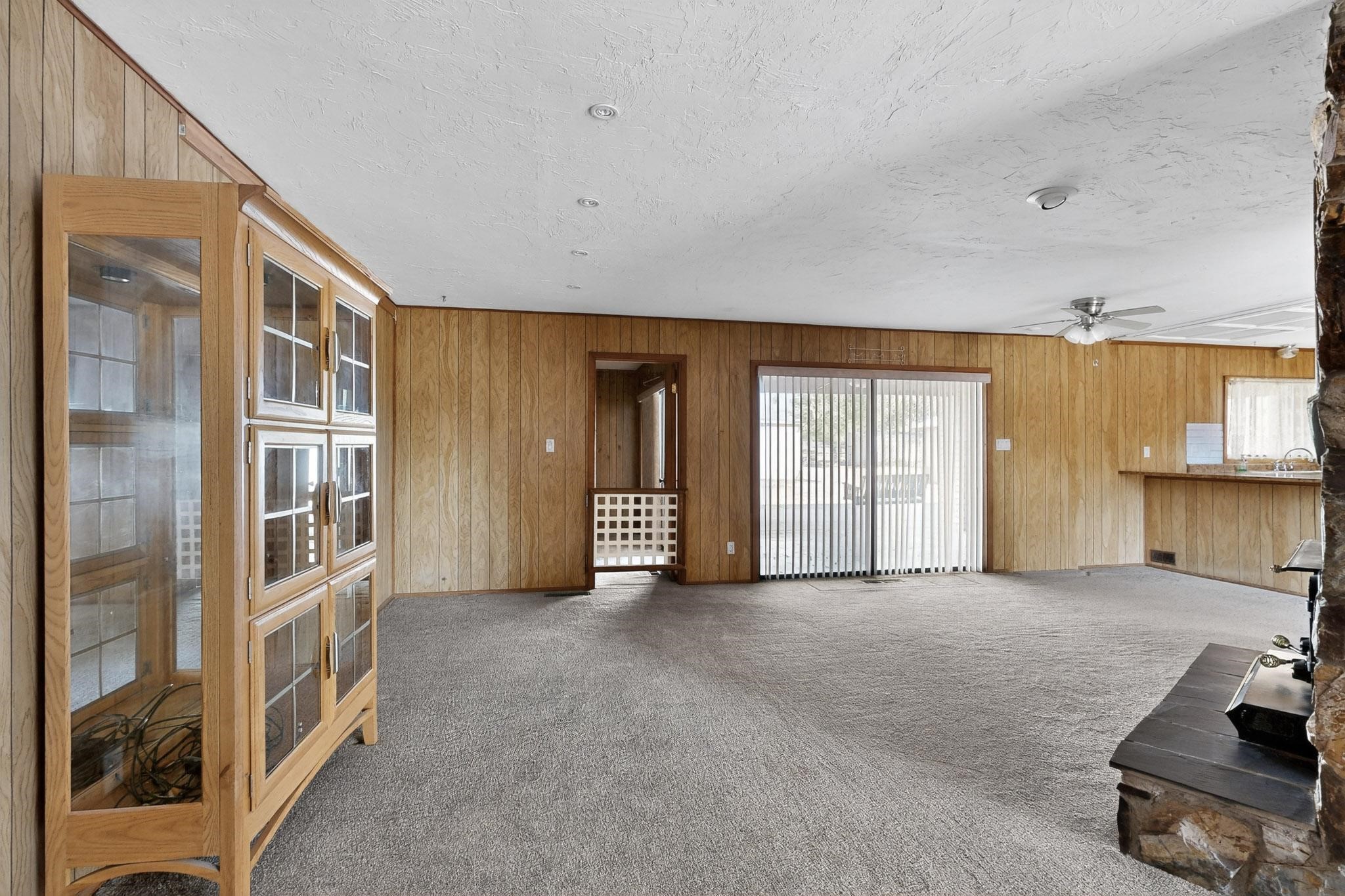 Spacious Los Lunas home with unique features! The open living and dining room is anchored by a double-sided fireplace, creating a warm focal point. The kitchen is generously sized with an island and plenty of room to personalize. Step outside to a covered patio with ceiling fans, perfect for relaxing or entertaining. A separate studio in the backyard adds flexibility for hobbies, work, or guests. This home offers great space and character, ready for your vision and updates. Land comes with a manufactured home next door to the North.