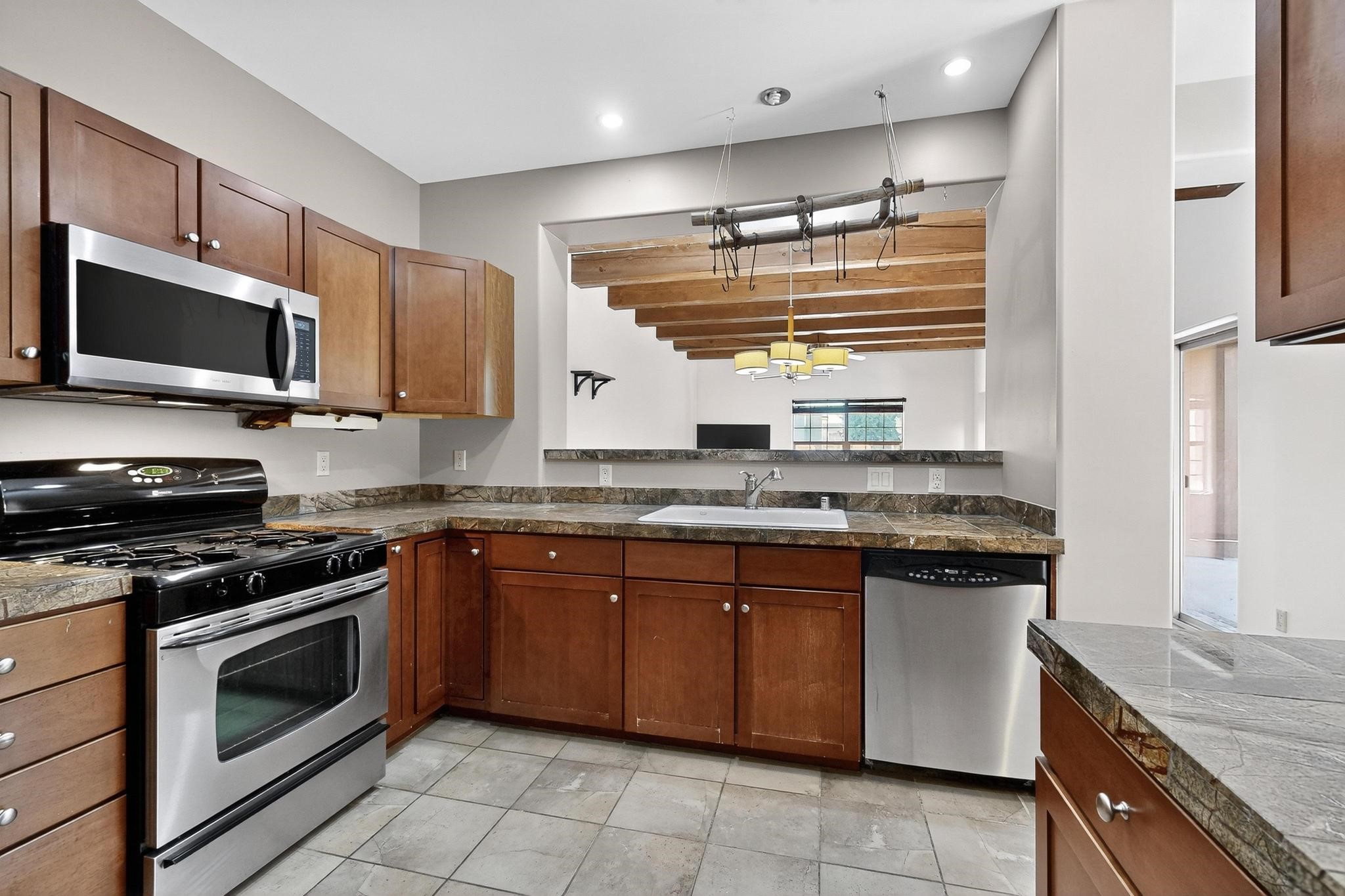 Centrally located in the vibrant Oshara Village, this move-in ready townhome features 2 spacious suites on the main level, along with 2 additional bedrooms and a full bath upstairs, offering comfort and flexibility. The open floor plan connects the kitchen, dining and living areas to a delightful central courtyard, perfect for entertaining or private relaxation. Additional perks include a detached two-car garage, fully-paid solar panels, transferable roof warranty, and a private fenced backyard with low-maintenance xeriscaping. This location offers easy access to medical facilities and diverse dining and shopping options. Whether you're seeking a cozy retreat or a dynamic live/work/play environment, this home has it all!
