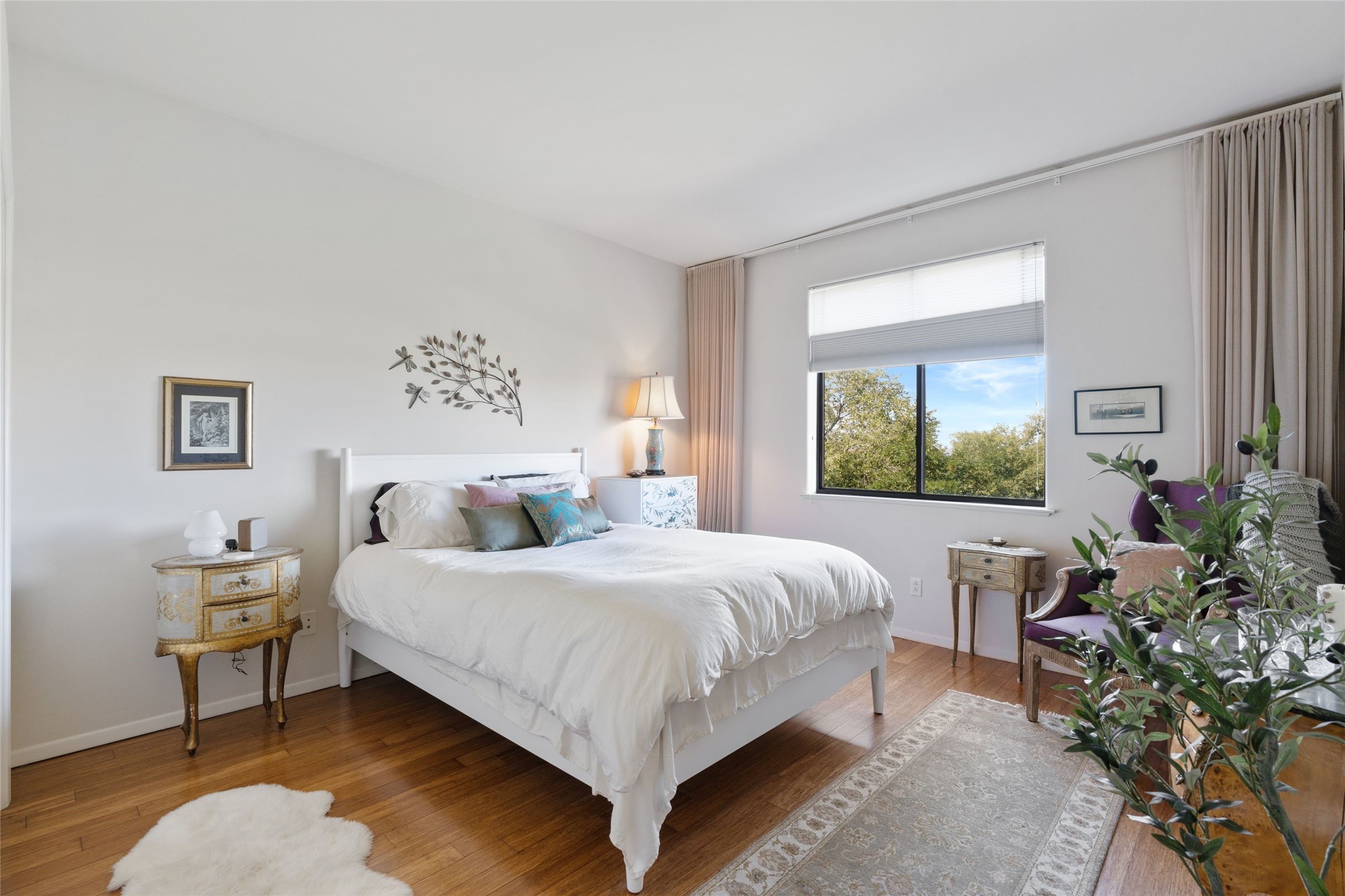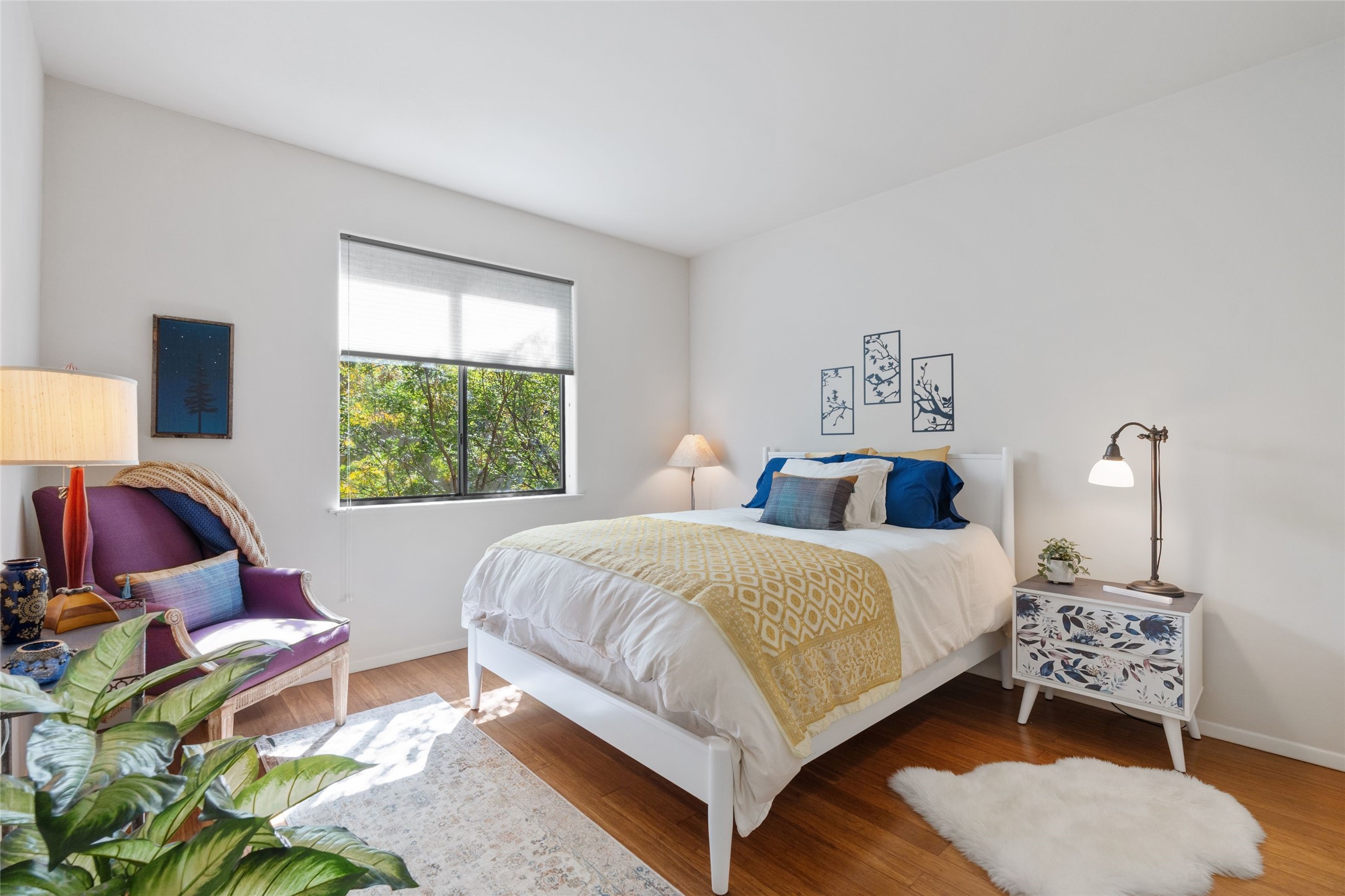 Classic urban oasis surrounded by mature trees, La Remuda Condominium is located on the edge of Midtown where you can walk to relaxed eateries featuring global cuisine and local flair. Not far from theRailyard, quick stops to Trader Joe's and Whole Foods. The central location is convenientfor a fast commute to Los Alamos or I-25. This bright and airy condo features an open floor plan with sliding glass doors at each end of the living/dining rooms with access to the 2 balconies. The kitchen is well designed, with exceptional storage, high quality stainless steel appliances, butcher block on one side of the counter and Italian tile on the other. Other features include: central air conditioning and heating installed in 2023, 9 foot ceilings, beautiful bamboo floors, custom drapes, custom dividedclosets, custom cabinets in living room and office, private storage: 5.5' x 17', Asko washer and dryer, whole house water filtration system installed in 2025, 2 under cover designated parking spots with direct entrance to the secure building, upper floor unit with no interior steps, new roof in 2024 and refreshed stucco in 2025. One of the two only units at La Remuda with 3 bedrooms. This condo is on the second floor and stairs are required to access it.