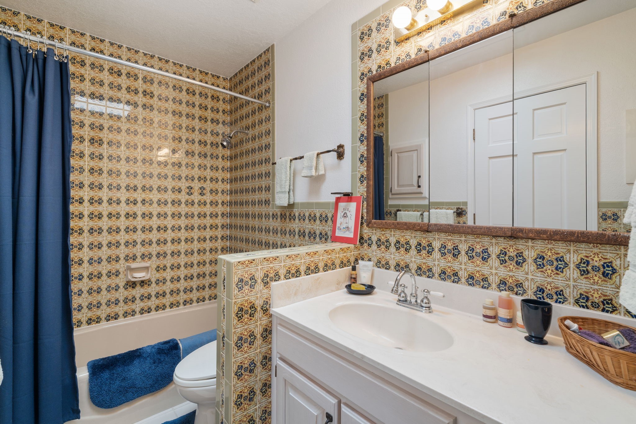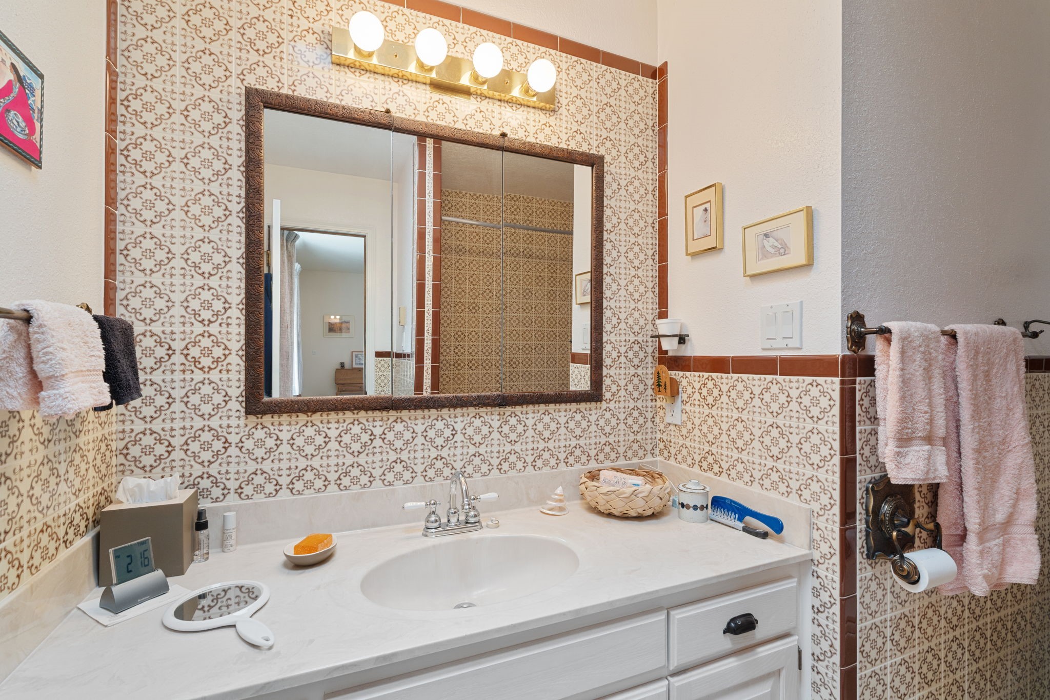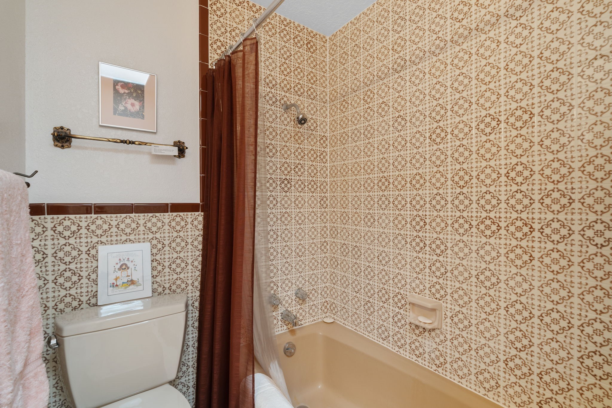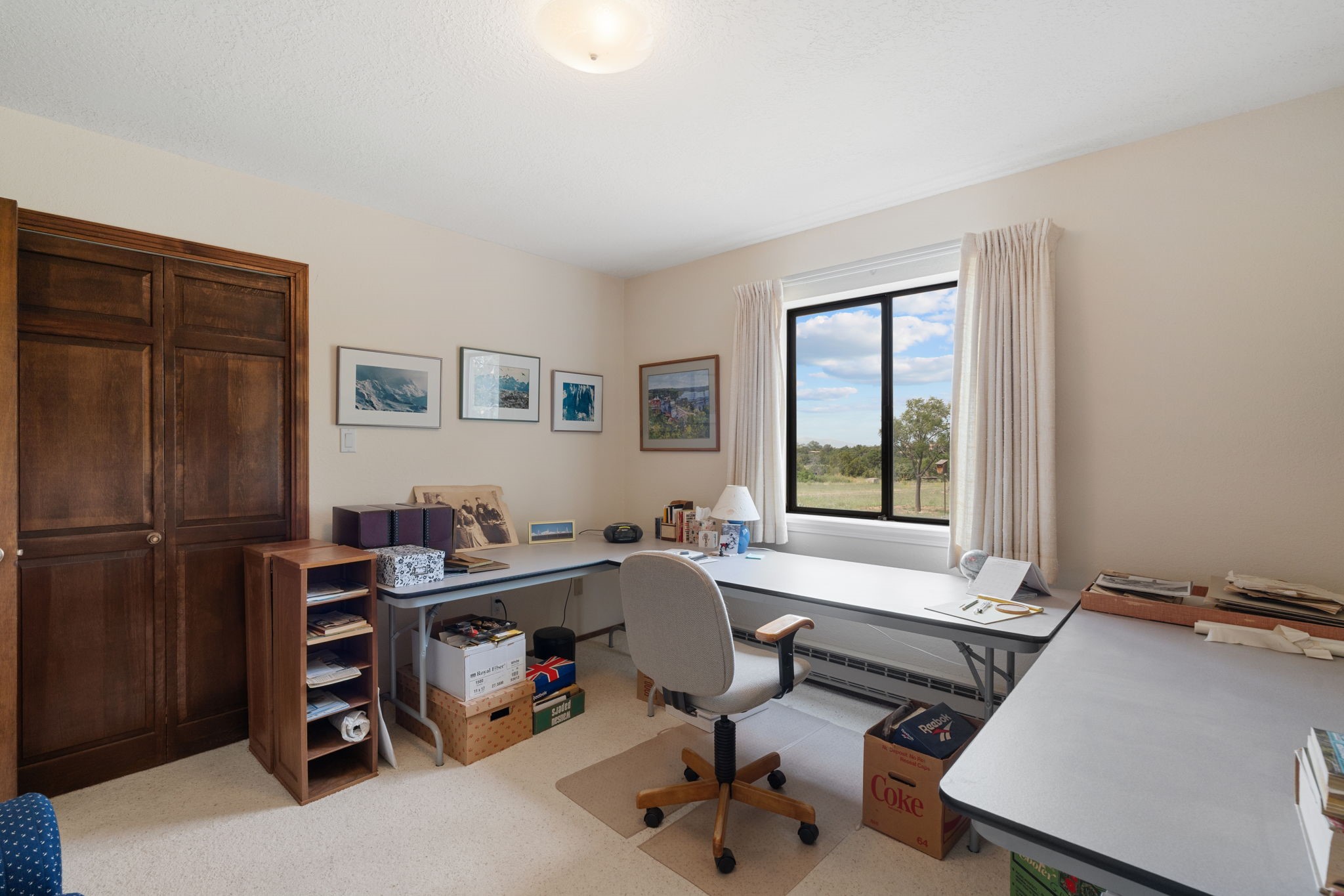 Imagine relaxing under a long portal, watching the birds and facing panoramic foothill views of the Sangre de Cristo mountains. This is the entrance to 77 Moya Rd, in the Eldorado subdivision, just minutes from Santa Fe. This 3 bedroom, 2 bath home is over 1600 square feet, with a living room highlighted by beamed, wooden ceilings, wood floors, and a kiva fireplace with gas insert. New pleated shades highlight the windows in most of the home. There is direct access to the covered portal in the rear fenced yard. The kitchen is light and pleasant with re-faced and painted cabinets, Stainless Steel Appliances, (new Kitchen aid stove and Bosch dishwasher), and flows to the adjacent dining room. The bedrooms have ample closet space and the baths have colorful tile throughout. The home has a one-car finished garage. Situated on a large 1.45 acre view lot, the location is very close to the school, library, senior center, and the community pool. The extensive hike/bike trail is off of the back yard, an local restaurants and shopping are nearby.
