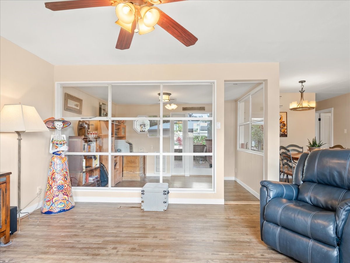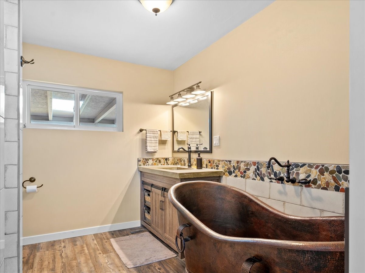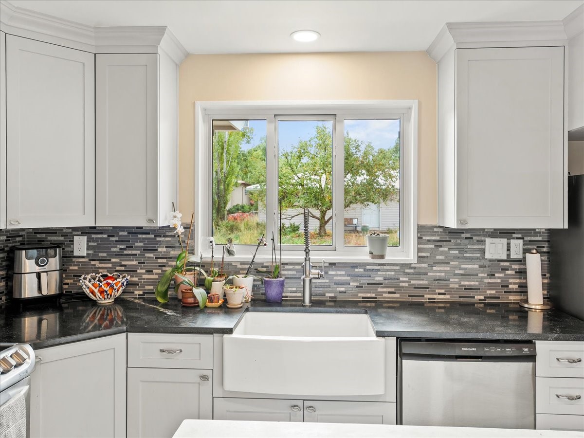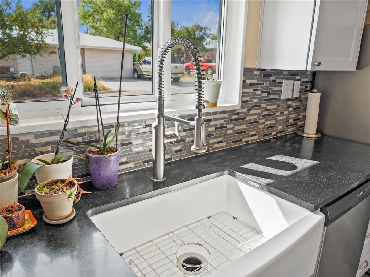 Welcome to this beautifully remodeled single-level home offering 3 bedrooms and 3 bathrooms in a prime downtown location. Over $200,000 of renovations have been made to this home in the last few years. The kitchen was fully updated in 2021 new cabinets, counters, an induction stove and updated appliances. The living room was opened up and a primary suite was added with a luxurious en suite bath - a copper soaking tub, custom tiled shower, and a large walk-in closet. Throughout the home is new vinyl flooring, fresh doors, upgraded electrical, and enclosed laundry room. Comfort and efficiency are built in with a 2021 solar panel, new heating and air conditioning, new gutters and insulated PEX water supply lines. The fully fenced backyard is highlighted by the covered patio, spacious lawn and two large storage sheds - one with added electricity. Designed for modern living, this move-in ready home is perfect for buyers who want style, function, and energy efficiency all on one convenient level. Schedule your showing today!