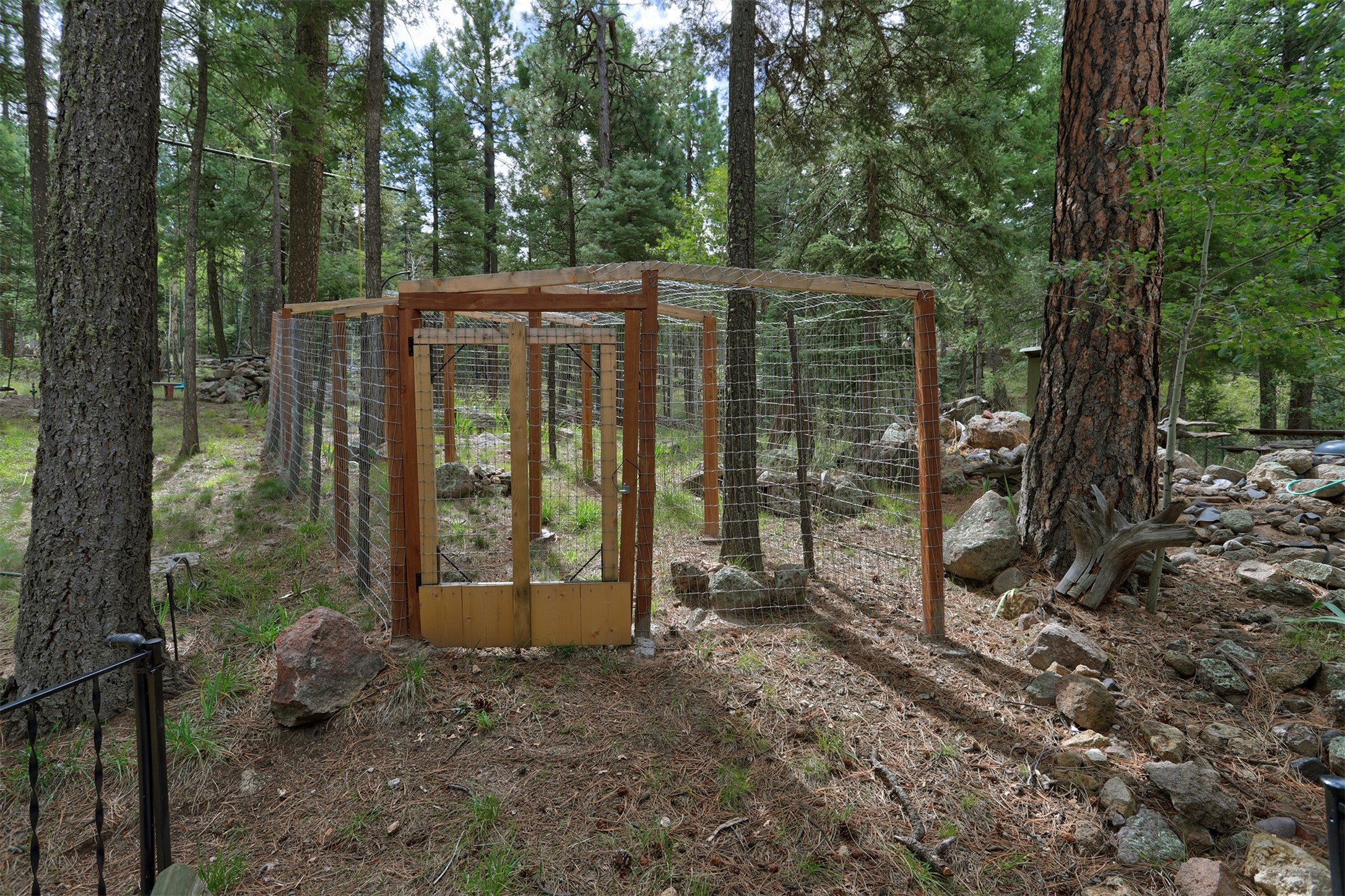 This 1750 SF mountain home is like no other! Located in Thompson Ridge Estates and has three levels, plus a one car garage/storage area underneath. The main floor features a spacious kitchen/dining area leading into the family/living room. Most of the residence is finished in tongue and groove floor to ceiling and gives it that warm mountain feel. Electric baseboard plus a wood stove and two pellet stoves keep everything toasty in the winter. Take the steps or spiral staircase up to the master suite and sleeping area. Walk in closet, full bath and laundry have access from the master and open sleeping area. Walk out to the back deck and upper lot area. From the second floor, head up the ship stairs upper loft and train room. Come to the mountains and enjoy all the Jemez has to offer!