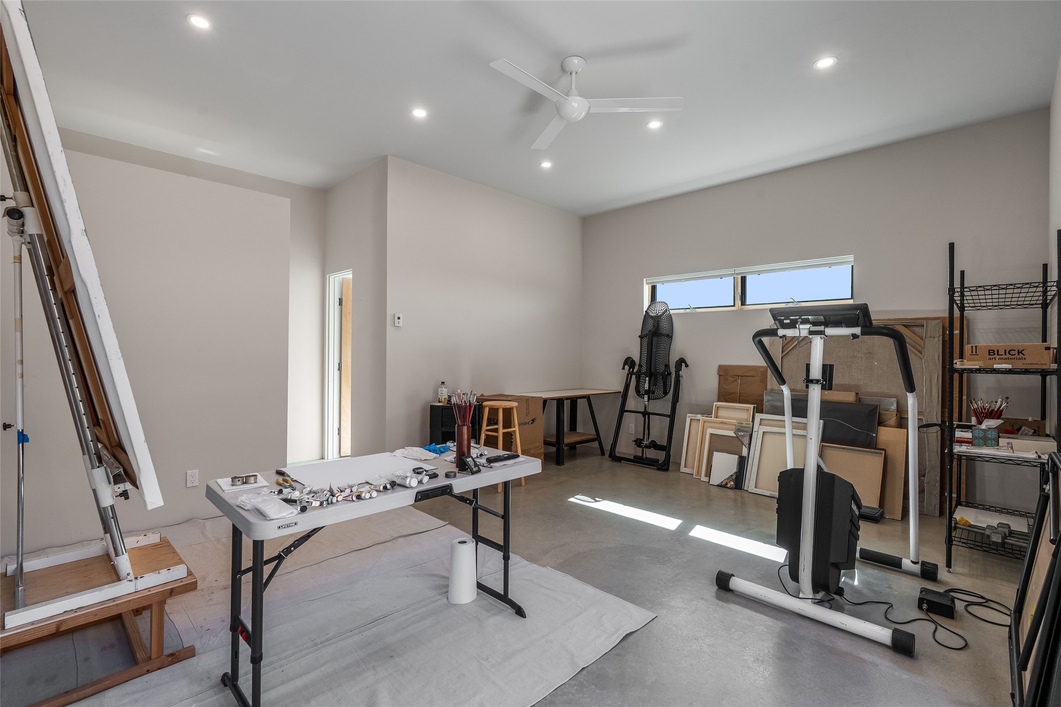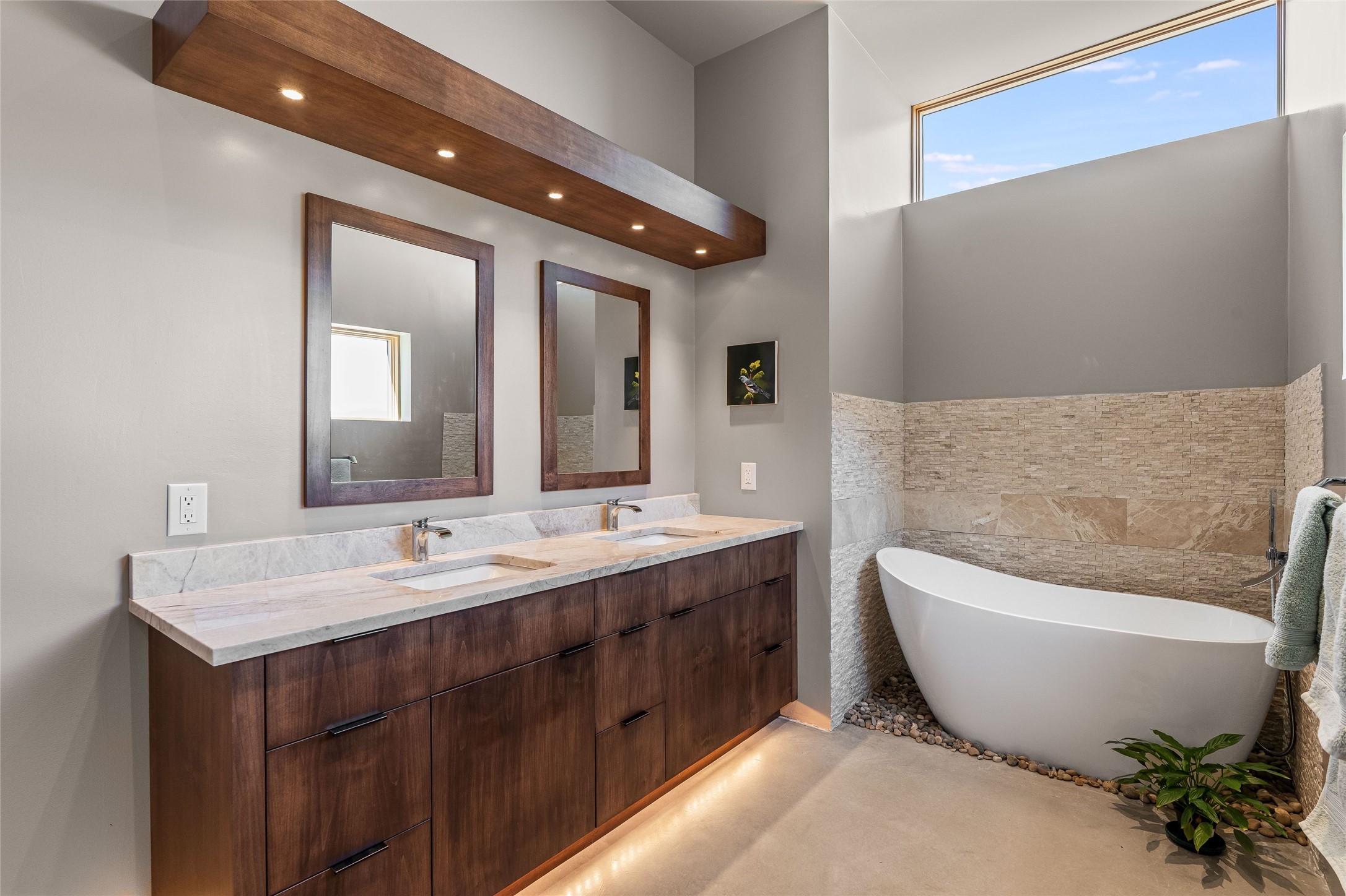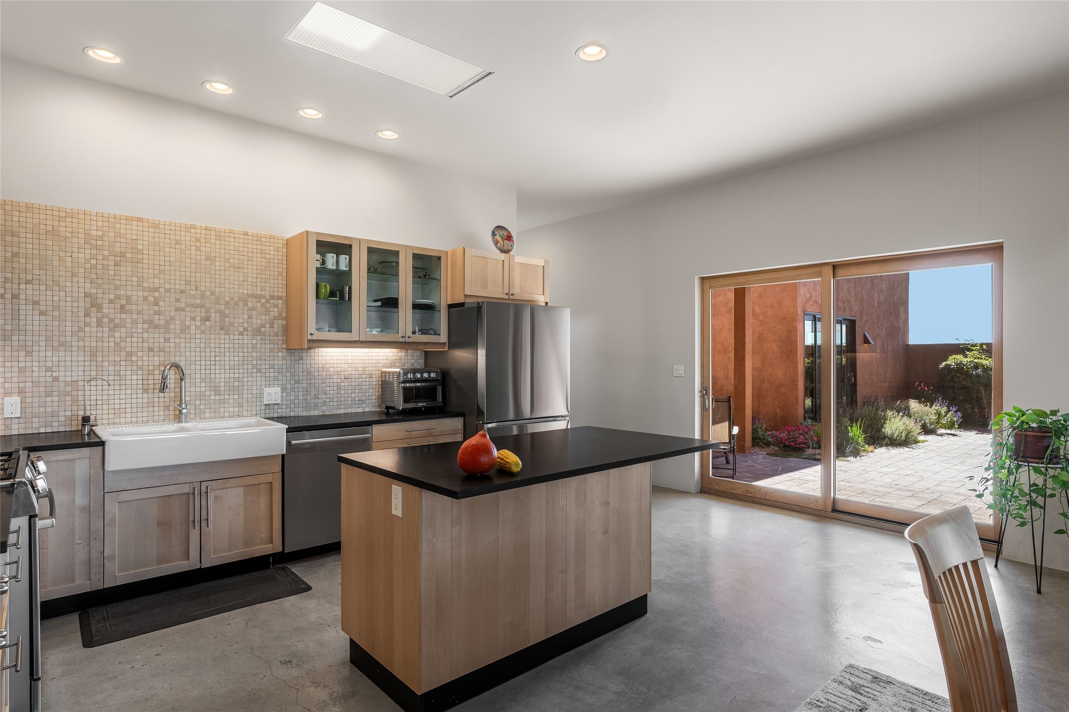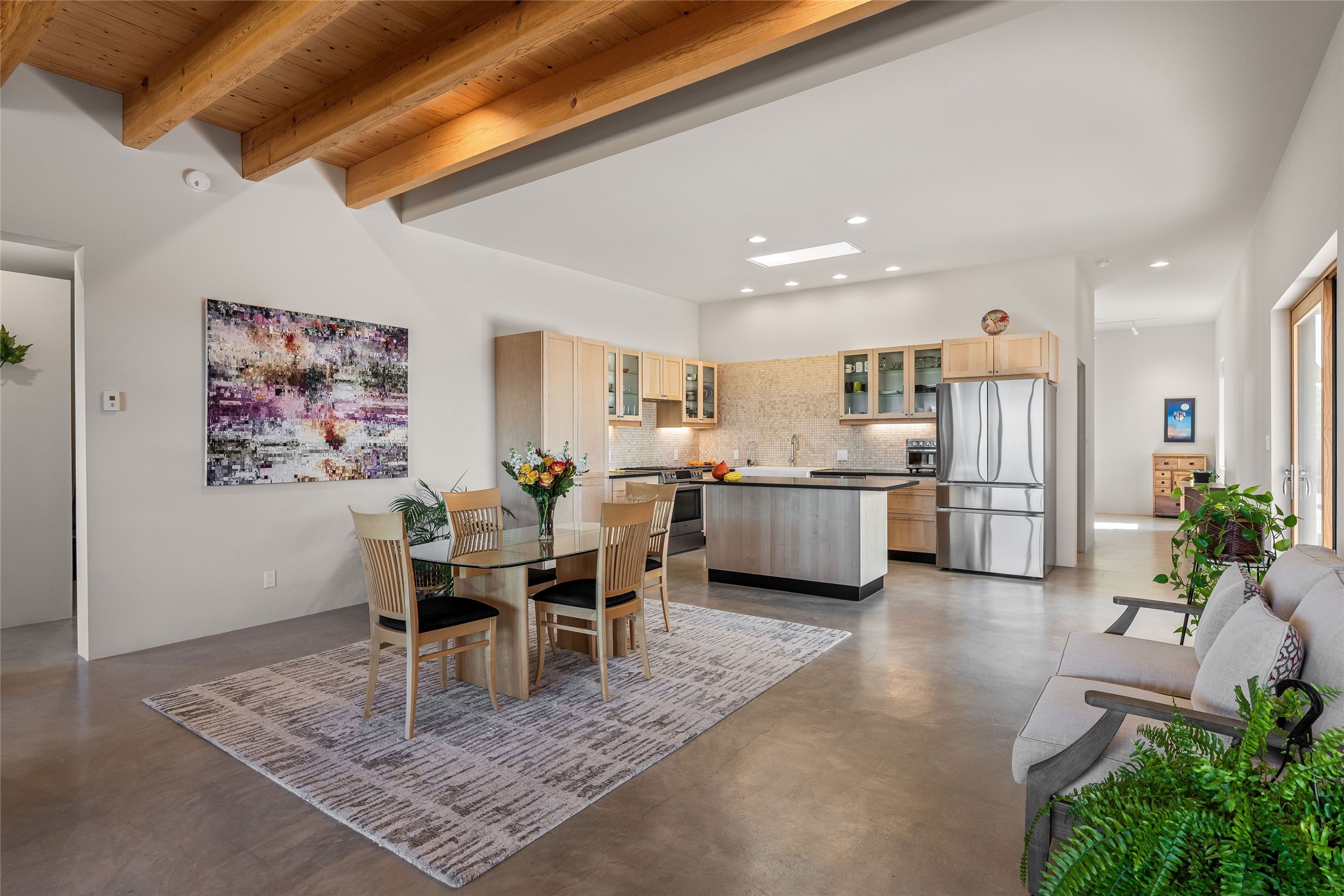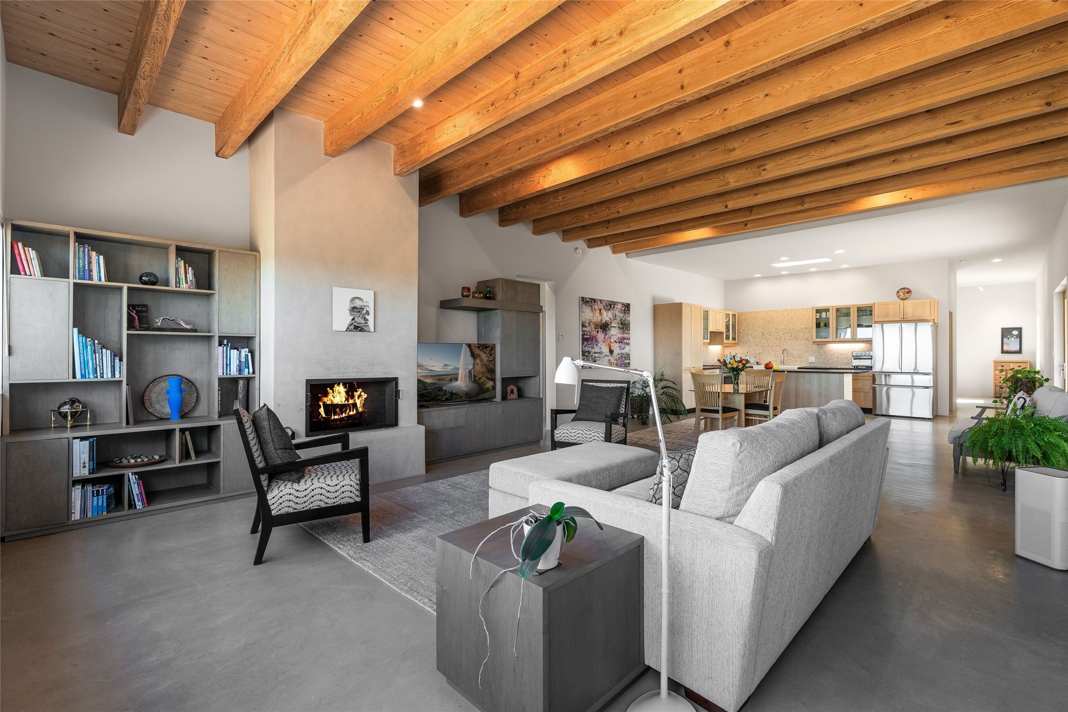This contemporary EJ Jennings design/build exceptional home is situated on 3.8 acres in the desirable Rancho San Lucas neighborhood.Thelight-filled residence has an openliving space with expansive mountain views, wood burning fireplace, an opendining/kitchen area with concrete floors andin-floor radiant heat throughout. The primary bedroom has a walk-in closet with built-in storage and updated bathroom with soaking tub. The second bedroom/office space also has a walk-in closet and nice separationfrom theprimary suite. The detached casita/studio/guest bedroom with 3/4 bathroom, is located in a private courtyard with a pollinator friendly landscape and a raised bed vegetable garden, perfect for relaxing and entertaining. The total square feet of 2400 includes a separate guest house of 400 sf. There is an attached 2 car garage and an additional 600 square foot RV garage/workshop or studio space with plenty of light, built-in storage cabinets and a utility sink. A rare and beautiful property not to be missed.