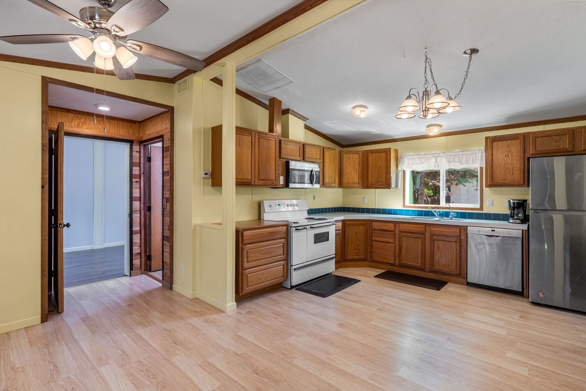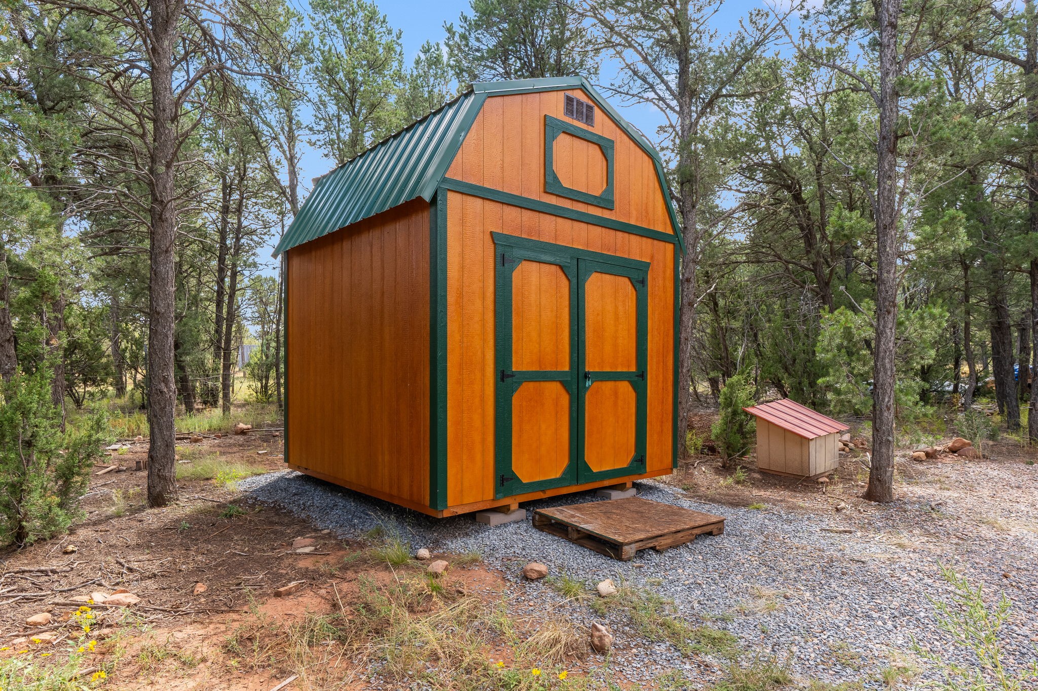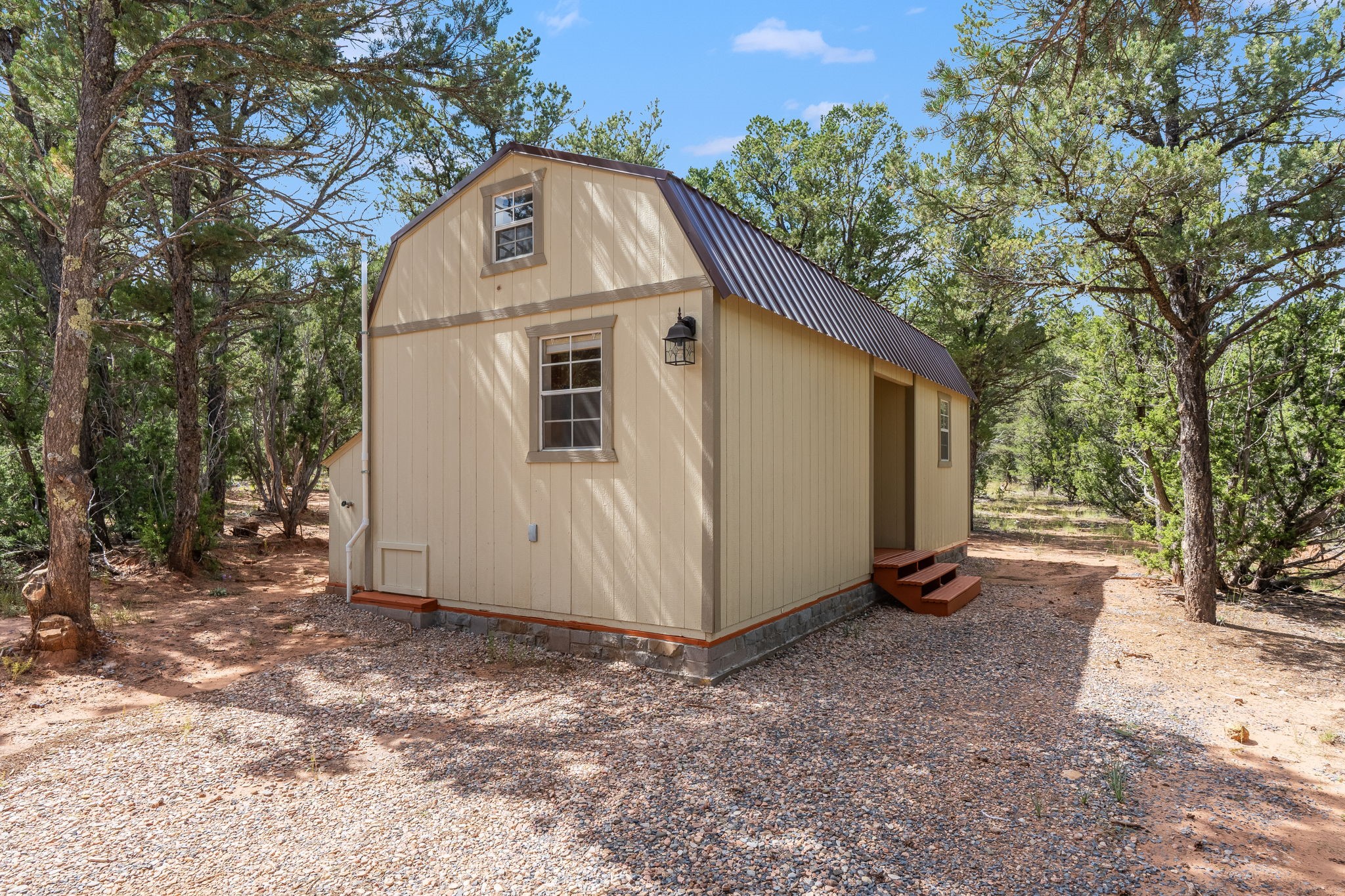 Escape to your own private mountain haven with this charming property tucked away on 4 wooded acres in Rowe, NM. Located just 30 minutes from Santa Fe, 40 minutes from Las Vegas, and less than 15 minutes to Pecos, this property is ideally situated for both convenience and adventure. Surrounded by pinon and other native trees and local wildlife, this retreat offers peace, seclusion, and plenty of room to grow. Roughly 1/3 of the property is fenced in, making an ideal dog run.The main home is a cozy 2-bedroom manufactured house with an expanded living area, creating a warm and inviting space to relax after a day outdoors. A separate guest casita provides extra room for visitors, hobbies, or even rental potential. The casita also features granite countertops,stainless steel appliances, and engineered hardwood floors.In addition, three versatile sheds offer ample storage for tools, equipment, or outdoor gear.The surrounding area is a paradise for outdoor enthusiasts--whether you enjoy hunting, fishing, camping, hiking, or simply taking in the fresh mountain air, you'll find it all right at your doorstep.If you've been looking for a serene getaway with space to expand, this Rowe retreat is ready to welcome you home.