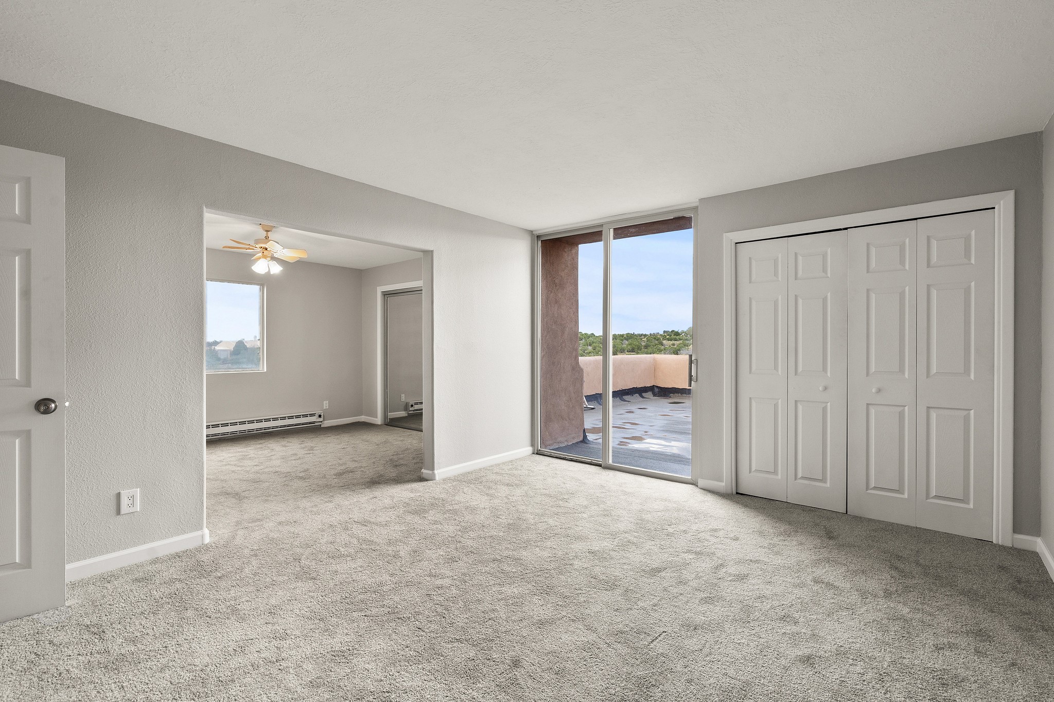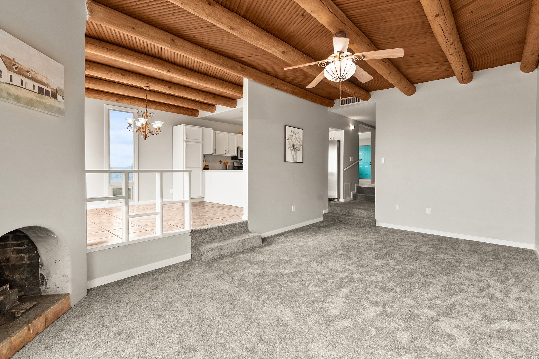Extensively updated multi level townhome that is move in ready and on an end lot! 100K worth of upgrades. Exterior features a new roof, new stucco, and new swamp cooler, and a new furnace. Inside: fresh paint, new carpet, new tile in kitchen & primary bath, updated kitchen, and new appliances. The garage features a new insulated door, epoxy floor, and fresh paint. Bathrooms have new toilets, shower fixtures, and upgraded shower door. Bright, open spaces with great natural lighting, show casing vigas, and a cozy Kiva fireplace. The spacious primary bedroom offers a walkout balcony with stunning views. Minutes from Cochiti golf course and Cochiti lake, with breathtaking skies and scenic views all around! Don't miss out on this spectacular home! Washer/dryer and pool table included.