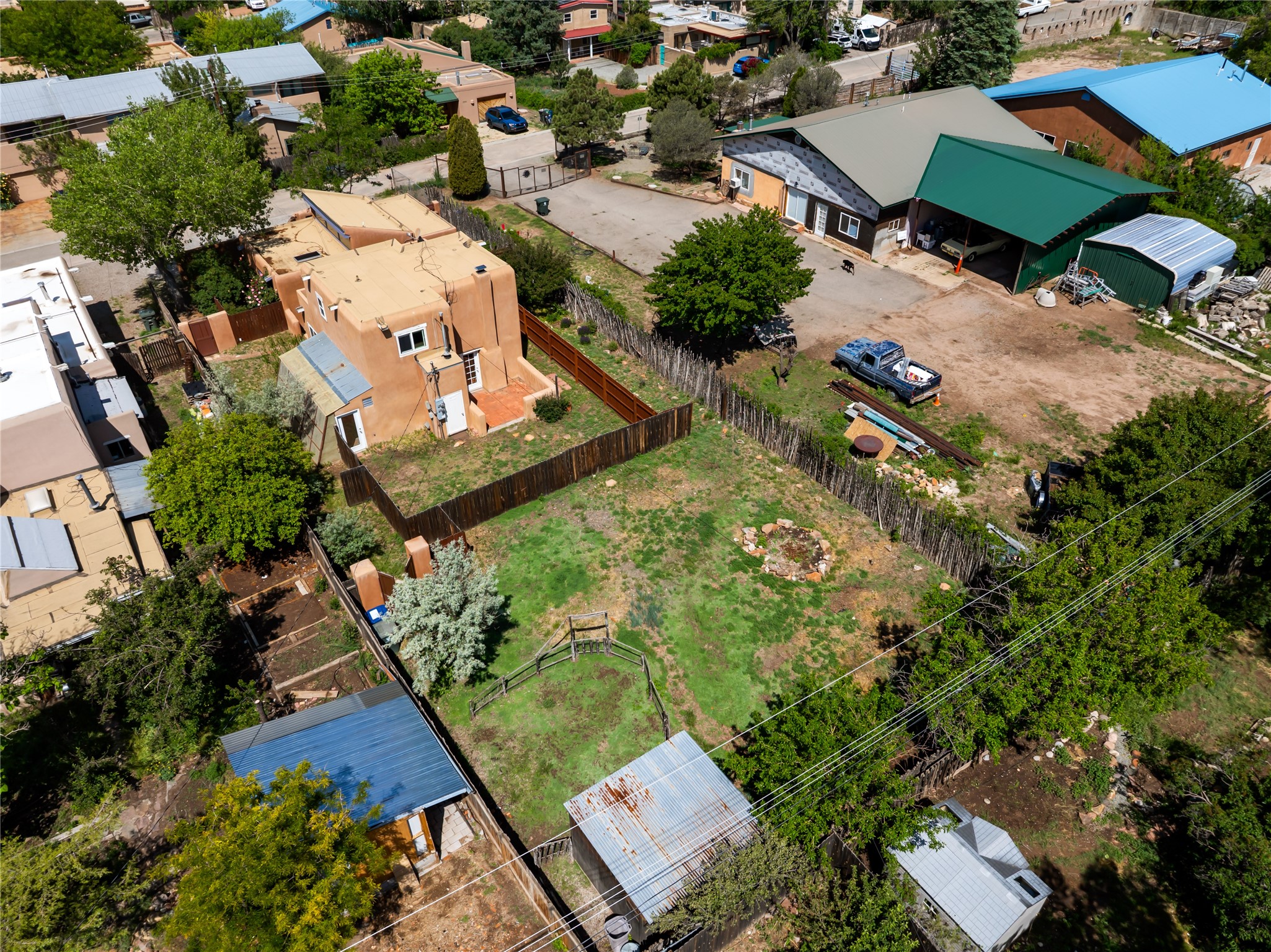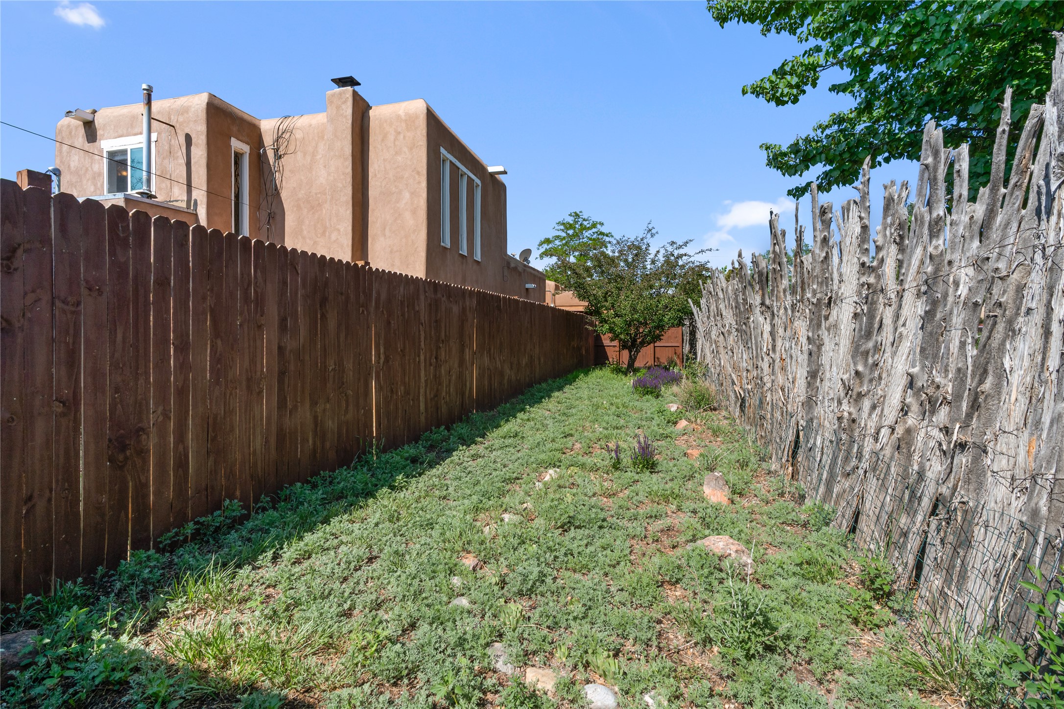 Located only 1.8 miles from the Santa Fe Plaza, this 4-bedroom house and guest house offers both privacy and convenience on a generous lot with future building potential. At the end of a quiet dead-end lane, the home enjoys direct access to beloved community amenities, including Frank Ortiz Dog Park, the Santa Fe River Trail, and Alto Park with its pool and tennis courts. The main residence features authentic adobe construction on the ground floor and custom design details including vigas, handcrafted solid-wood cabinetry, striking sunrises over the Sangre De Cristo Moutnains and sunset views from a private deck.A separate passive-solar adobe casita enhances the property's versatility, ideal for guests, extended family, or a private studio; it includes a gas fireplace, cast-iron soaking tub, tile flooring, clerestory windows, sleeping loft, and its own fenced yard. A gated front courtyard and ample off-street parking complete this rare offering. With its blend of traditional charm, thoughtful details and location, this home is truly a Santa Fe gem.