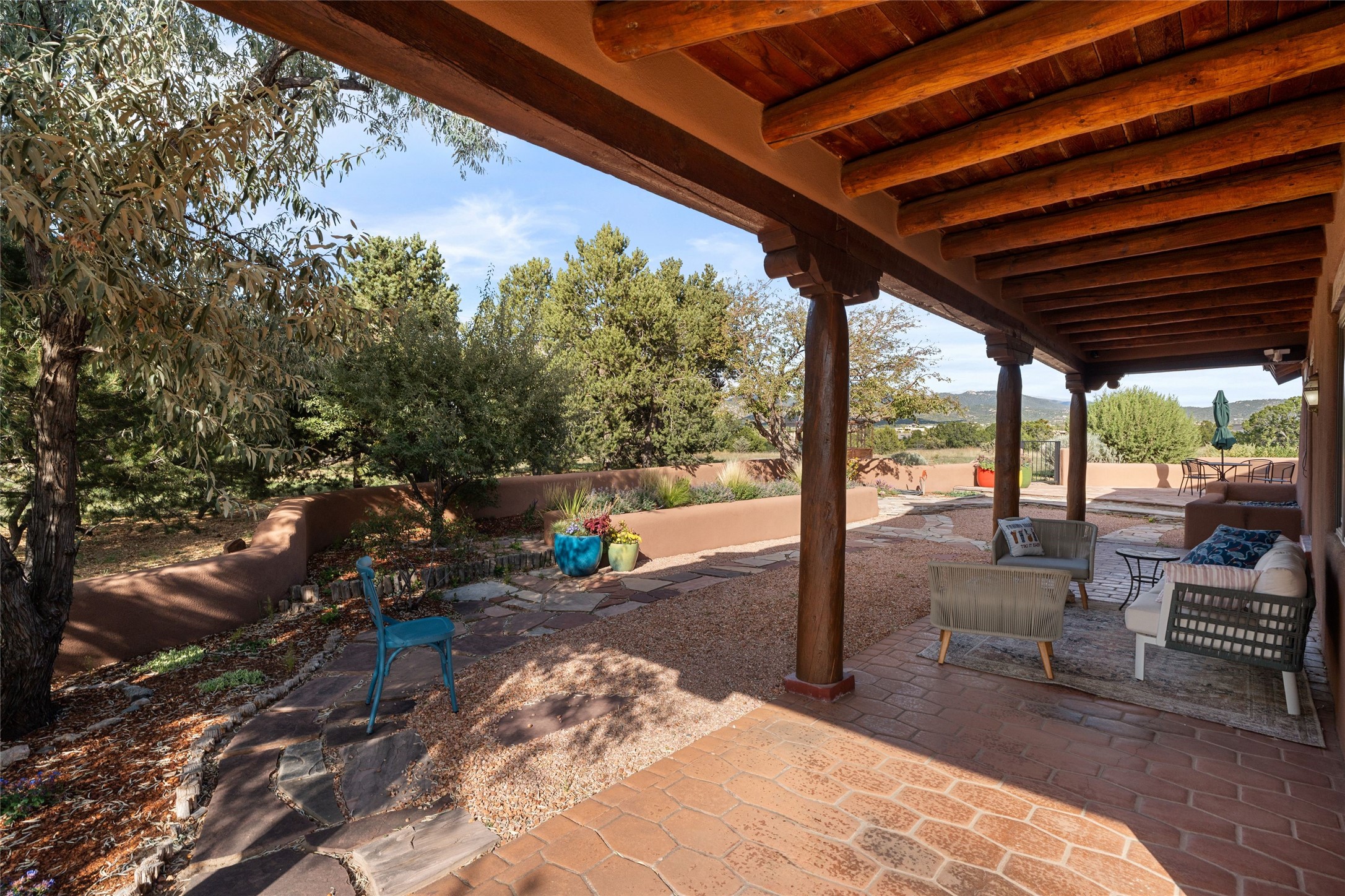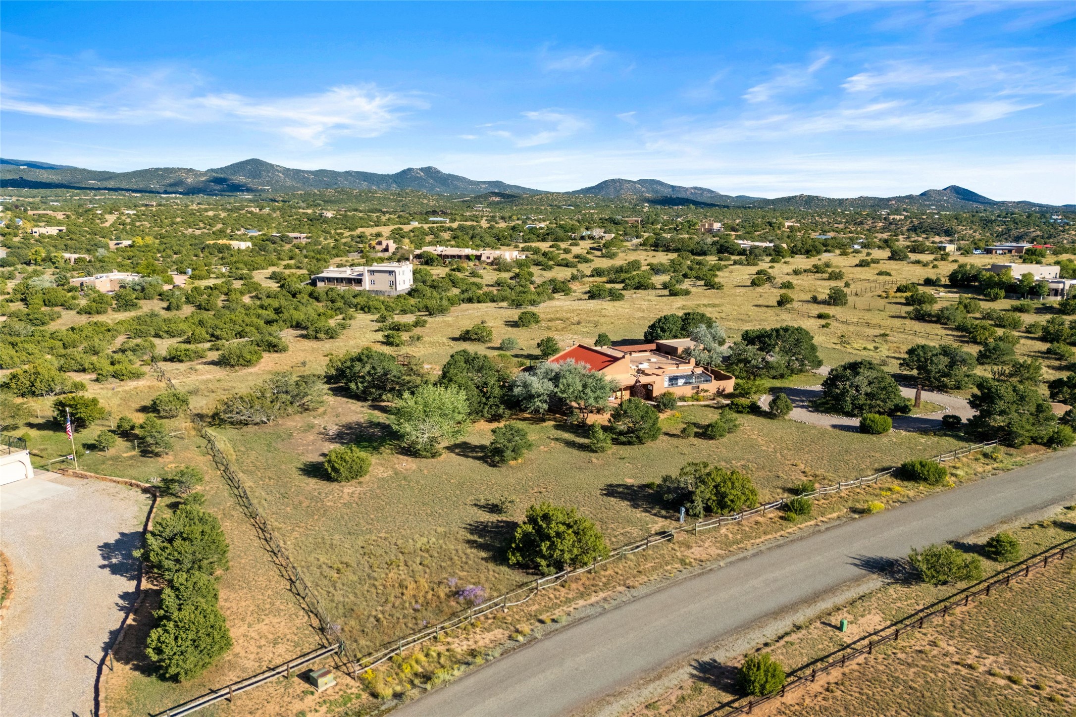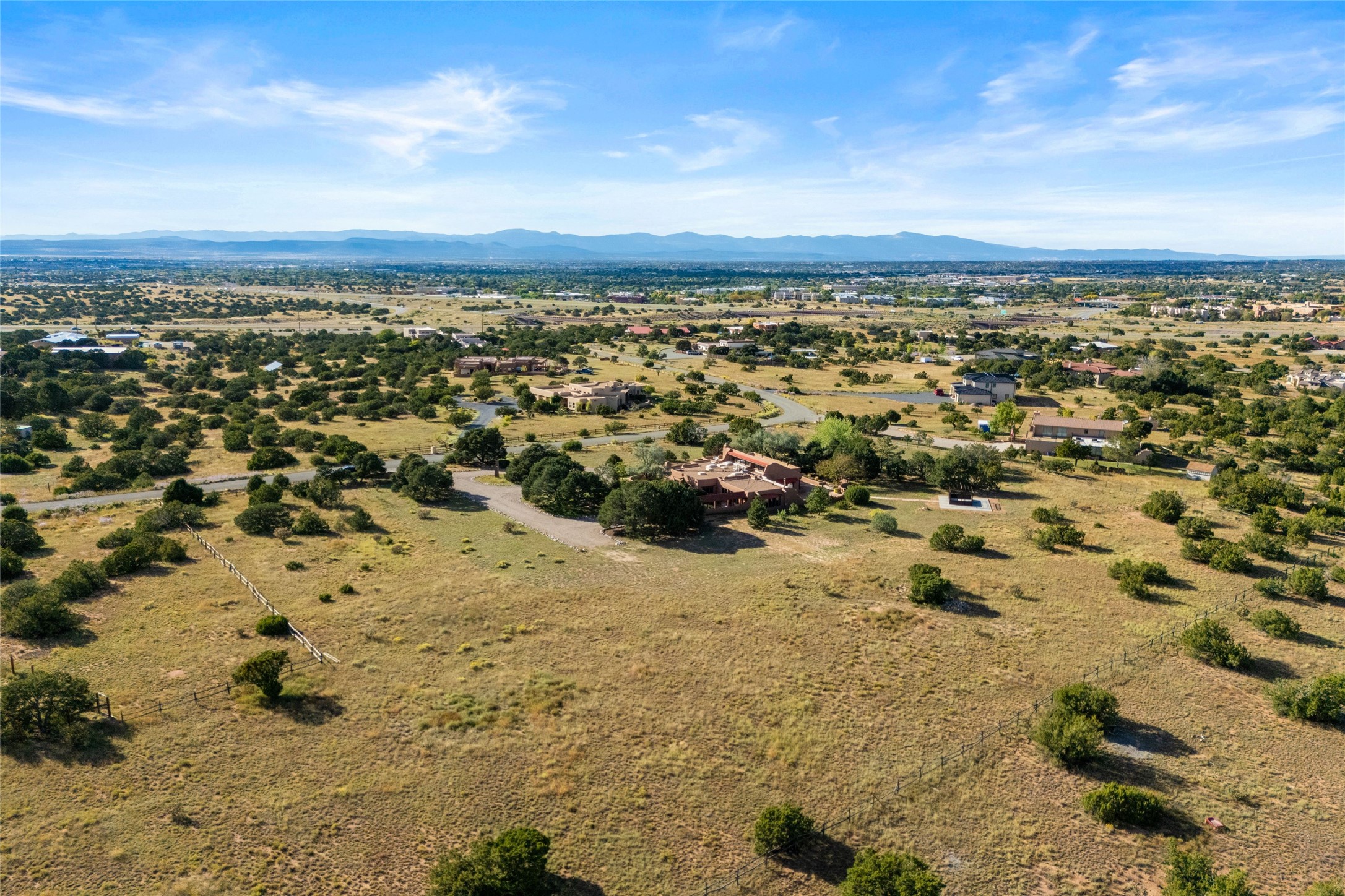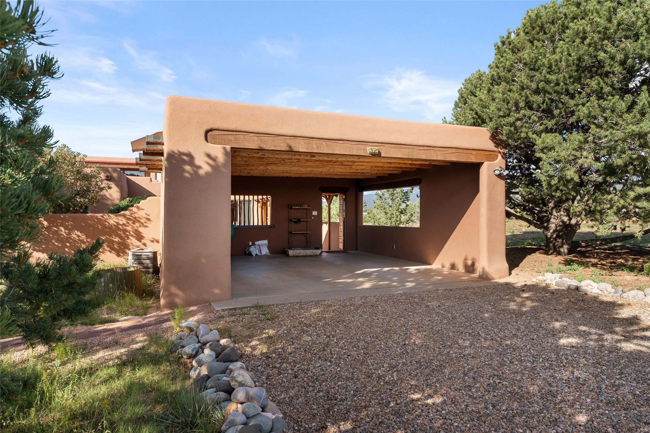 Set on 4.3 gated acres of natural beauty, this tranquil Santa Fe retreat offers breathtaking views from every room and effortless access to downtown, Zafarano Road, and I-25.The open living, dining, and kitchen area flows beautifully for both relaxed living and elegant entertaining. Surrounded by walled courtyards and lush gardens, the property offers exceptional privacy and serenity--an ideal artist's haven or personal sanctuary.Two spacious bedrooms and a versatile bonus room provide flexibility for a studio, family room, or large den. A newly added open greenhouse, set on a poured concrete slab, enhances the property's picturesque charm and creative potential.Meticulously maintained and thoughtfully updated, recent improvements include repaired stucco, new KitchenAid appliances, refreshed landscaping with drip irrigation, new mini-split systems, and fully serviced electrical systems.Experience the perfect blend of beauty, tranquility, and convenience in this rare Santa Fe retreat.