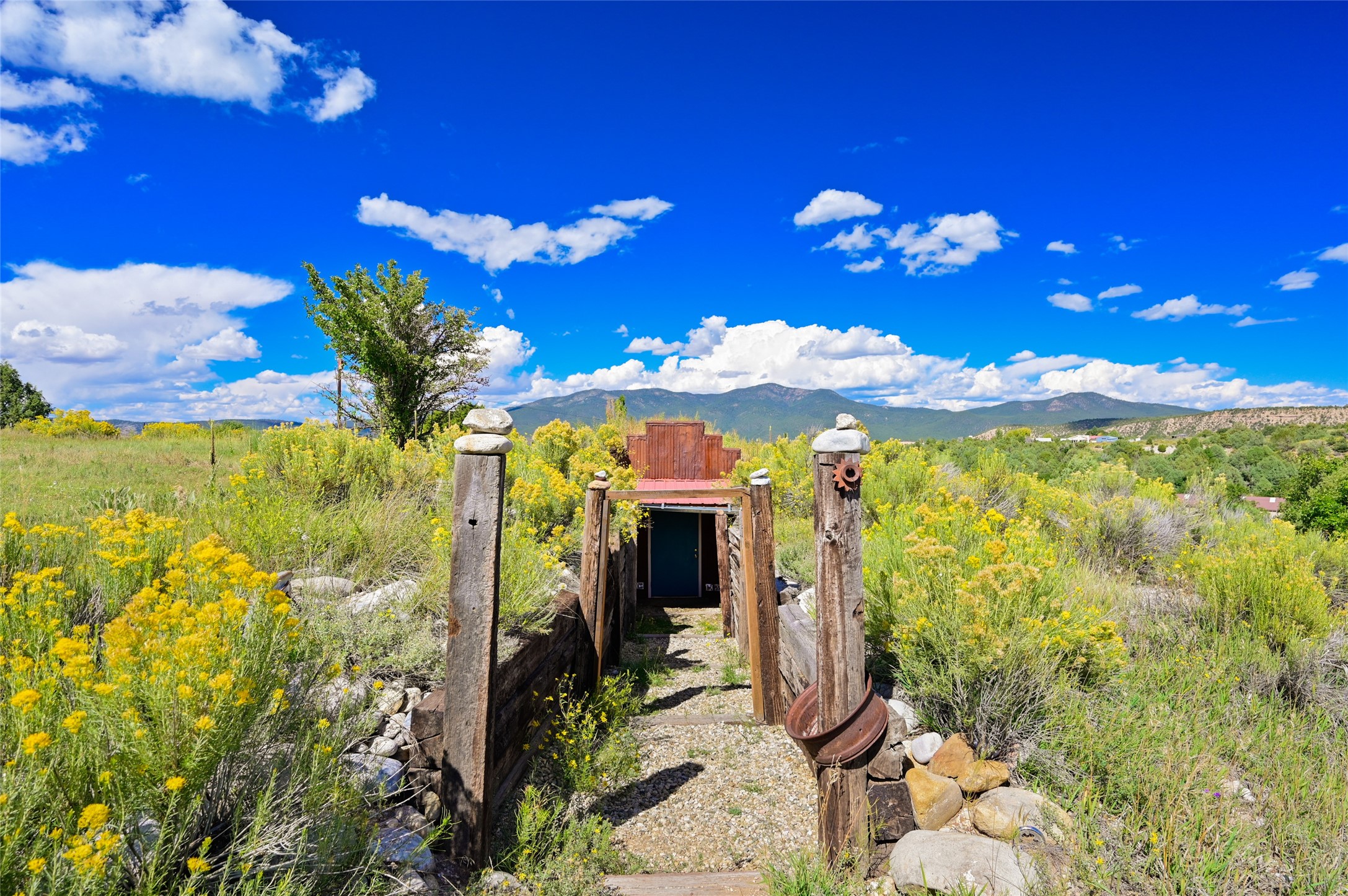 A truly rare 34-acre mountain retreat awaits, nestled in the Sangre de Cristo Mountains with stunning views of Jicarita Peak and Truchas Peaks. This exceptional, self-sufficient, and sustainably developed property is perfect for a small family business, equestrian estate, or serene retreat center.The total living space of 4,100 sq ft includes a charming 1,600 sq ft earth-bermed 2-bedroom home featuring custom stone floors, vigas, radiant in-floor heat in the kitchen and master suite, and an updated kitchen with a Wolf Stove and granite countertops. The home is designed for energy efficiency, maximizing solar gain, and has a wrap-around deck with captivating pond and mountain views.The property also boasts a 2,225 sq ft office/mixed-use building (zoned for cottage industry, previously a successful institute), a 275 sq ft studio/guest house with a half-bath, and a 30' insulated yurt with off-grid solar, ideal for meditation or a classroom--offering immense flexibility and separate spaces for living, working, and gathering.Outside, find unparalleled amenities dedicated to Earth Stewardship and conservation: 10 irrigated acres with water rights for farming or grazing. Rustic 3-stall horse barn and tack room, horse fencing throughout property. 33' geodesic Growing Dome for year-round production. A comprehensive water catchment system utilizing heavy-duty roof guttering on all buildings and multiple cisterns. A quarter-acre pond with a Trex deck, fed by wetlands and springs, and aerated by a windmill. A vast network of maintained trails on forested acres (thinned and managed), offering direct access to the Carson National Forest.Additional features include an owned grid-tied solar array, a root cellar, a 40' cargo container, and extensive landscaping with drip irrigation. This property is a rare gem, beautifully developed, and ready for its next steward.