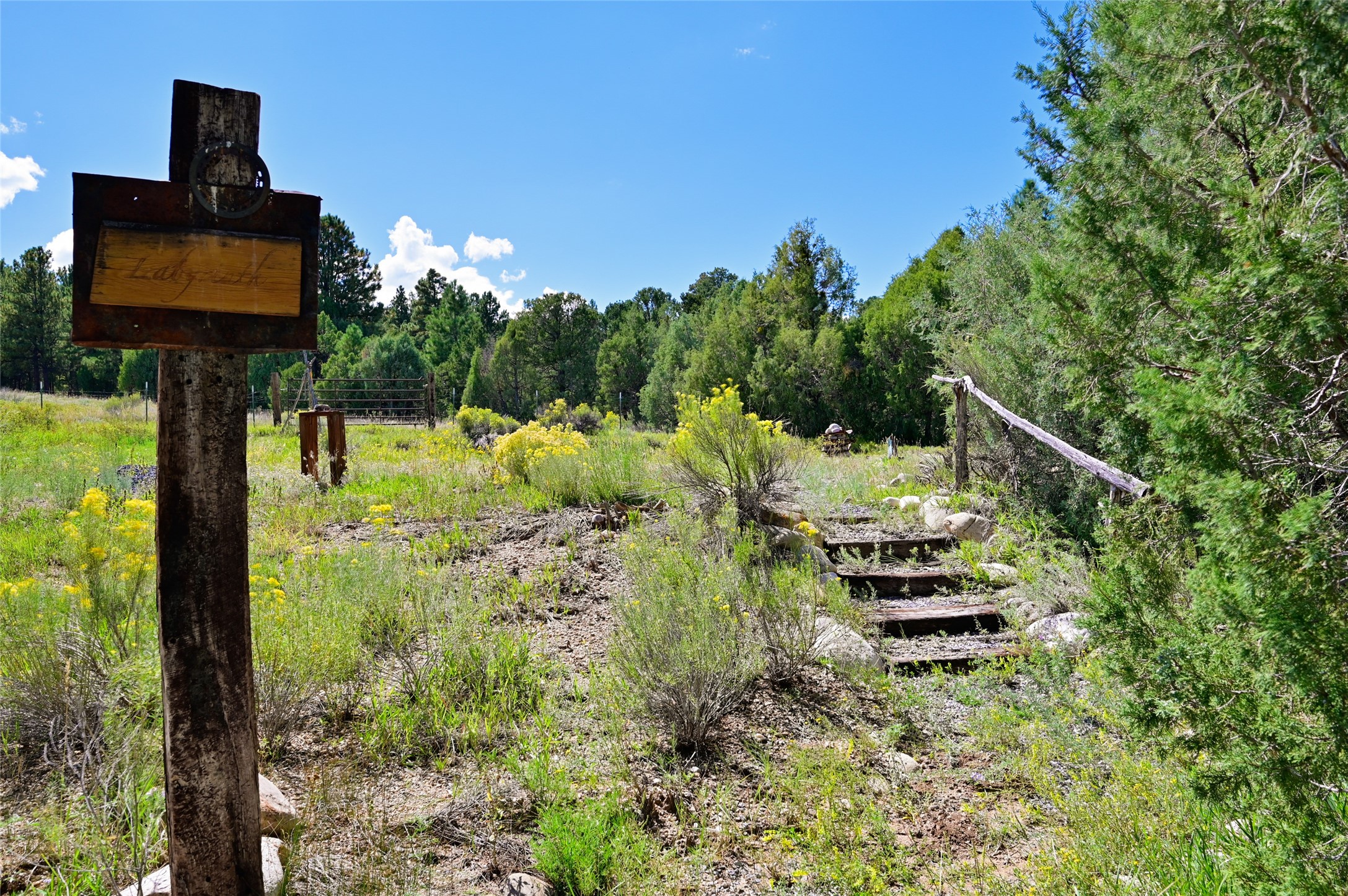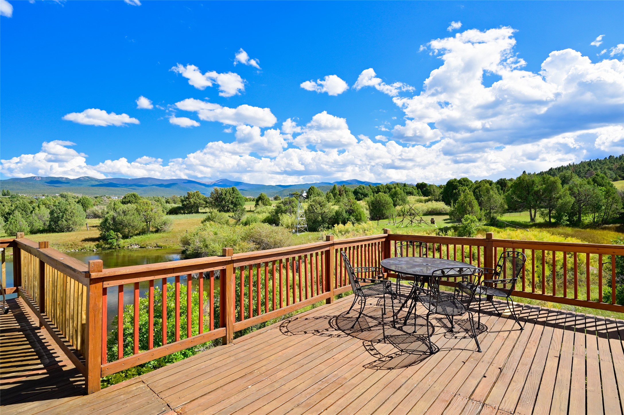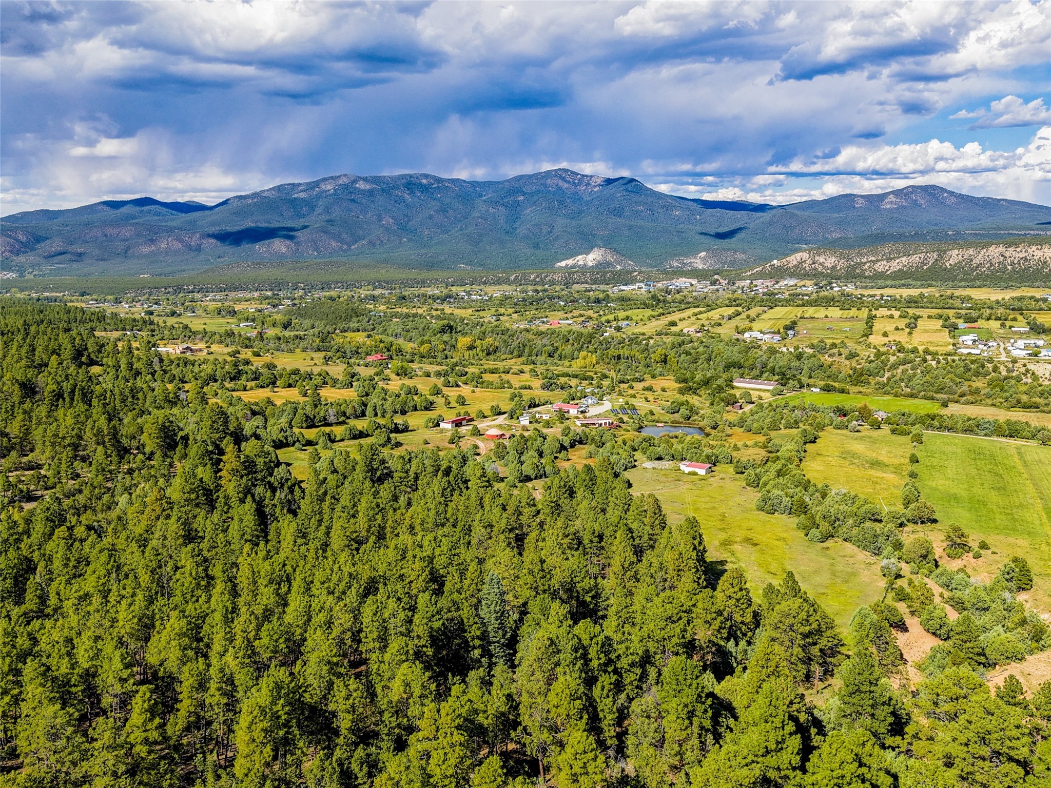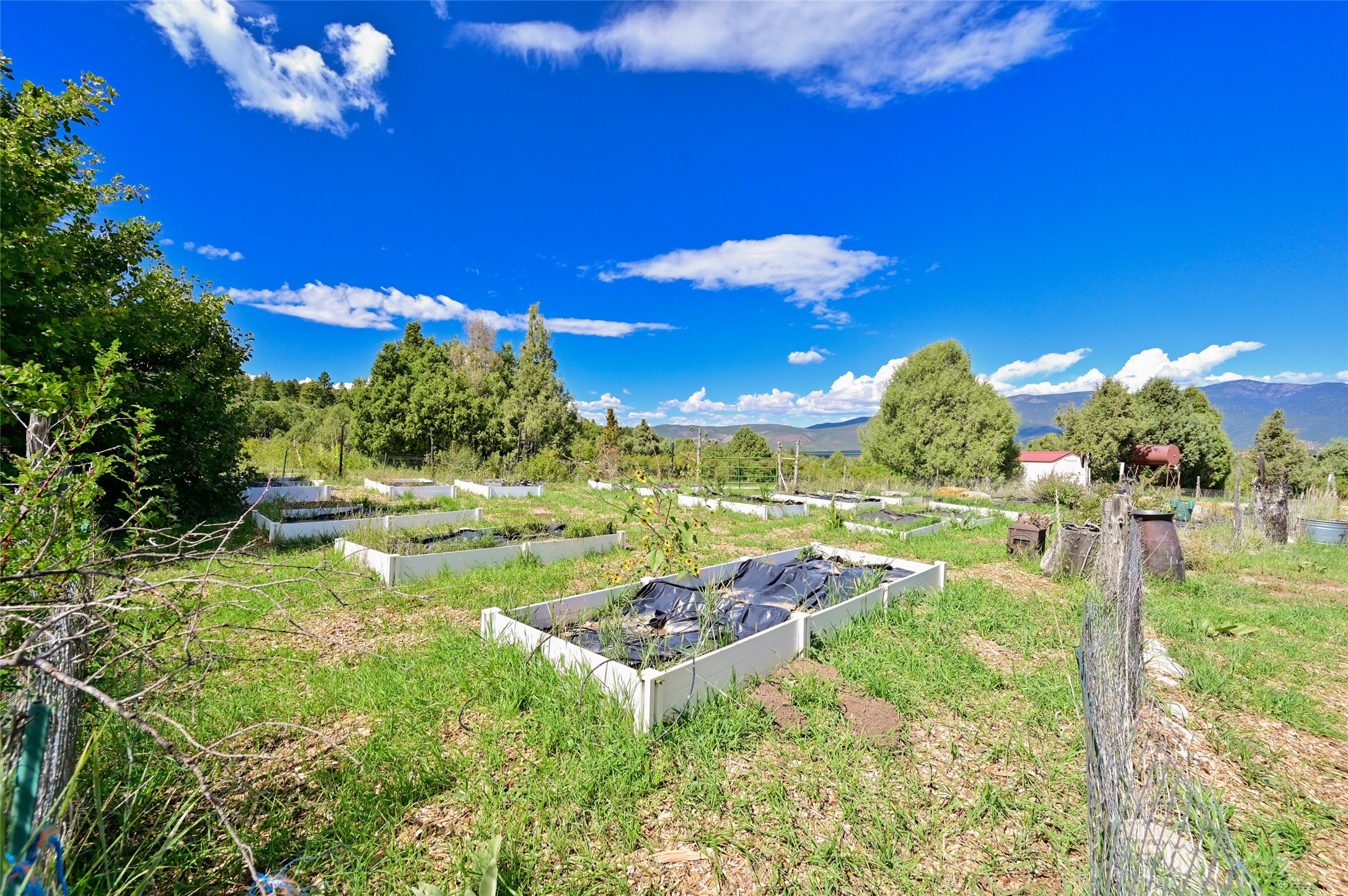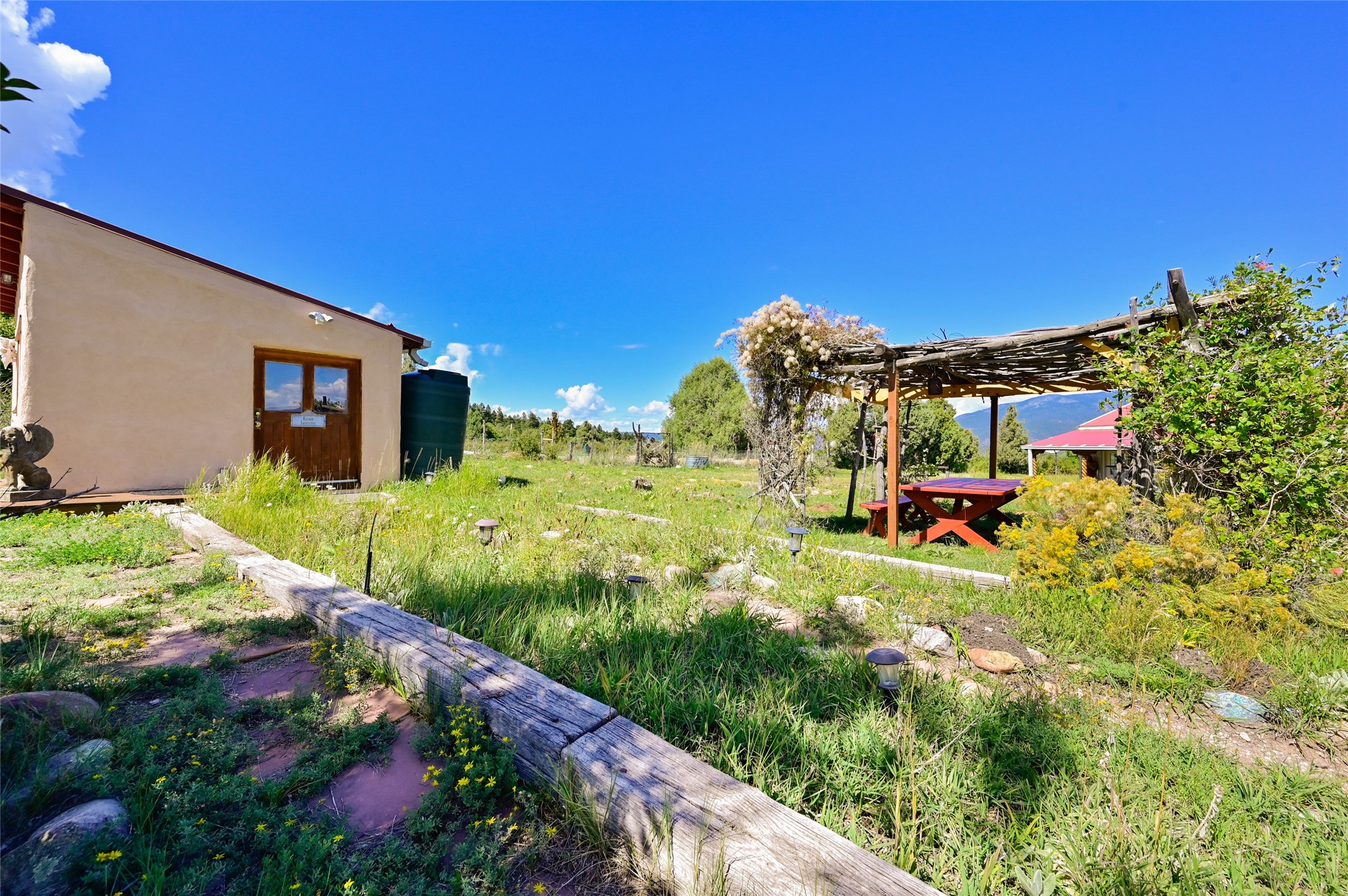 A truly rare 34-acre mountain retreat awaits, nestled in the Sangre de Cristo Mountains with stunning views of Jicarita Peak and Truchas Peaks. This exceptional, self-sufficient, and sustainably developed property is perfect for a small family business, equestrian estate, or serene retreat center.The total living space of 4,100 sq ft includes a charming 1,600 sq ft earth-bermed 2-bedroom home featuring custom stone floors, vigas, radiant in-floor heat in the kitchen and master suite, and an updated kitchen with a Wolf Stove and granite countertops. The home is designed for energy efficiency, maximizing solar gain, and has a wrap-around deck with captivating pond and mountain views.The property also boasts a 2,225 sq ft office/mixed-use building (zoned for cottage industry, previously a successful institute), a 275 sq ft studio/guest house with a half-bath, and a 30' insulated yurt with off-grid solar, ideal for meditation or a classroom--offering immense flexibility and separate spaces for living, working, and gathering.Outside, find unparalleled amenities dedicated to Earth Stewardship and conservation: 10 irrigated acres with water rights for farming or grazing. Rustic 3-stall horse barn and tack room, horse fencing throughout property. 33' geodesic Growing Dome for year-round production. A comprehensive water catchment system utilizing heavy-duty roof guttering on all buildings and multiple cisterns. A quarter-acre pond with a Trex deck, fed by wetlands and springs, and aerated by a windmill. A vast network of maintained trails on forested acres (thinned and managed), offering direct access to the Carson National Forest.Additional features include an owned grid-tied solar array, a root cellar, a 40' cargo container, and extensive landscaping with drip irrigation. This property is a rare gem, beautifully developed, and ready for its next steward.