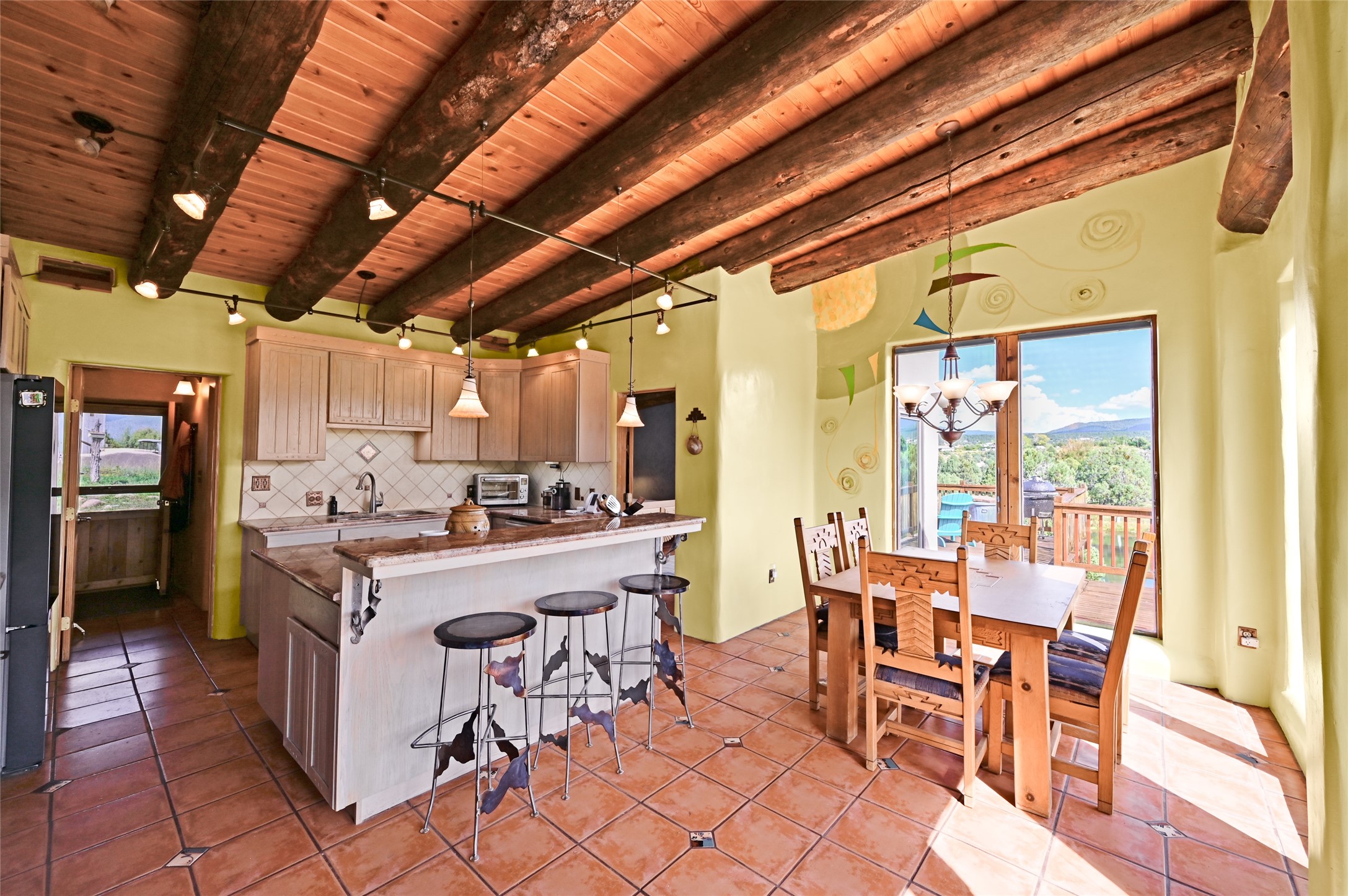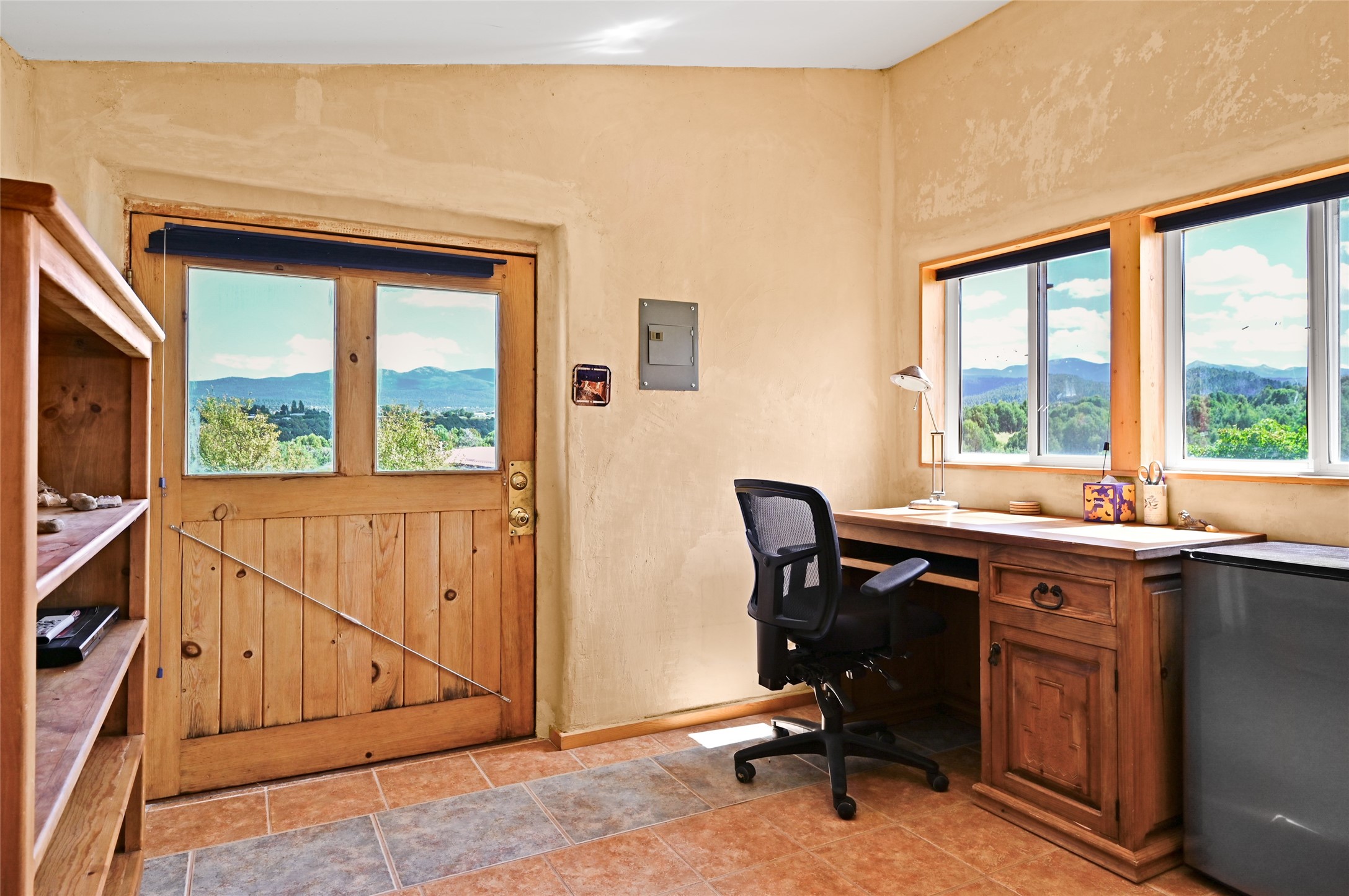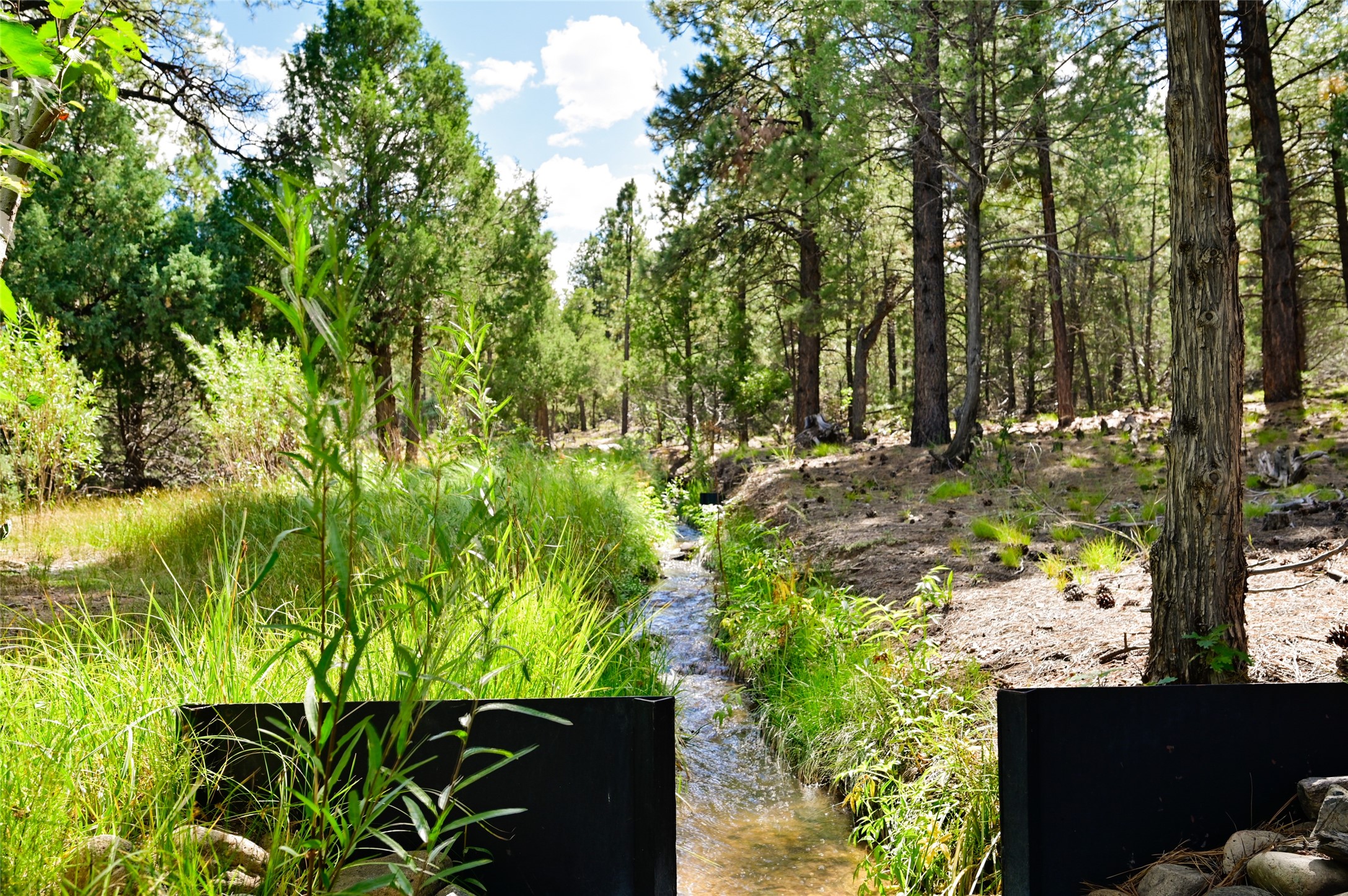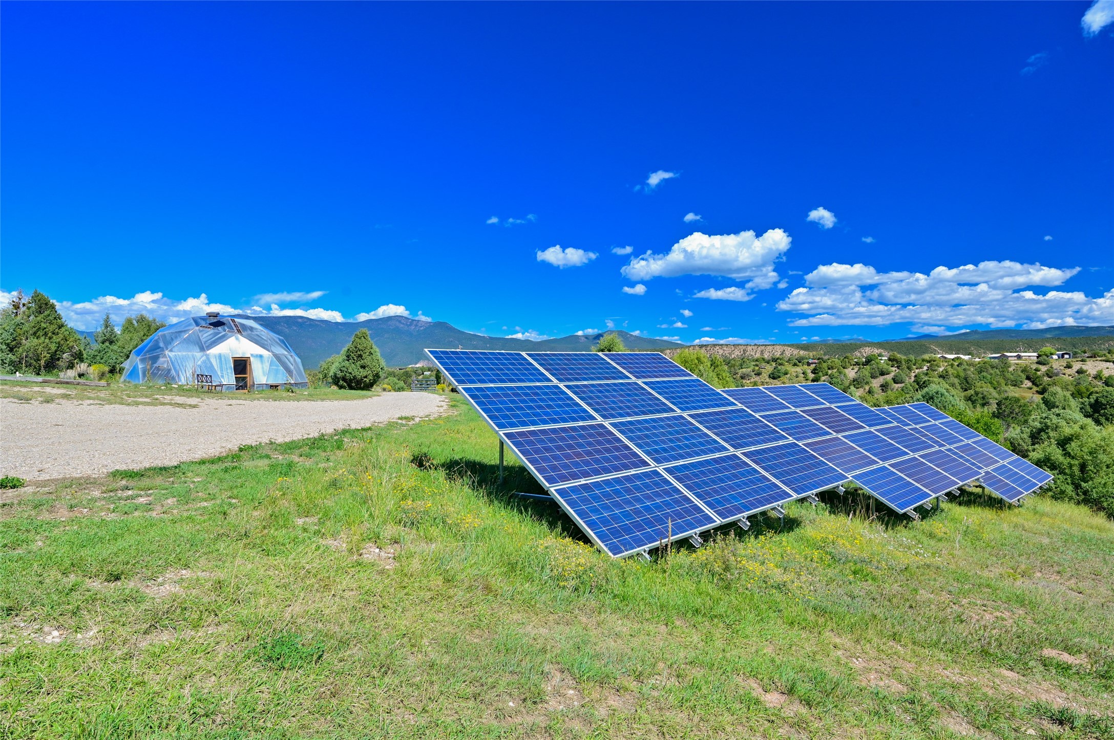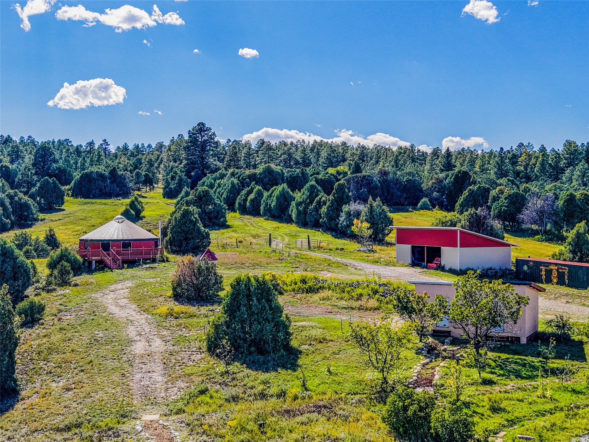 A truly rare 34-acre mountain retreat awaits, nestled in the Sangre de Cristo Mountains with stunning views of Jicarita Peak and Truchas Peaks. This exceptional, self-sufficient, and sustainably developed property is perfect for a small family business, equestrian estate, or serene retreat center.The total living space of 4,100 sq ft includes a charming 1,600 sq ft earth-bermed 2-bedroom home featuring custom stone floors, vigas, radiant in-floor heat in the kitchen and master suite, and an updated kitchen with a Wolf Stove and granite countertops. The home is designed for energy efficiency, maximizing solar gain, and has a wrap-around deck with captivating pond and mountain views.The property also boasts a 2,225 sq ft office/mixed-use building (zoned for cottage industry, previously a successful institute), a 275 sq ft studio/guest house with a half-bath, and a 30' insulated yurt with off-grid solar, ideal for meditation or a classroom--offering immense flexibility and separate spaces for living, working, and gathering.Outside, find unparalleled amenities dedicated to Earth Stewardship and conservation: 10 irrigated acres with water rights for farming or grazing. Rustic 3-stall horse barn and tack room, horse fencing throughout property. 33' geodesic Growing Dome for year-round production. A comprehensive water catchment system utilizing heavy-duty roof guttering on all buildings and multiple cisterns. A quarter-acre pond with a Trex deck, fed by wetlands and springs, and aerated by a windmill. A vast network of maintained trails on forested acres (thinned and managed), offering direct access to the Carson National Forest.Additional features include an owned grid-tied solar array, a root cellar, a 40' cargo container, and extensive landscaping with drip irrigation. This property is a rare gem, beautifully developed, and ready for its next steward.