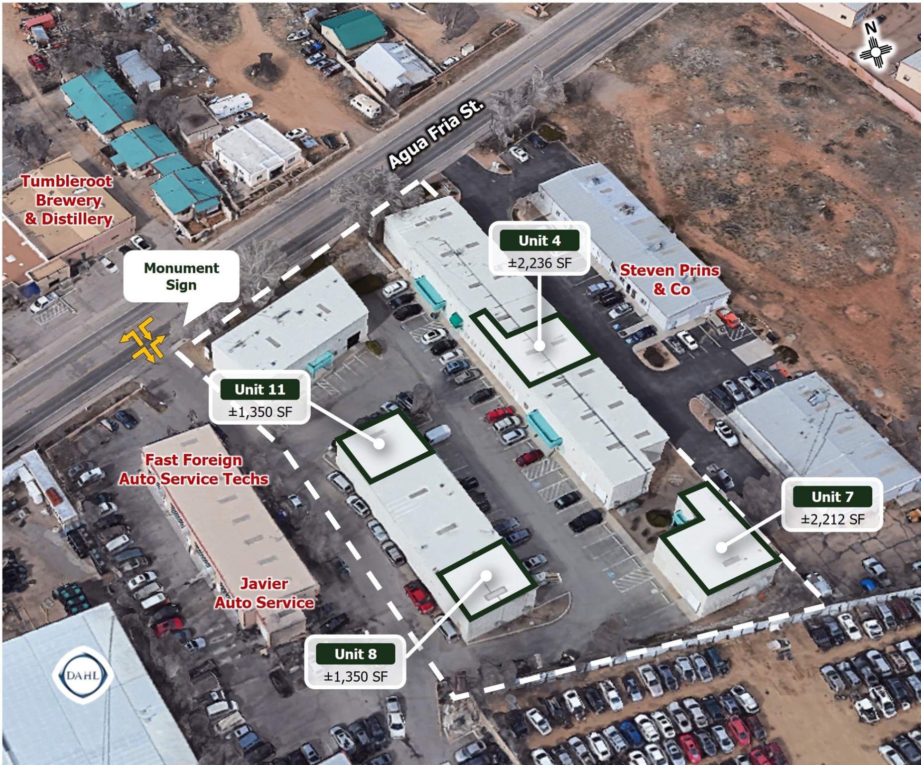 AVAILABLE: Unit 4: 2,236 SF, Unit 7: 2,212 SF, Unit 8: 1,350 SF, Unit 11: 1,350 SF | LEASE RATE: $20.00/SF + NNN | ZONING: I-2, General Industrial | HIGHLIGHTS: Centrally located, Accessible by major roads, Adequate parking, Located in a light and heavy industrial area, Monument sign available, Full circulation property, 20'-24' ceilings height, Ideal for: Performing arts, Manufacturing, Scientific labs, Heavy/light industrial applications, Storage, Office/warehouse space