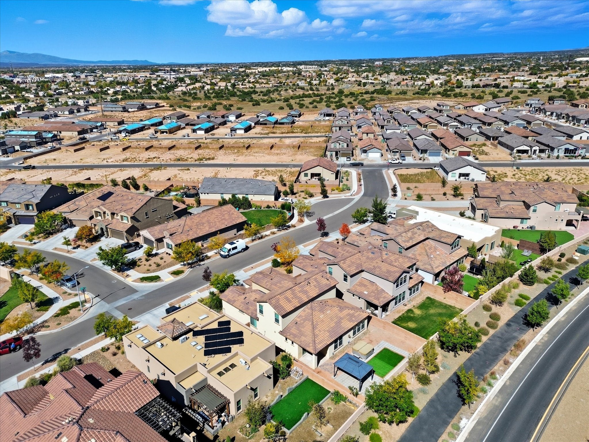 Welcome to your dream home in one of Las Soleras' most desirable neighborhoods -- this well-maintained home offers elegance, functionality, and peace of mind with warranties and new features throughout.This home has a brand-new carpet, ceiling fans in every room, and upgraded 8-foot doors, adding a touch of sophistication and spaciousness throughout. The Kitchen is with granite countertops, new backsplash, new faucet, and a brand-new refrigerator, while the bathrooms feature quartz vanities, new faucets, and upgraded shower heads.Every detail has been thoughtfully refreshed -- from the new washer and dryer to the WiFi-enabled garage door opener and new weatherproof rubber entryway perfect for winter durability. Enjoy peace of mind with the remainder of the Pulte structural warranty, AC/heater and water heater warranties, and a 6-month refurbishment warranty on the hot tub.The zeroscaped backyard is designed for low-maintenance living, complete with a 50-amp outdoor service, ideal for gatherings or future enhancements. The extended garage provides space for a workshop, and CenturyLink wiring ensures high-speed connectivity. Pet lovers will appreciate the dog door conveniently leading into the garage, while guests will love the ample parking space directly across the home and the upstairs loft with a full bath -- a perfect retreat for visitors or entertainment.Located on a perimeter lot close to mailboxes and neighborhood conveniences, this home embodies modern Santa Fe living with unmatched practicality and style.Move-in ready, fully upgraded, and built to last -- this Las Soleras gem is a rare find you don't want to miss.
