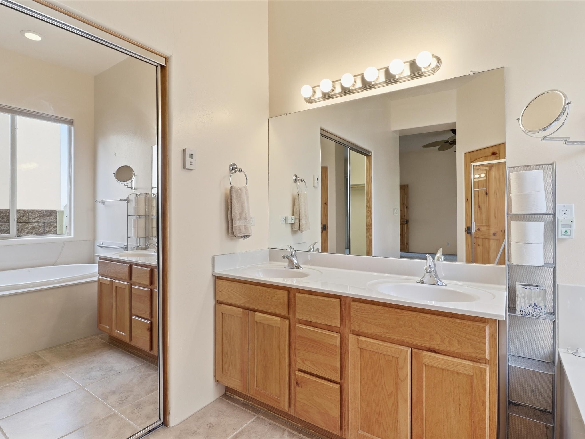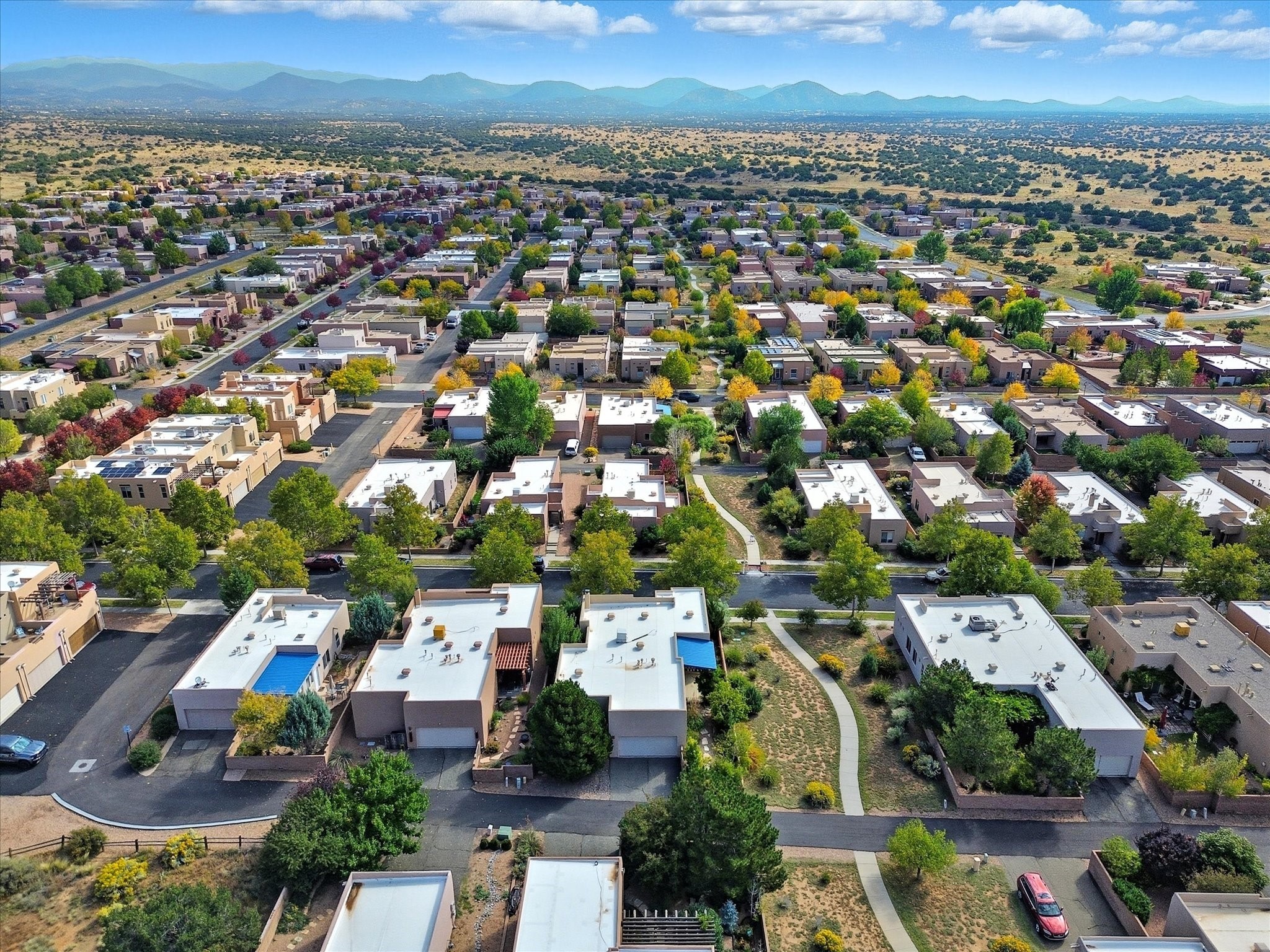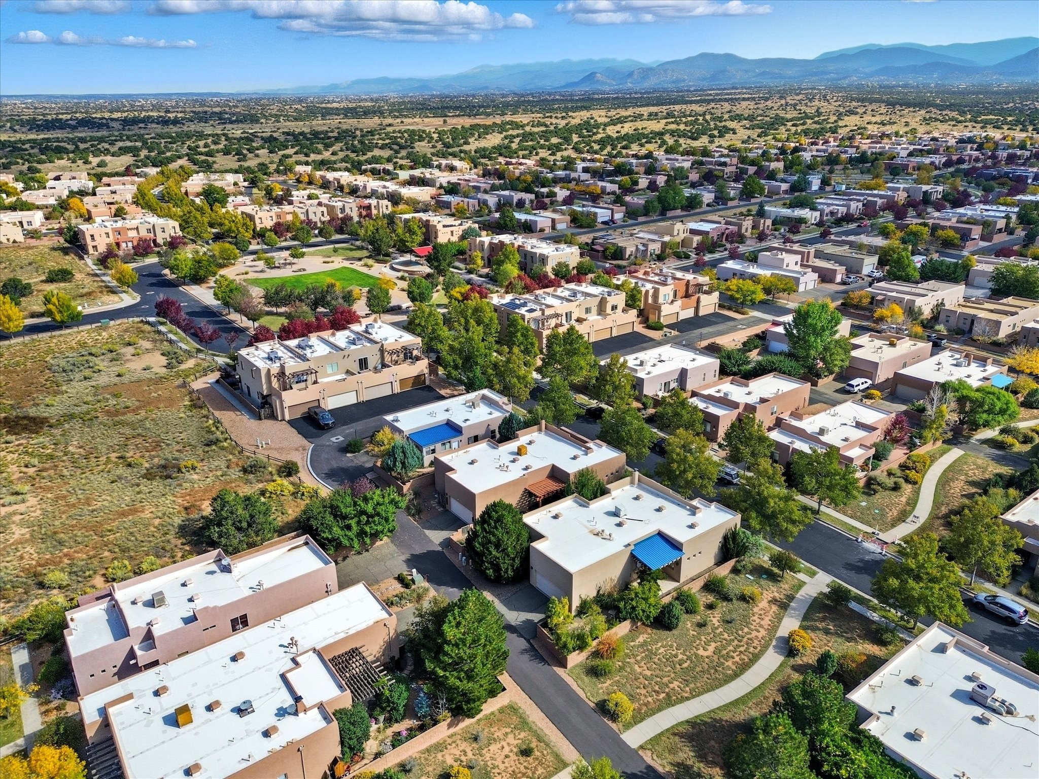 Step inside and be greeted by a stunning living room featuring a classic viga ceiling with latilla accents and custom built-in book shelving, creating a perfect blend of character and functionality. The open-concept living and dining area offers a seamless flow, ideal for entertaining or relaxing in style.The fully equipped kitchen has stainless steel appliances, a breakfast counter, and glass door access leading to the beautiful outdoors--inviting natural light and effortless indoor-outdoor living. The bright dining area opens directly to the stone-paver patio covered by a pro-panel style roof, perfect for morning coffee or evening gatherings surrounded by a mature garden filled with roses.Enjoy the thoughtful layout that connects the backyard effortlessly to both the kitchen and primary bedroom. The primary suite is a serene retreat, featuring direct access to the outdoors, a walk-in closet, and an ensuite bath with dual sinks and an enclosed shower.Situated on the south side next to the spine park walkway, this home enjoys extra sunlight, privacy, and open space--a rare find in Rancho Viejo. The covered patio and front faade framed by mature trees add to the home's peaceful and welcoming ambiance.Whether you're relaxing in the garden, hosting guests under the covered patio, or curling up with a book in the living room, this home offers the perfect balance of style, comfort, and tranquility.