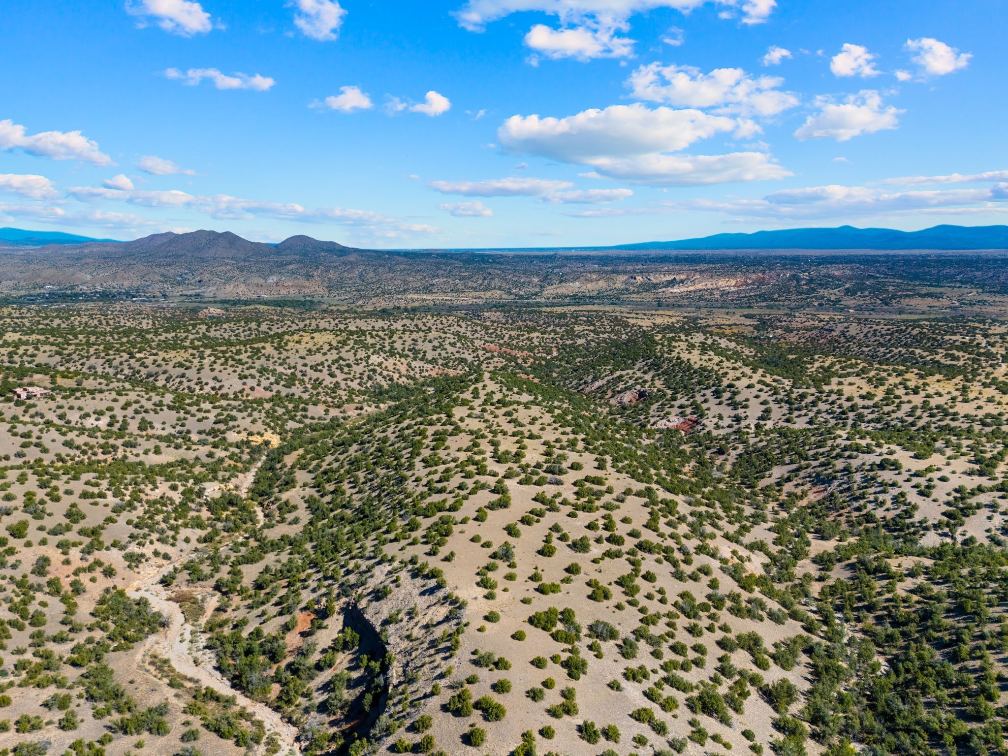 82.7 stunning acres offer unmatched quiet and privacy at the north end of the gorgeous Grenfell Ranch. The lot is comprised of pristine grassland and gentle hills, atop the mesa for stunning 360-degree views of the Cerrillos Hills, Ortiz and Jemez mountains and surrounding valleys. Additionally, the parcel includes the gorgeous west canyon, offering serene hiking and horseback riding along the arroyo. Legal easement access from Rancho De Shama Road runs to the south end of the parcel and potential build site.