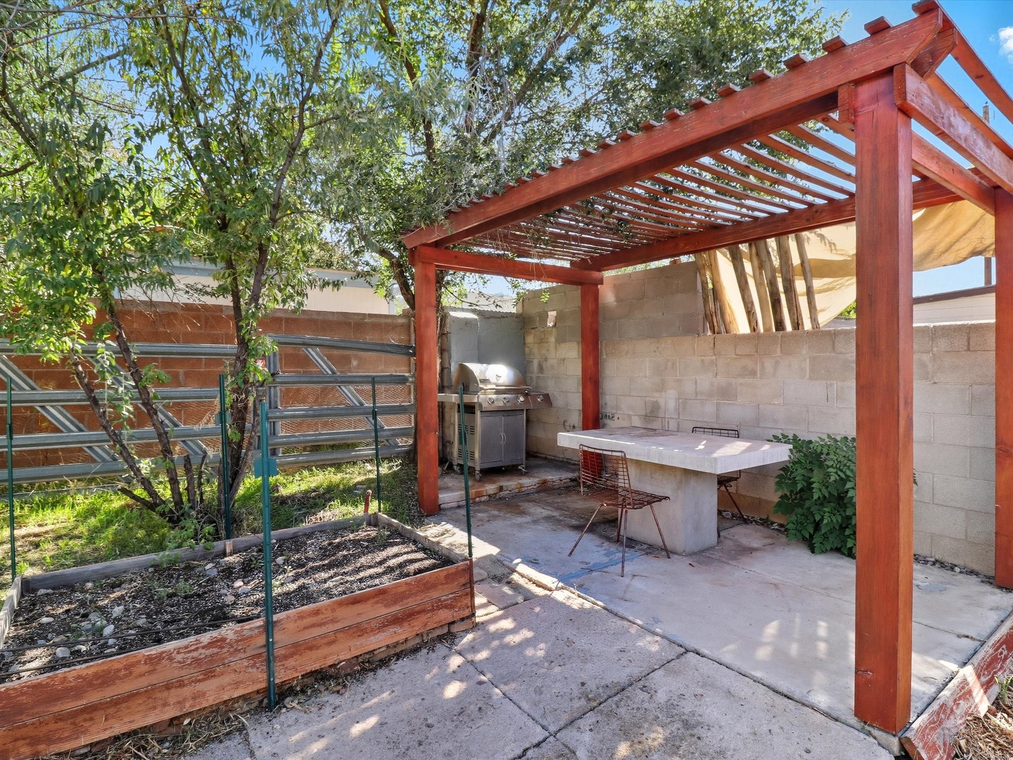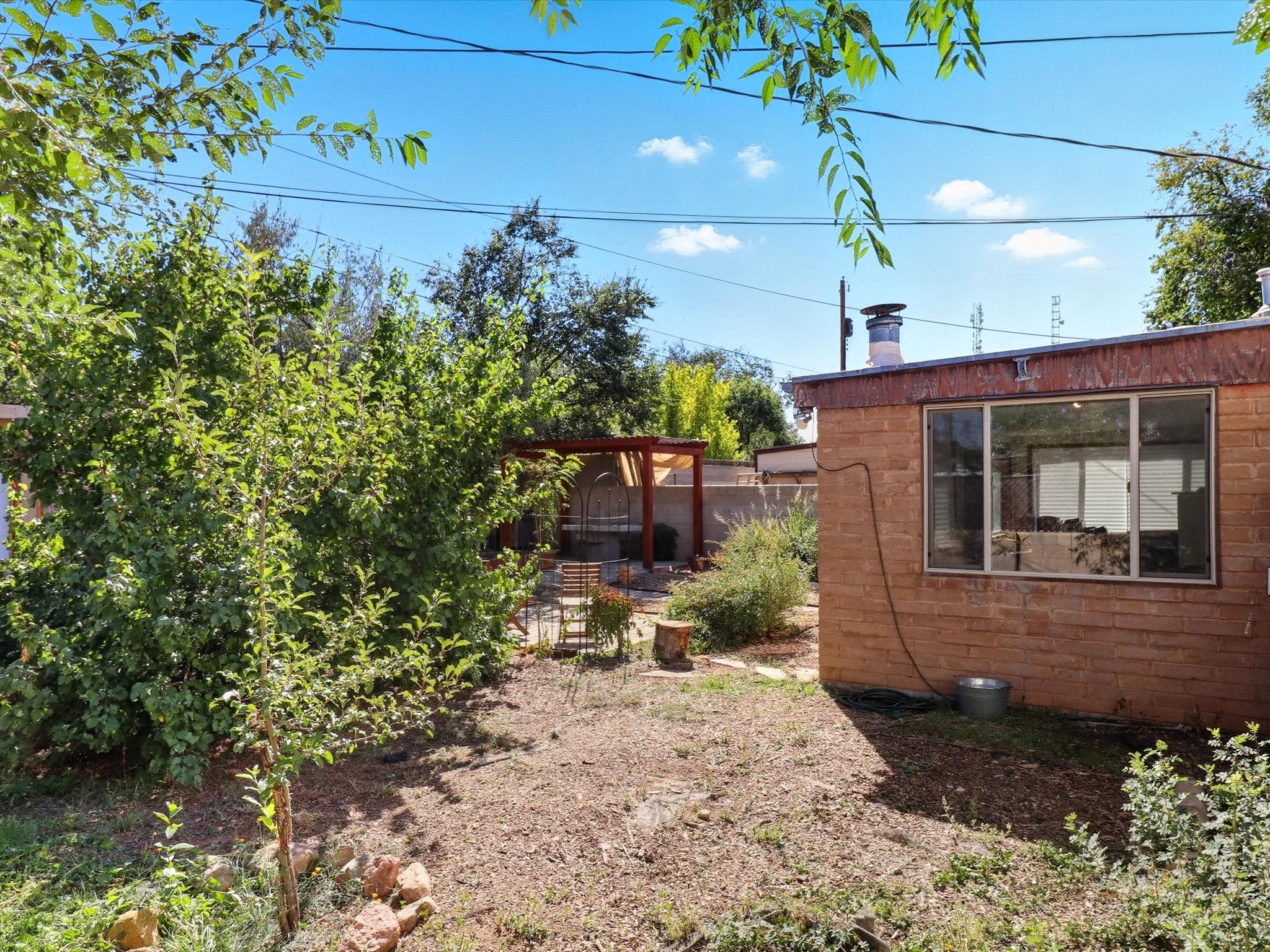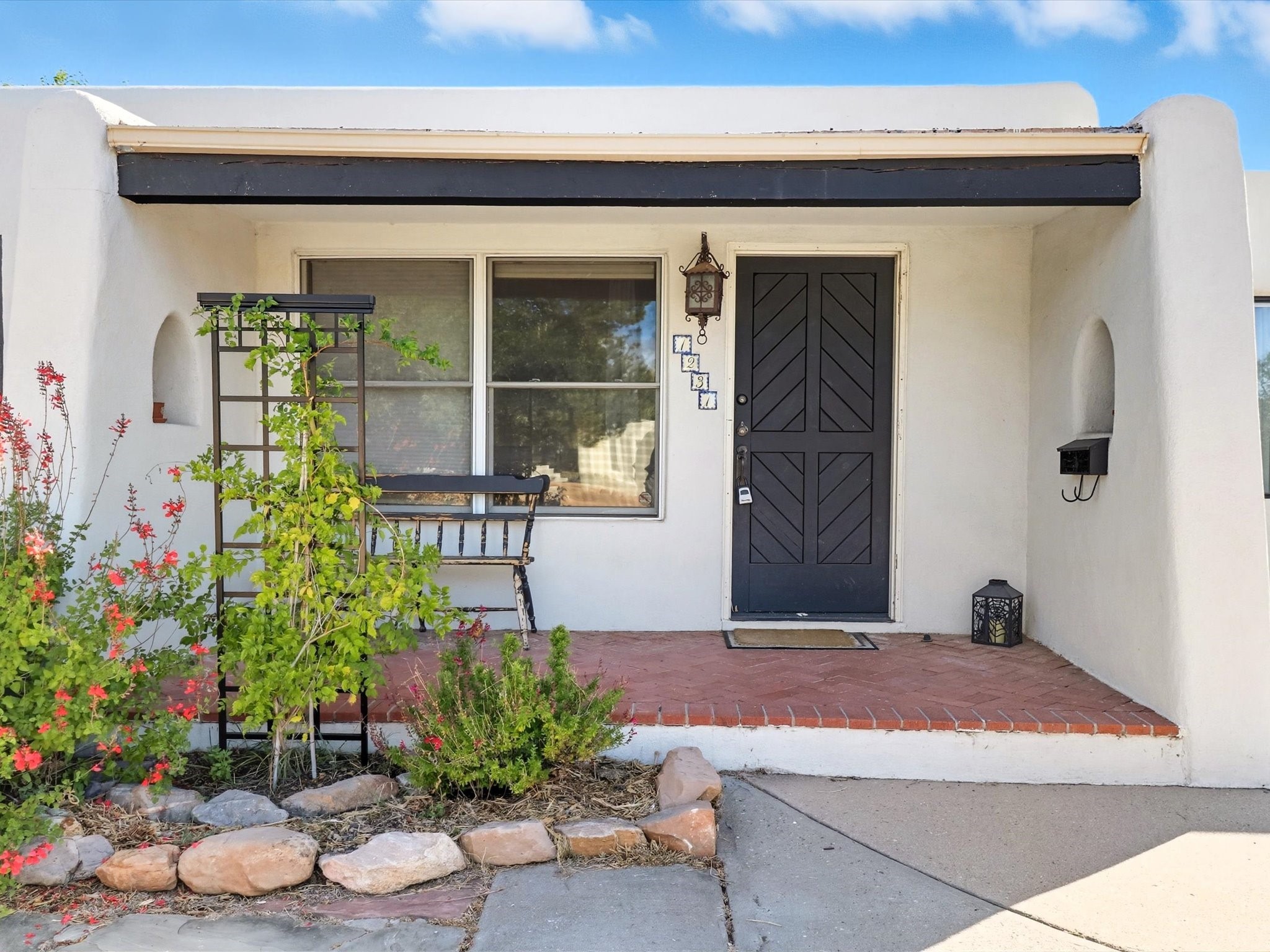 Located in the desirable Casa Alegre neighborhood, this cozy single-level 2-bedroom, 1-bathroom home seamlessly blends classic Santa Fe style with modern updates, including a recent electrical upgrade and timeless wood floors throughout. An inviting and spacious sunroom offers a light-filled retreat, while the converted one-car garage provides flexible bonus space, perfect for a home office, studio, or extra storage. Step outside to a private backyard featuring a beautiful gazebo, ideal for outdoor entertaining and relaxation, complemented by a low-maintenance flagstone front yard that adds to its undeniable curb appeal.