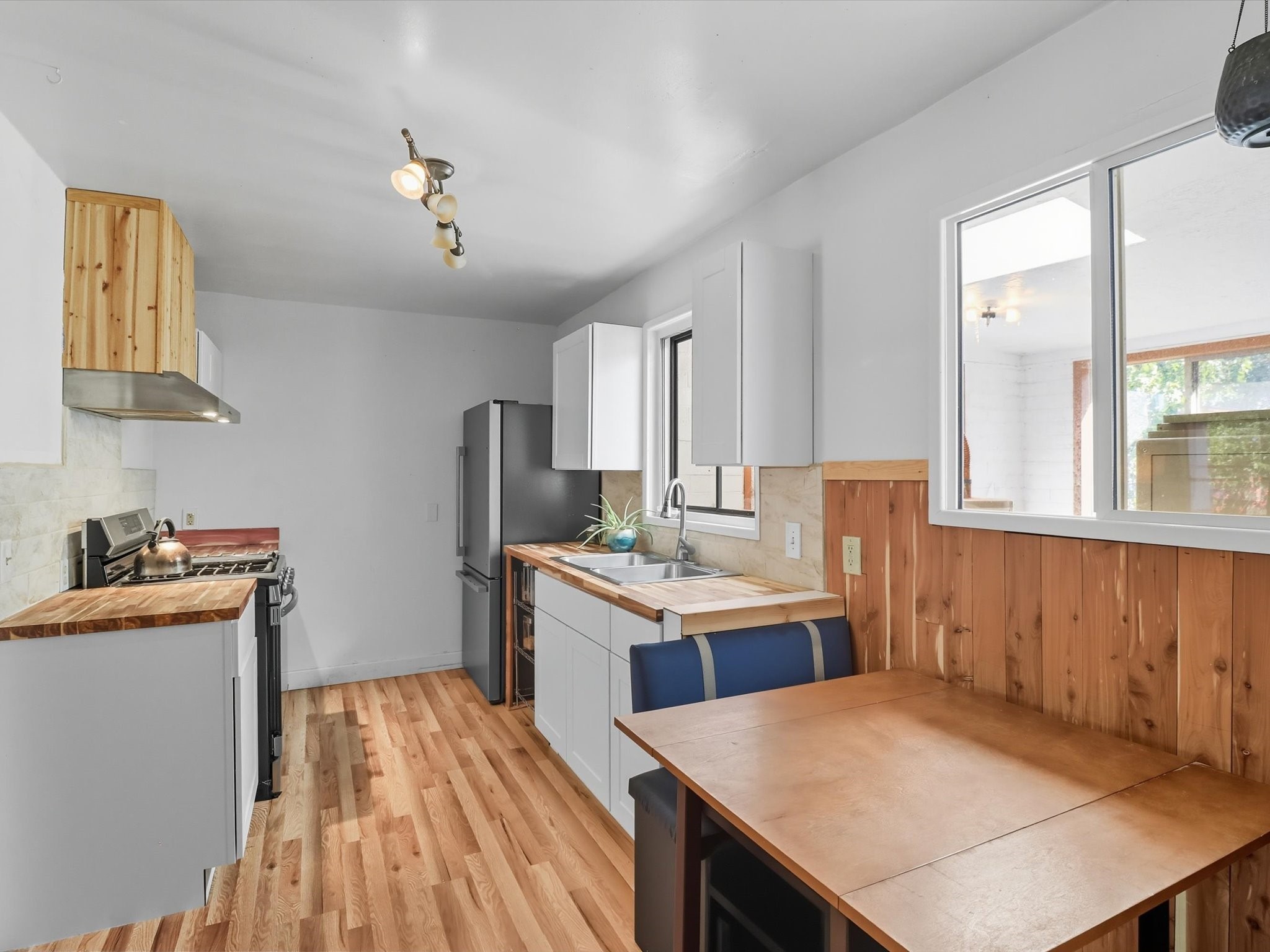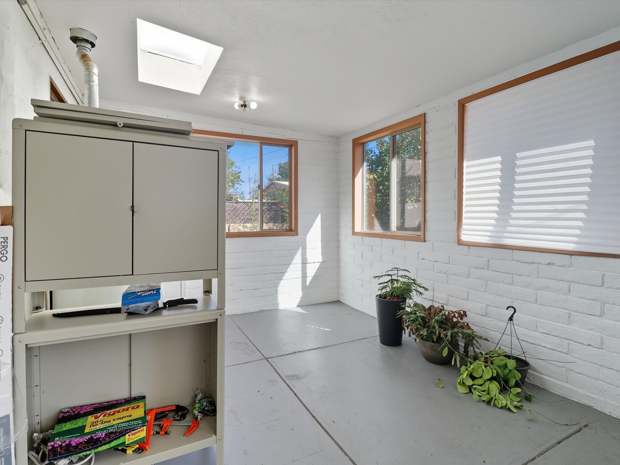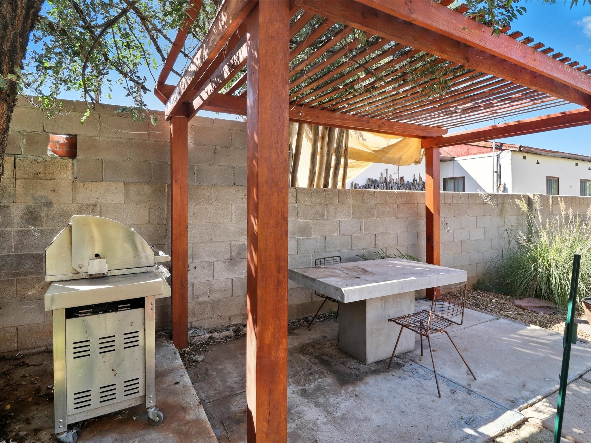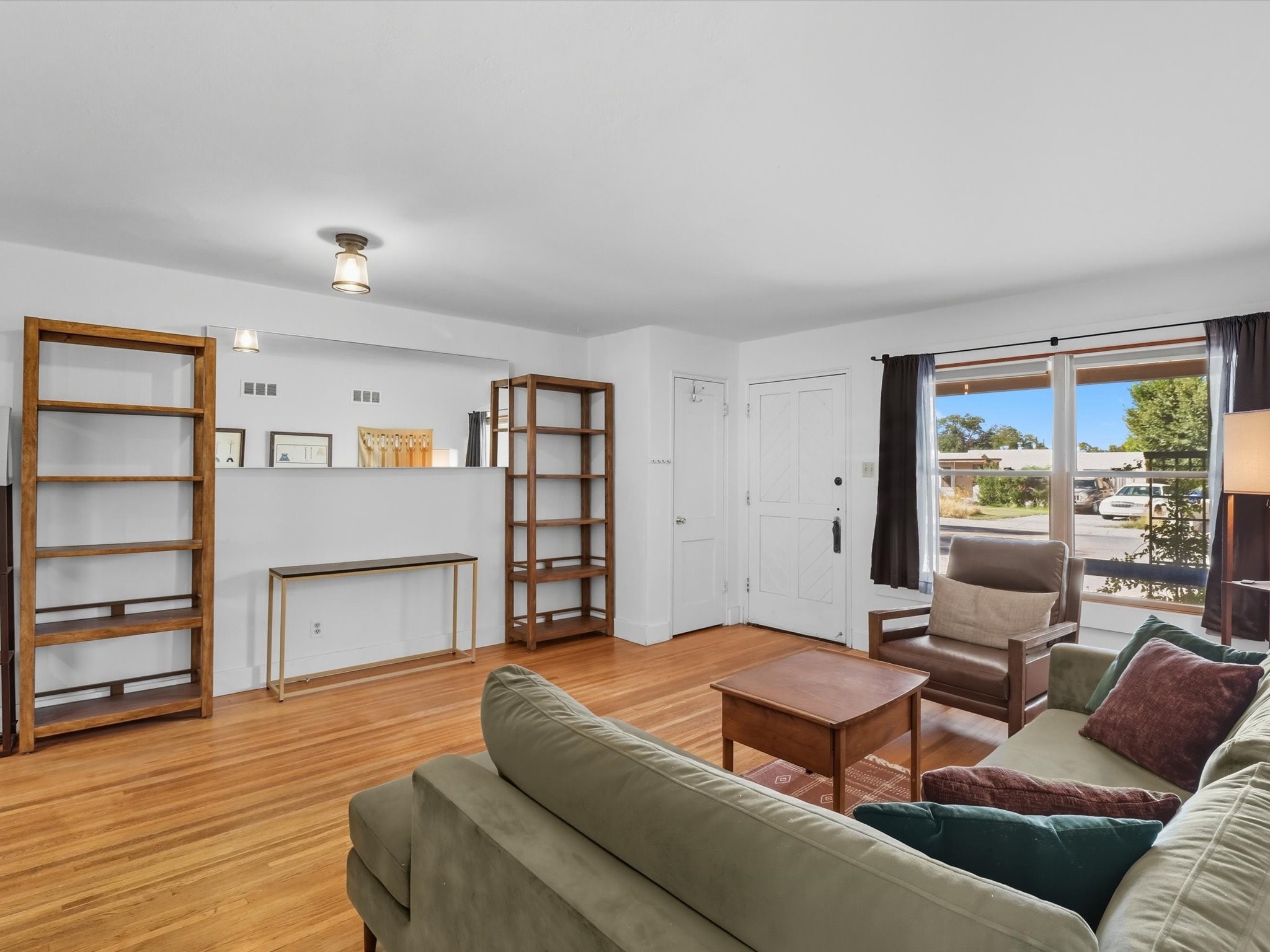Located in the desirable Casa Alegre neighborhood, this cozy single-level 2-bedroom, 1-bathroom home seamlessly blends classic Santa Fe style with modern updates, including a recent electrical upgrade and timeless wood floors throughout. An inviting and spacious sunroom offers a light-filled retreat, while the converted one-car garage provides flexible bonus space, perfect for a home office, studio, or extra storage. Step outside to a private backyard featuring a beautiful gazebo, ideal for outdoor entertaining and relaxation, complemented by a low-maintenance flagstone front yard that adds to its undeniable curb appeal.