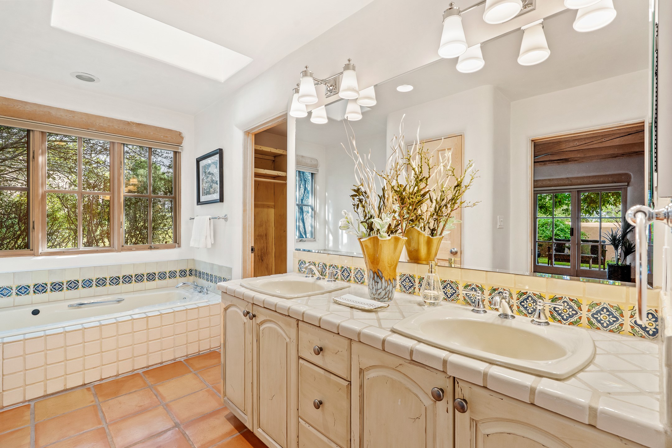 This beautifully updated Pion floor plan condo located in Pion Ridge at Quail Run offers exceptional comfort, design, and access to resort-style amenities. The home features two full primary suites on the main level, plus a third bedroom or office, with a fourth bedroom upstairs--perfect for guests or a second workspace. Nearly all daily living can be enjoyed on the main floor. The renovated kitchen showcases custom cabinetry, a new center island, Neolith countertops, and premium Sub-Zero and Wolf appliances. Bathrooms have been tastefully updated, including a luxurious primary bath with a rain shower and hand-held sprays. Both primary closets include custom built-ins and generous storage. Additional highlights include diamond plaster walls, enhanced art lighting, ductless A/C, and refreshed landscaping. Residents enjoy exclusive access to Quail Run's resort-style amenities, including a clubhouse with dining, fitness center, golf course, tennis courts, swimming pool, and 24-hour security. The HOA covers exterior maintenance, roof, and more, offering peace of mind and effortless living. Situated on a quiet cul-de-sac, this move-in-ready home embodies the best of Santa Fe comfort and style. Imagine the Possibilities and schedule the showing today!