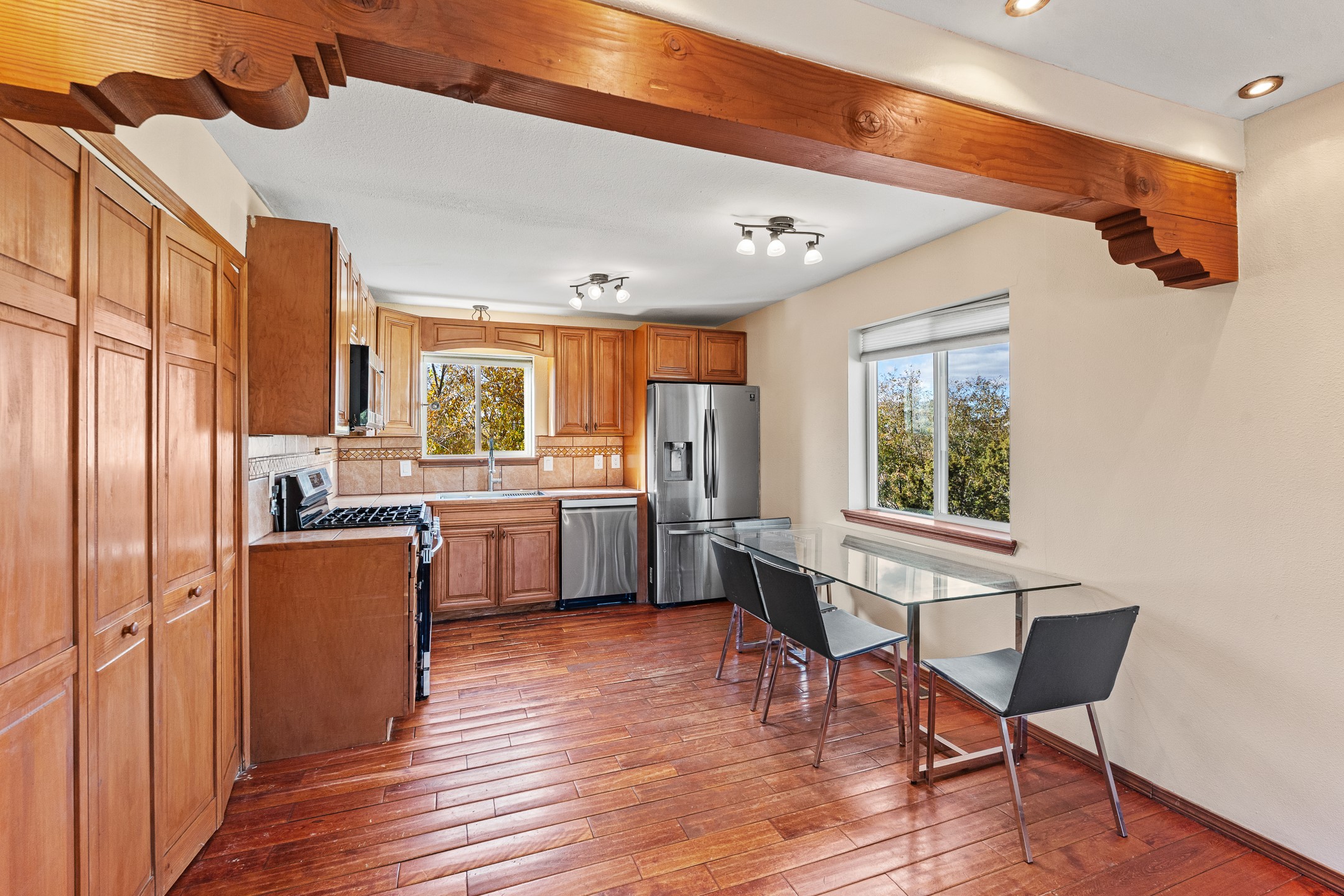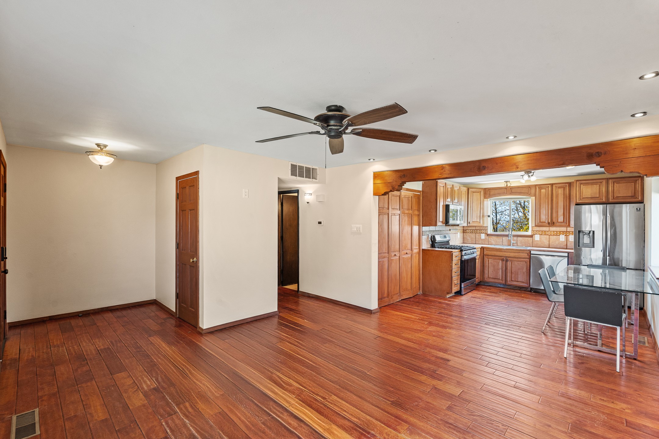 This spacious home offers versatile living across two levels, featuring beautiful and well-maintained outdoor spaces. The main entry level features a bedroom, two bathrooms, a Kitchen, and laundry. New heater as of November 2025! The lower level features three additional bedrooms. From the upper level, enjoy sweeping views, while the landscaped yard provides the perfect setting for relaxation or entertaining.