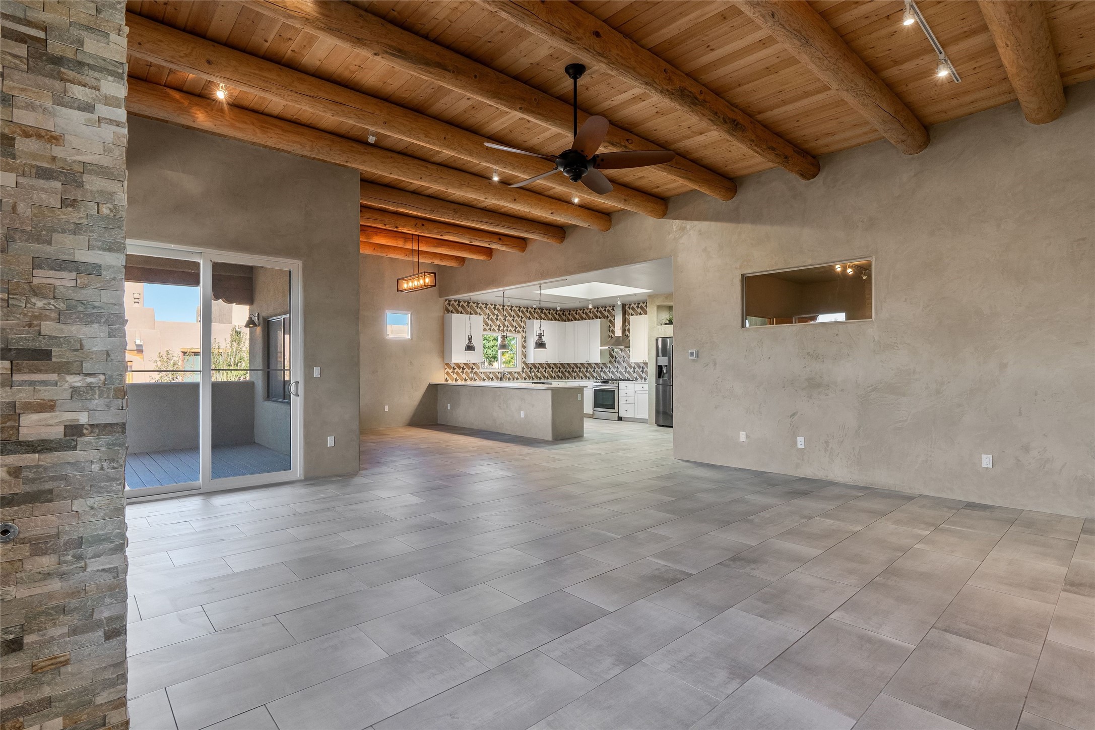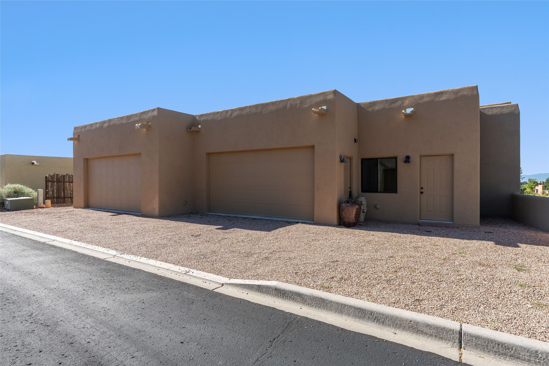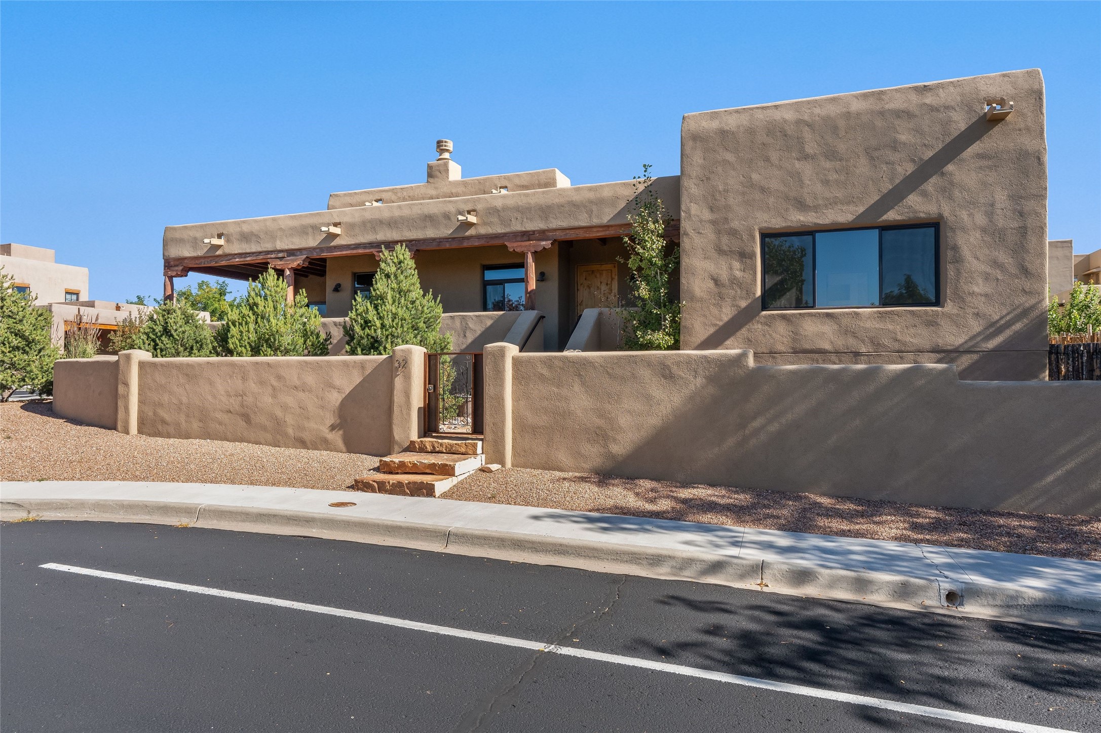 Sophistication meets Santa Fe charm at 32 Calle Lemita, an elegant residence in the coveted Aldea de Santa Fe community. This 3-bed, 3-bath home offers refined living on a 0.16-acre lot with stunning natural light and partial sunset views. The open, airy floor plan highlights soaring ceilings, rich finishes, and seamless flow between living, dining, and kitchen--perfect for stylish entertaining. The expansive living room offers a stacked stone fireplace, high ceilings and traditional Vigas. Plaster walls throughout the main living area. The chef's kitchen boasts premium cabinetry with soft close drawers, generous counter space with quartz countertops, designer tile backsplash and high-end stainless steel appliances. Massive pantry/storage room off the kitchen. The luxurious primary suite offers a spa-inspired bath, one of the most custom walk-in closets you will ever view, plus separate shower and jacuzzi tub. Two additional oversized bedrooms provide versatility for guests or a home office. Laundry room with sink and built-in cabinetry. Whole house radiant cooling/heating system. Adjacent to the heated/cooled 4 car garage is a flex room, perfect for a home gym or studio space. Outdoor living shines with a private enclosed courtyard and elevated patio designed to capture Santa Fe's dramatic sunsets. Lots of wonderful upgrades, such as LED recessed lights, floor to ceiling tile in multiple bathrooms, carved stone sinks and much more. Located approximately 20 minutes from the historic Santa Fe plaza, Aldea de Santa Fe offers exclusive amenities including walking trails, pickleball/tennis/basketball, community gathering spaces, and easy access to fine dining, galleries, and world-class cultural events. This property is ideal as a sophisticated full-time residence or lock-and-leave retreat for discerning buyers seeking style, privacy, and connection to Santa Fe's vibrant lifestyle.