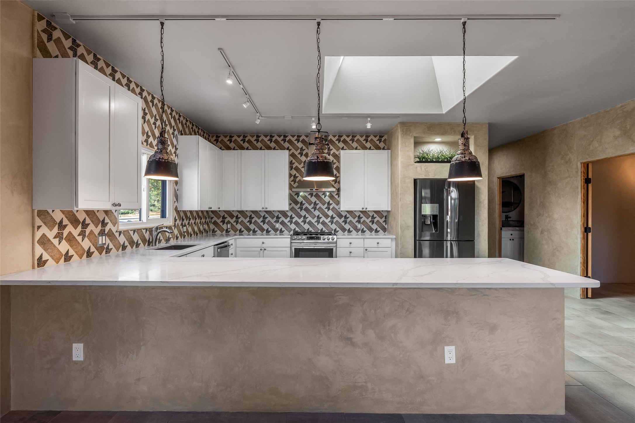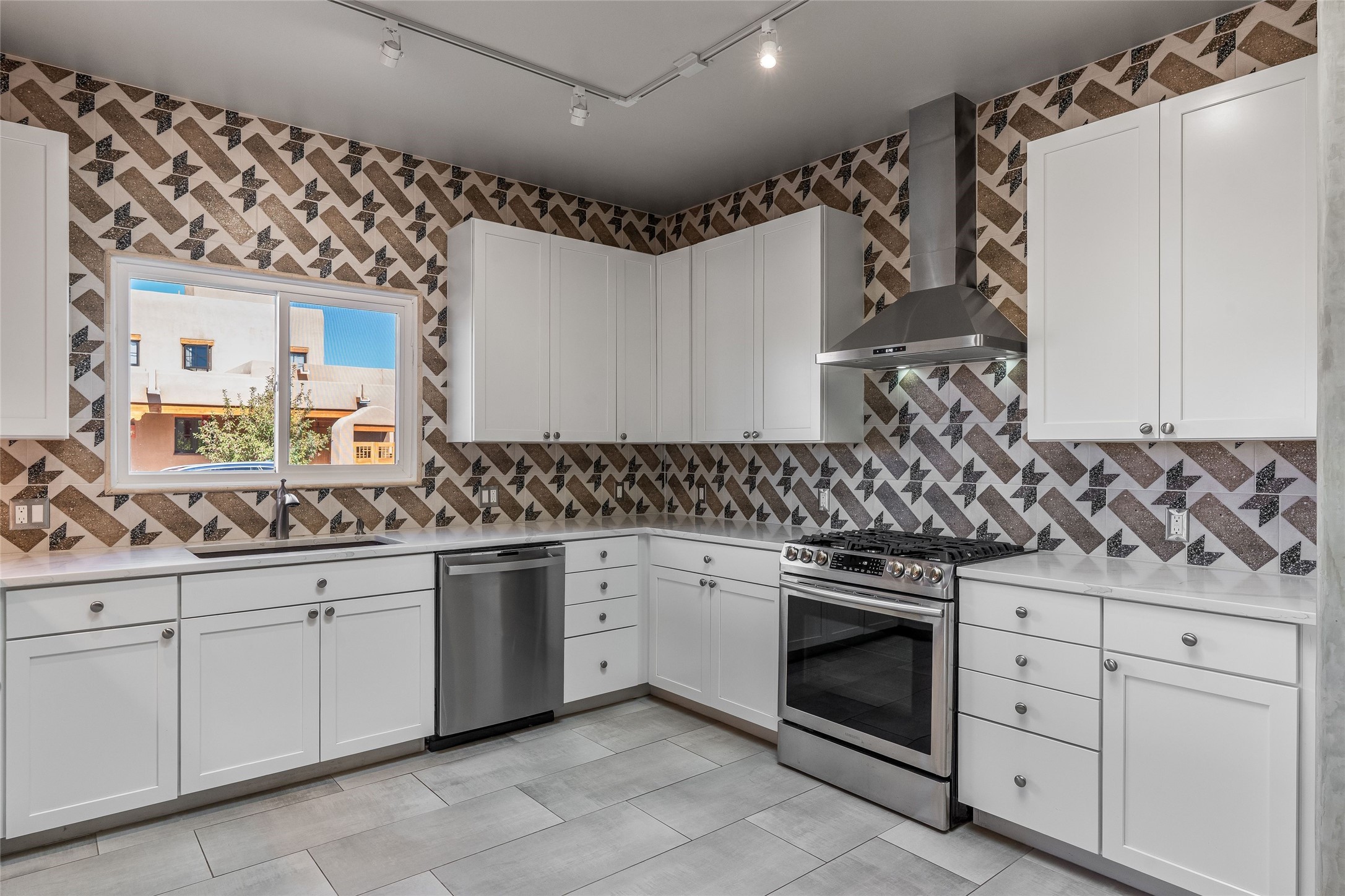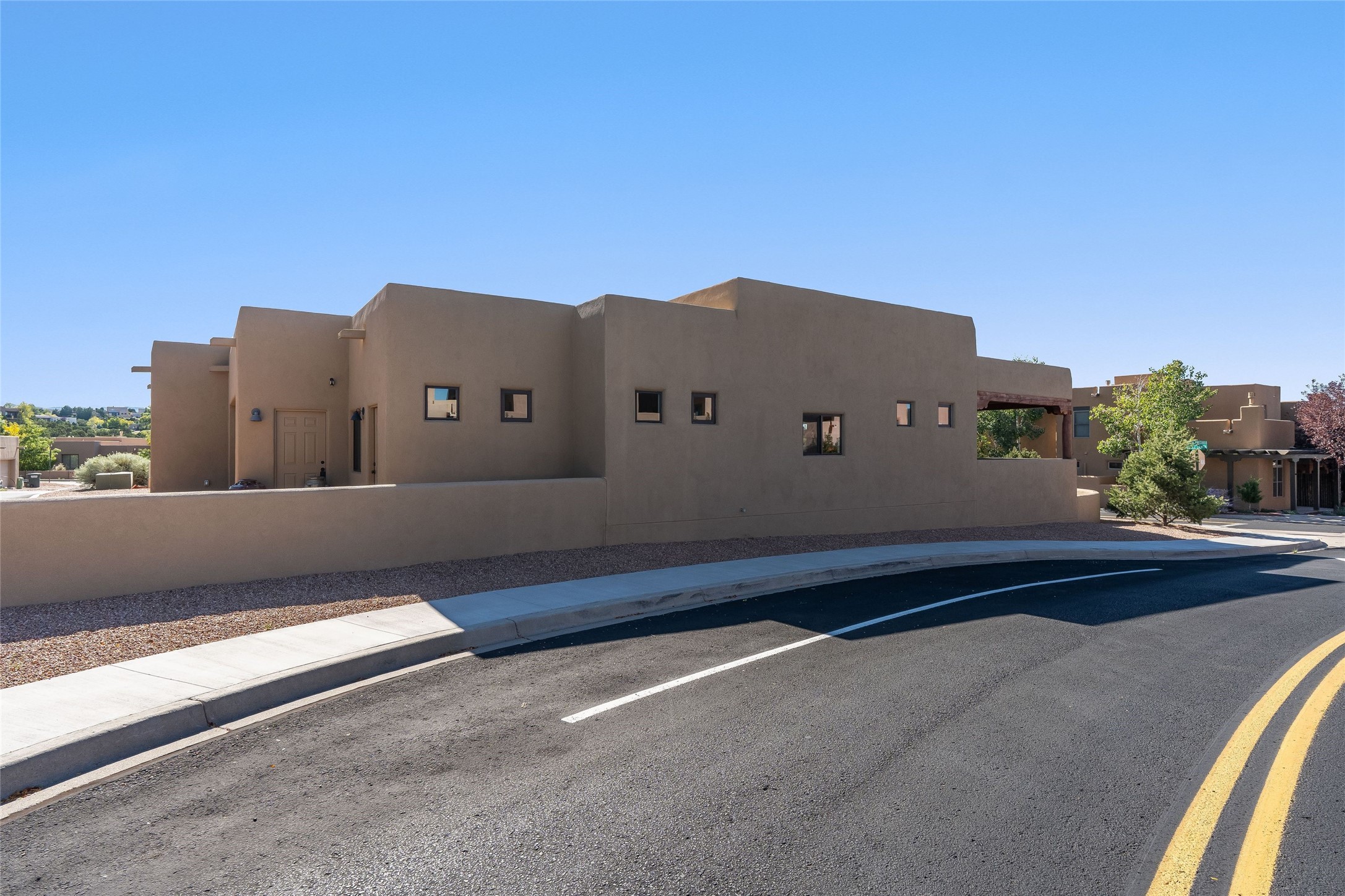 Sophistication meets Santa Fe charm at 32 Calle Lemita, an elegant residence in the coveted Aldea de Santa Fe community. This 3-bed, 3-bath home offers refined living on a 0.16-acre lot with stunning natural light and partial sunset views. The open, airy floor plan highlights soaring ceilings, rich finishes, and seamless flow between living, dining, and kitchen--perfect for stylish entertaining. The expansive living room offers a stacked stone fireplace, high ceilings and traditional Vigas. Plaster walls throughout the main living area. The chef's kitchen boasts premium cabinetry with soft close drawers, generous counter space with quartz countertops, designer tile backsplash and high-end stainless steel appliances. Massive pantry/storage room off the kitchen. The luxurious primary suite offers a spa-inspired bath, one of the most custom walk-in closets you will ever view, plus separate shower and jacuzzi tub. Two additional oversized bedrooms provide versatility for guests or a home office. Laundry room with sink and built-in cabinetry. Whole house radiant cooling/heating system. Adjacent to the heated/cooled 4 car garage is a flex room, perfect for a home gym or studio space. Outdoor living shines with a private enclosed courtyard and elevated patio designed to capture Santa Fe's dramatic sunsets. Lots of wonderful upgrades, such as LED recessed lights, floor to ceiling tile in multiple bathrooms, carved stone sinks and much more. Located approximately 20 minutes from the historic Santa Fe plaza, Aldea de Santa Fe offers exclusive amenities including walking trails, pickleball/tennis/basketball, community gathering spaces, and easy access to fine dining, galleries, and world-class cultural events. This property is ideal as a sophisticated full-time residence or lock-and-leave retreat for discerning buyers seeking style, privacy, and connection to Santa Fe's vibrant lifestyle.