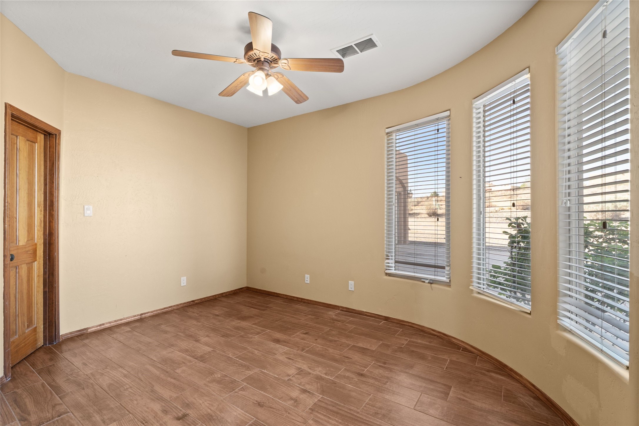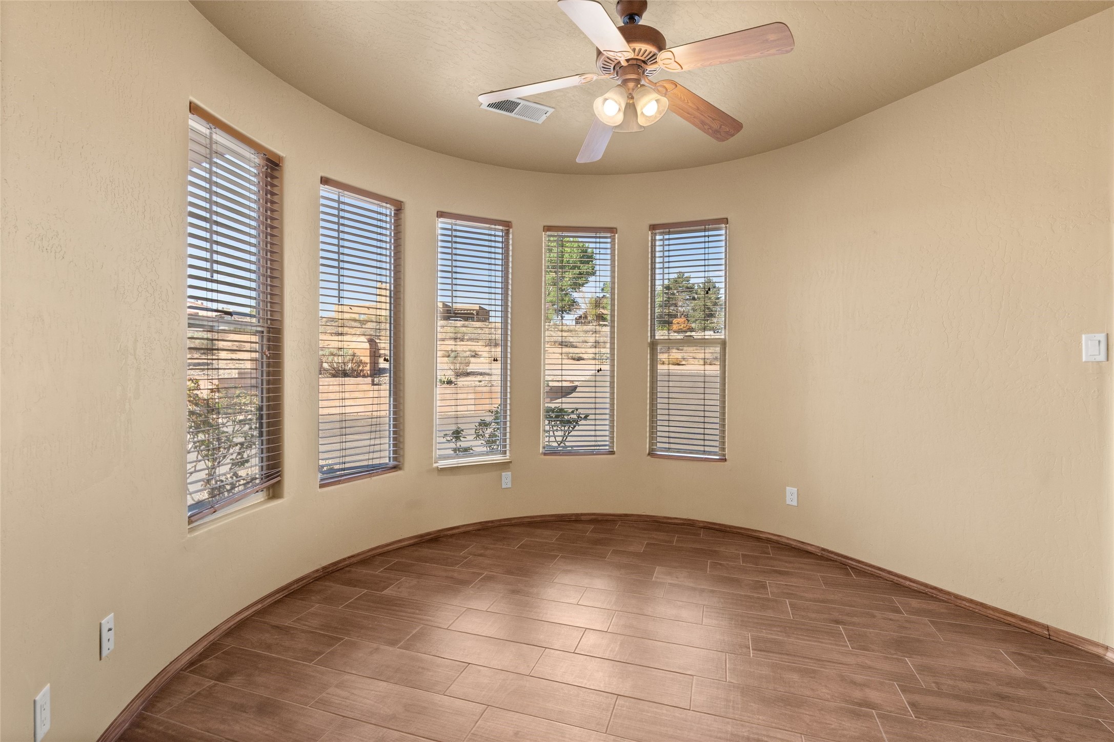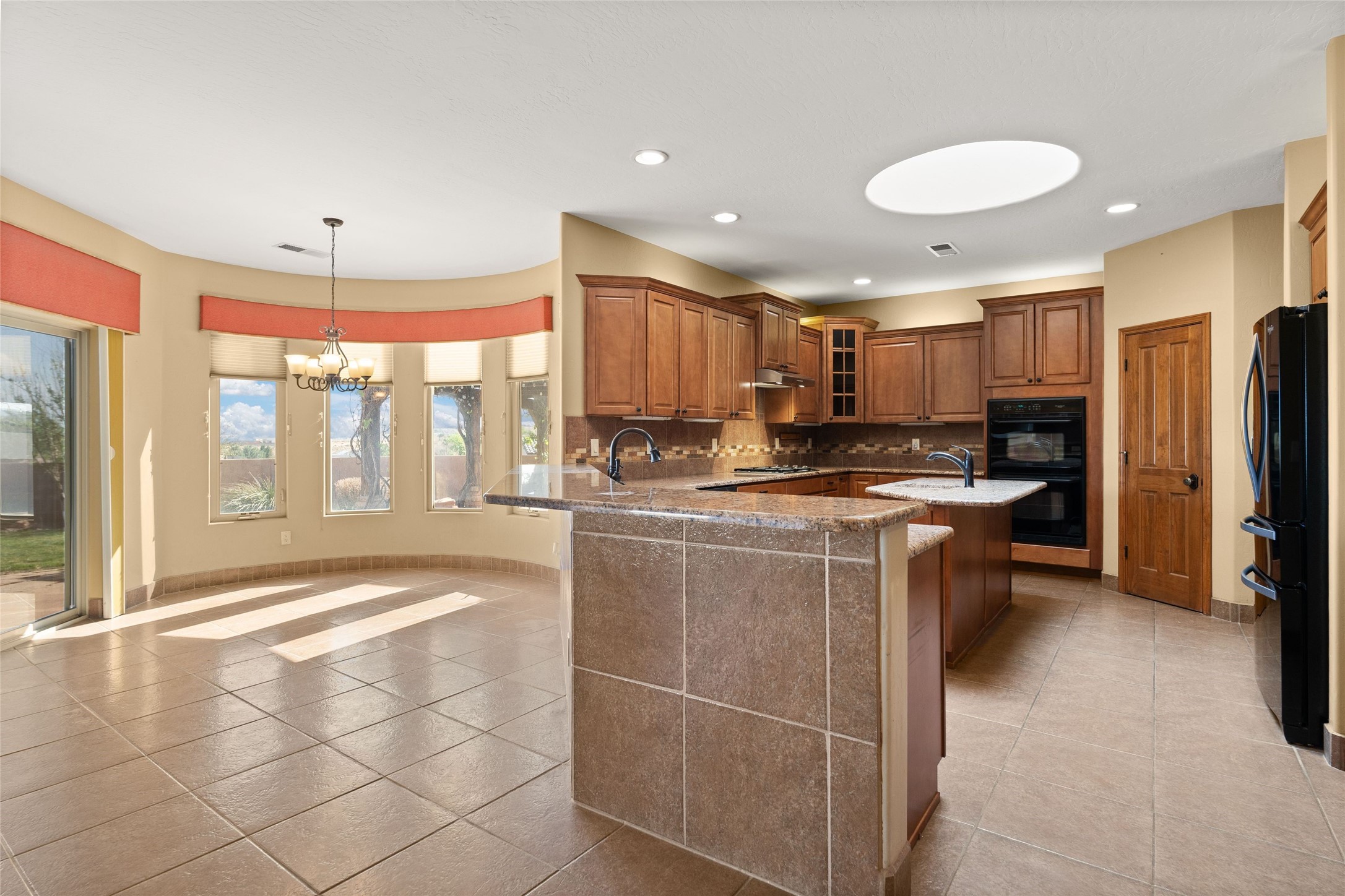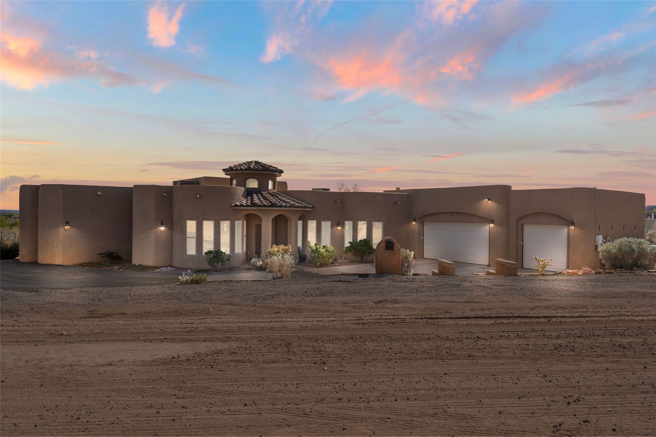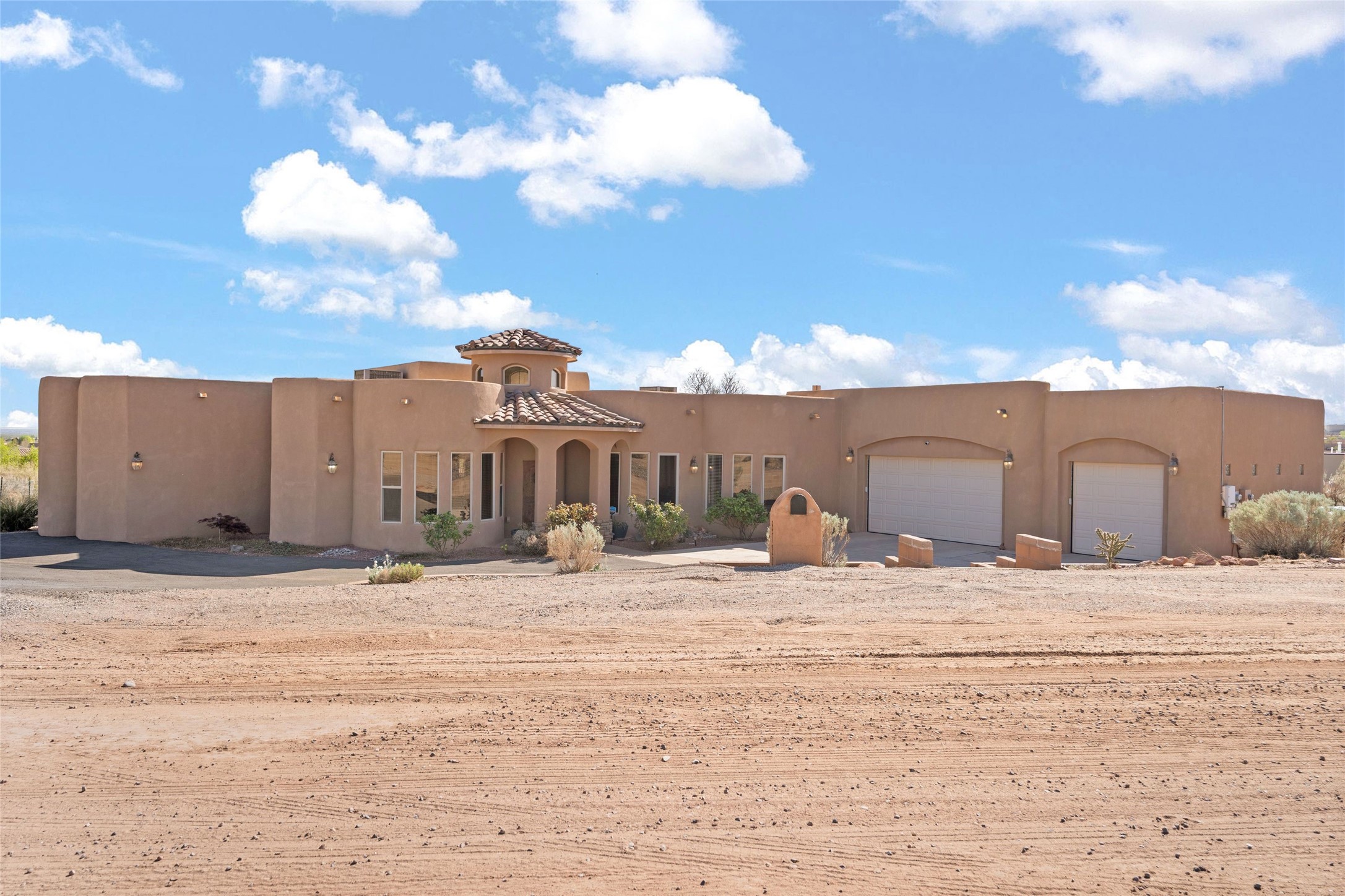 Seller owned solar and a private well! Enjoy the space without the high costs. Nestled on a lush and generous .52-acre lot in Rio Rancho, this property delivers expansive indoor-outdoor living, and countless features including a separate living area/casita. The home includes an oversized 3-car garage (1,488 SF) with extended depth, a dedicated hobby/game room, a 10x15 woodworking space, and a separate storage shed -- perfect for every project or pastime. The main house is designed with community and comfort in mind. The chef's kitchen boasts a gas cooktop, double convection ovens, dual sinks, a walk-in pantry, and flows effortlessly into the dining and living areas -- perfect for entertaining.A stacked stone custom gas log fireplace with banco seating adds cozy ambiance. The primary suite features southern views and private access to the extended covered back patio, a snail shower, garden tub, dual sinks, and a walk-in closet. Three additional bedrooms and two bathrooms provide ample room for children, guests, or office space.18-panel owned solar system installed in 2016. A central vacuum system adds further convenience. A standout feature is the spacious attached 800 SF casita, offering a full kitchen, living room, walk-in closet, and ensuite bathroom with linen storage. All on one level with no carpet, this private space is ideal for in-laws, guests, or even potential rental income.Outdoors, create unforgettable memories in the pergola-covered patio wrapped in grapevines, with a custom wood-burning fireplace and banco seating -- ideal for BBQs, al fresco dinners, and relaxing evenings. The property's mature vineyard includes Cabernet Sauvignon, Chardonnay, and more. Owners and past owners have previously had local farmers care for the grapes in exchange for the fruit at harvest time making this lush landscaping easy to enjoy.Edible landscaping surrounds you with fruit trees and raised garden beds for vegetables and herbs. New roof (2019).