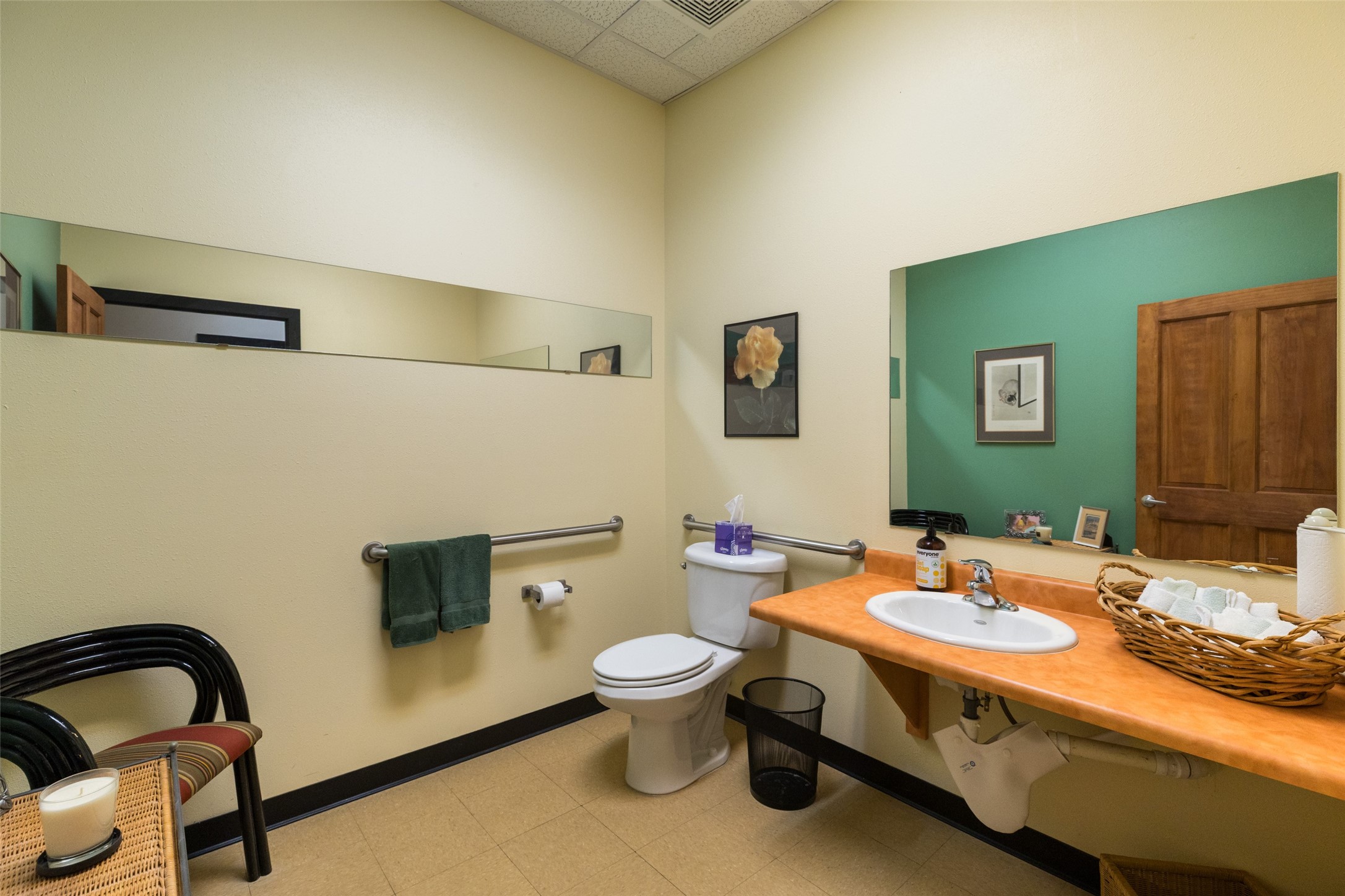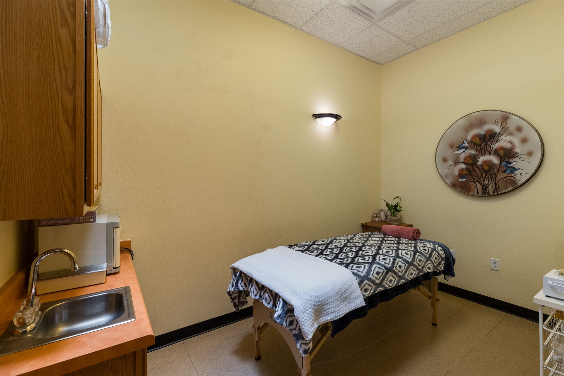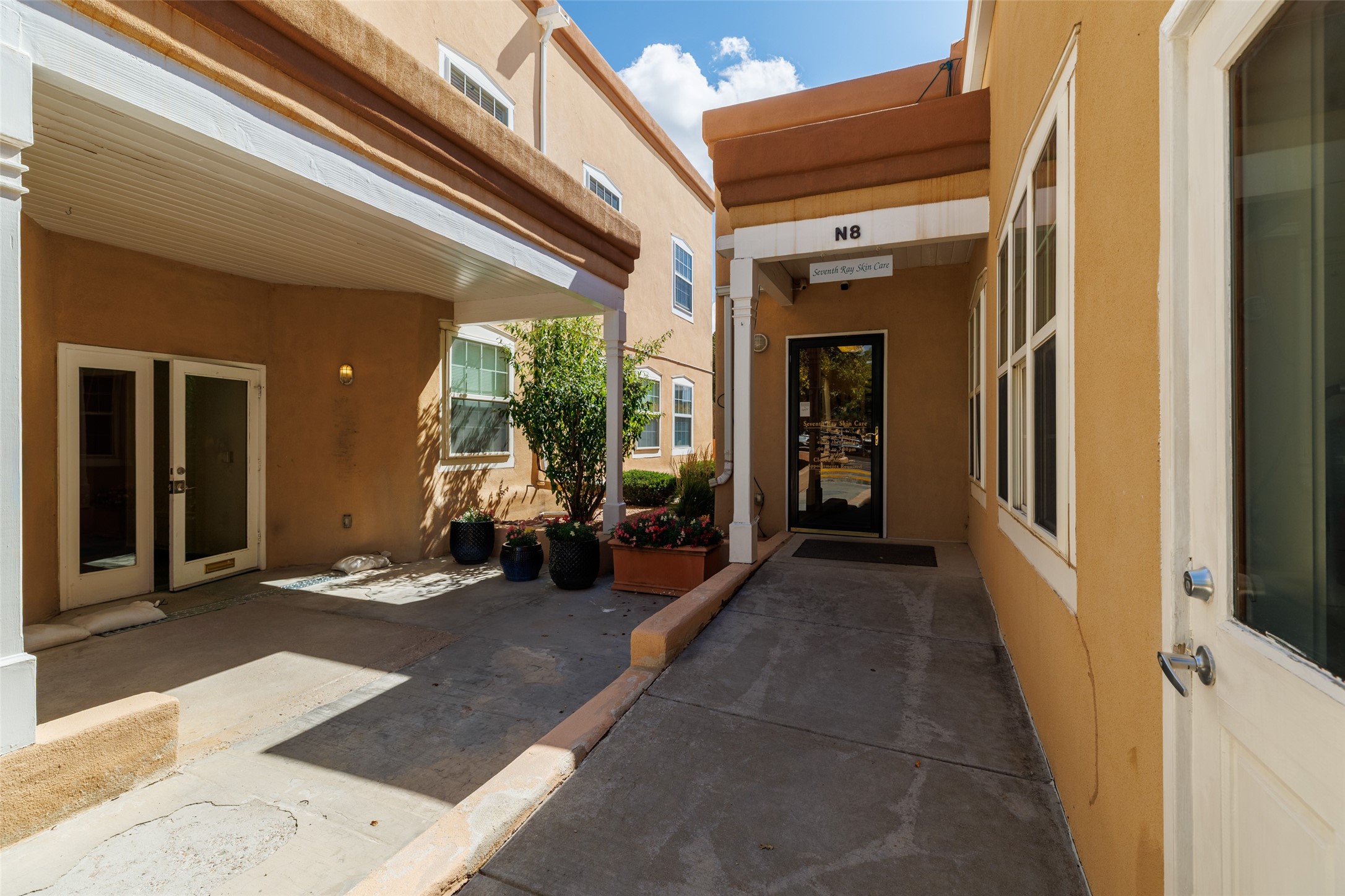 Set within the Galisteo Center Condominium development, this single owner commercial space is highly versatile. This professional development offers ample parking, ADA access, and green space, making for a tranquil setting that is both convenient and inviting. The 1,223-square-foot office features a welcoming reception area that includes a tiled entry, high ceilings, and a custom built desk. A central hallway leads to five rooms (four of those rooms are plumbed with built in cabinetry and sinks) that can serve as offices, treatment rooms, storage, and/or a lab. Further enhancing the appeal are 2 ADA bathrooms, washer and dryer hookups, a regularly maintained HVAC system for heating and cooling, a newly installed roofing system (c. 2022), and a newer water heater. Exterior maintenance is handled by the COA ($285/mo, paid quarterly), making upkeep a breeze. Located in the heart of the health & wellness corridor of St. Michaels Drive, this office is near major hospitals, other business parks, amenities, and major transportation lines. Whether you're a massage therapist, acupuncturist, aesthetician, or healthcare provider, this space is well-suited to support your entrepenuerial vision. Let your next business chapter begin here.