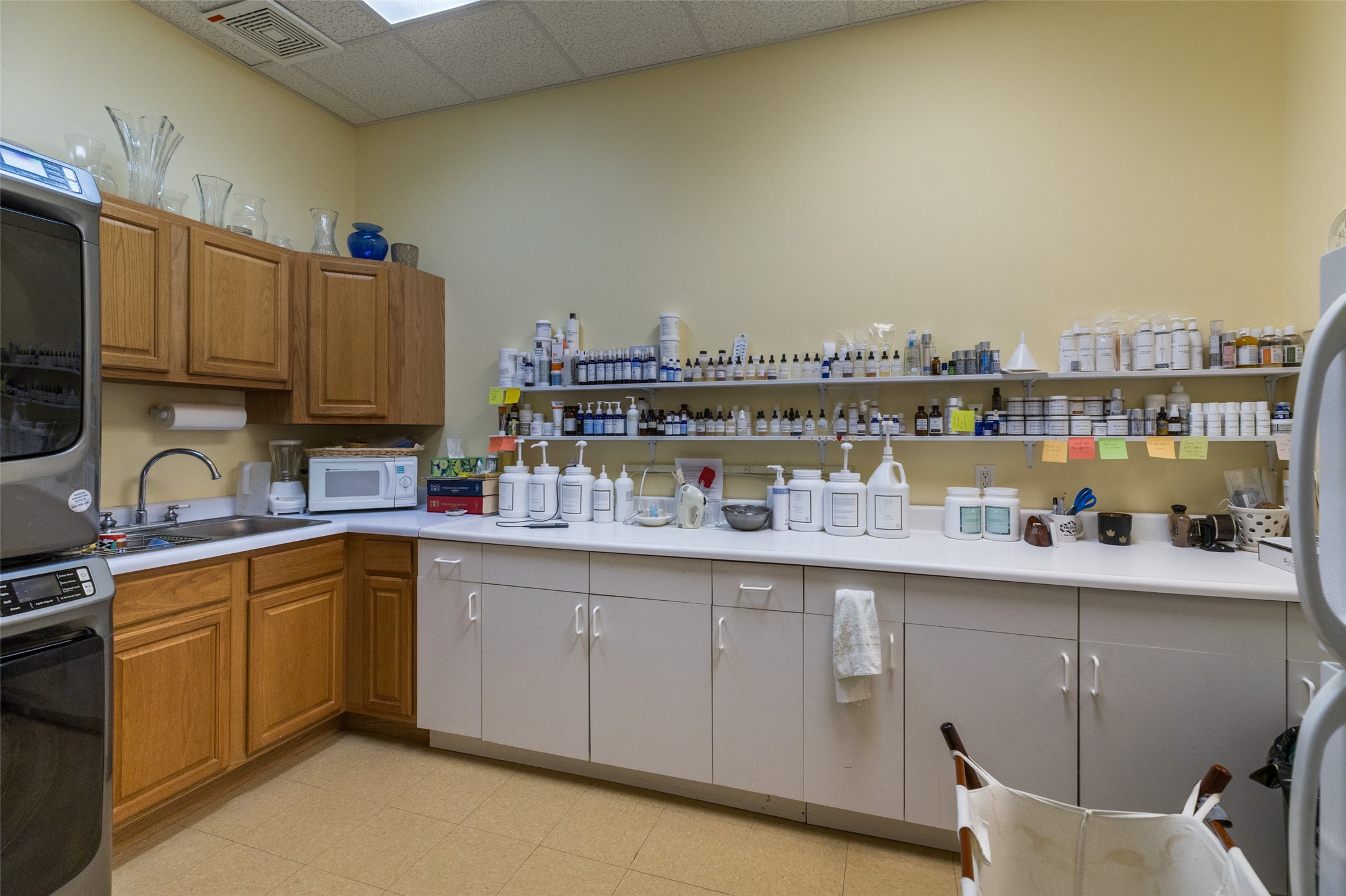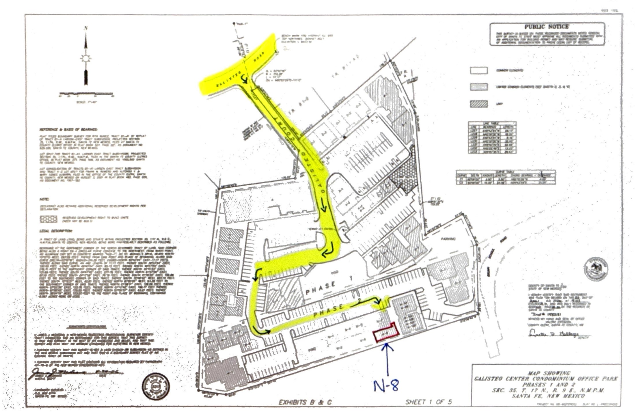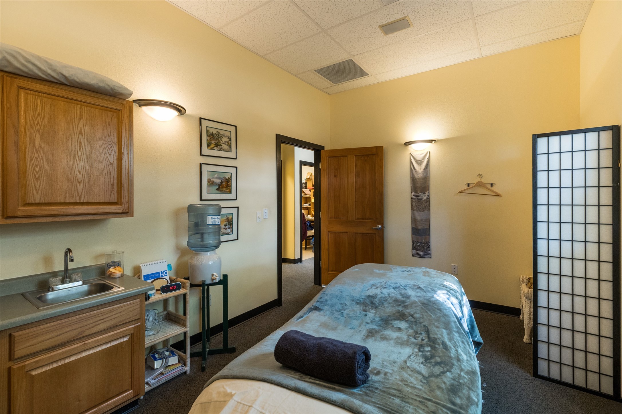 Set within the Galisteo Center Condominium development, this single owner commercial space is highly versatile. This professional development offers ample parking, ADA access, and green space, making for a tranquil setting that is both convenient and inviting. The 1,223-square-foot office features a welcoming reception area that includes a tiled entry, high ceilings, and a custom built desk. A central hallway leads to five rooms (four of those rooms are plumbed with built in cabinetry and sinks) that can serve as offices, treatment rooms, storage, and/or a lab. Further enhancing the appeal are 2 ADA bathrooms, washer and dryer hookups, a regularly maintained HVAC system for heating and cooling, a newly installed roofing system (c. 2022), and a newer water heater. Exterior maintenance is handled by the COA ($285/mo, paid quarterly), making upkeep a breeze. Located in the heart of the health & wellness corridor of St. Michaels Drive, this office is near major hospitals, other business parks, amenities, and major transportation lines. Whether you're a massage therapist, acupuncturist, aesthetician, or healthcare provider, this space is well-suited to support your entrepenuerial vision. Let your next business chapter begin here.