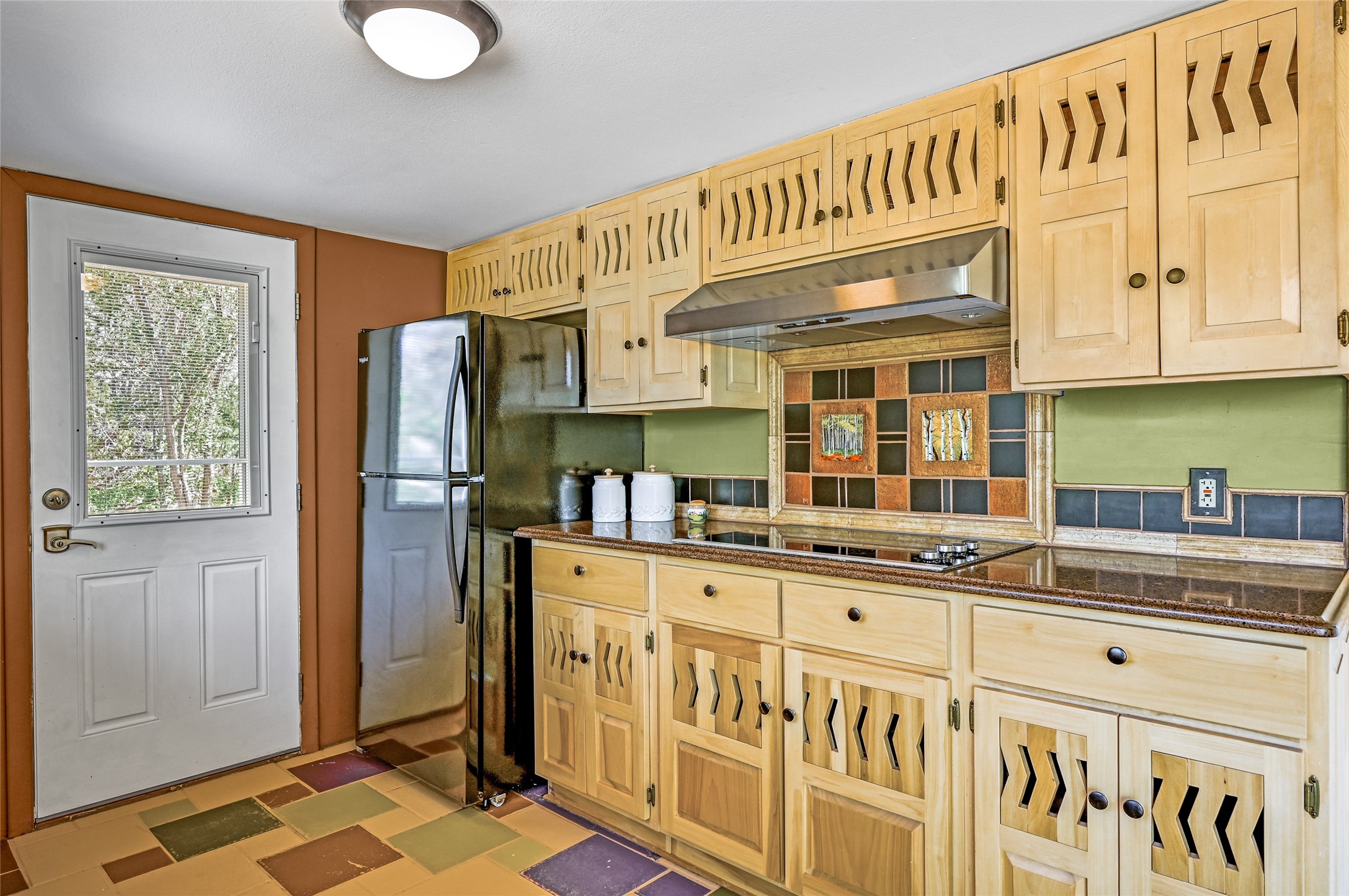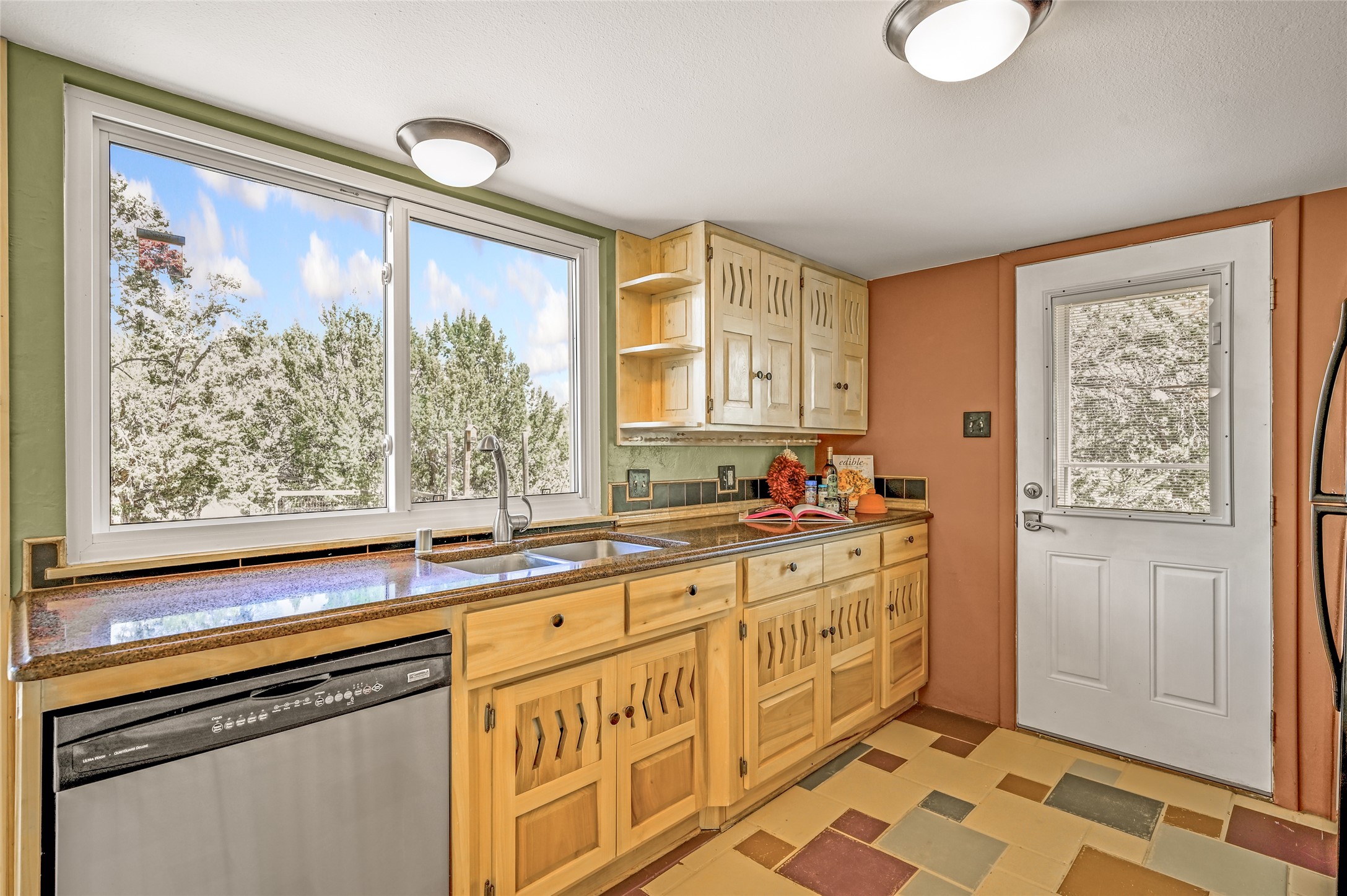 Privately located at the end of a cul de sac, this lovely home boasts tile flooring throughout. Kitchen cabinets, hallway linen closet and second bathroom cabinets are handcrafted and boast a simple and lovely southwest design. The kitchen features a handcrafted backsplash and multi-colored tile flooring that compliments the color palate of the kitchen. Quartz countertops and stainless steel appliance package. Both bathrooms feature new shower and tub surrounds and some new plumbing. The home has central air conditioning to keep things nice and cool in the warmer months. The back yard and patios enjoy views of the mountains to the west/north west. Completely re-stuccoed this past month and exterior woodwork refreshed. Spotless two car garage. Landscaping includes pergola entryway, organic apple and apricot trees and patios in the back yard area. This home was built and maintained as an enviromentally friendly home.