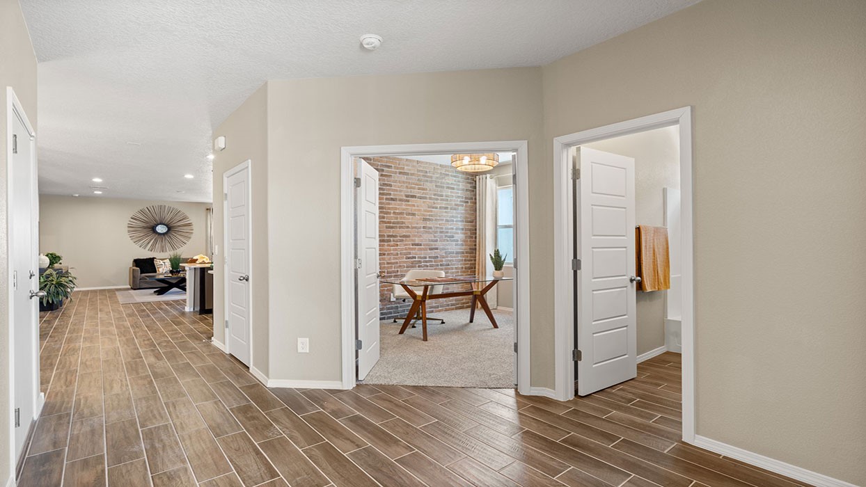 MODEL HOME FOR SALE: This beautifully designed 2,050 sq ft home offers a spacious and functional layout, featuring four bedrooms and three full bathrooms, making it perfect for families or those in need of extra space. The open-concept living area creates a welcoming atmosphere, with the living, dining, and kitchen spaces flowing seamlessly together, ideal for both daily living and entertaining. The kitchen is equipped with modern appliances, ample counter space, and plenty of storage, making meal preparation a breeze. The primary suite provides a tranquil retreat, complete with a walk-in closet and a private en-suite bathroom with separate tub and shower. Three additional bedrooms offer flexibility for family, guests, or a home office. A dedicated study is also included, offering a quiet space for work, study, or creative projects. The attached two-car garage provides convenient access and extra storage space. This home combines style, comfort, and practicality, making it the perfect choice for modern living. Landscaped front and back. Furnishings can be purchased with home sale at a separate cash transaction.