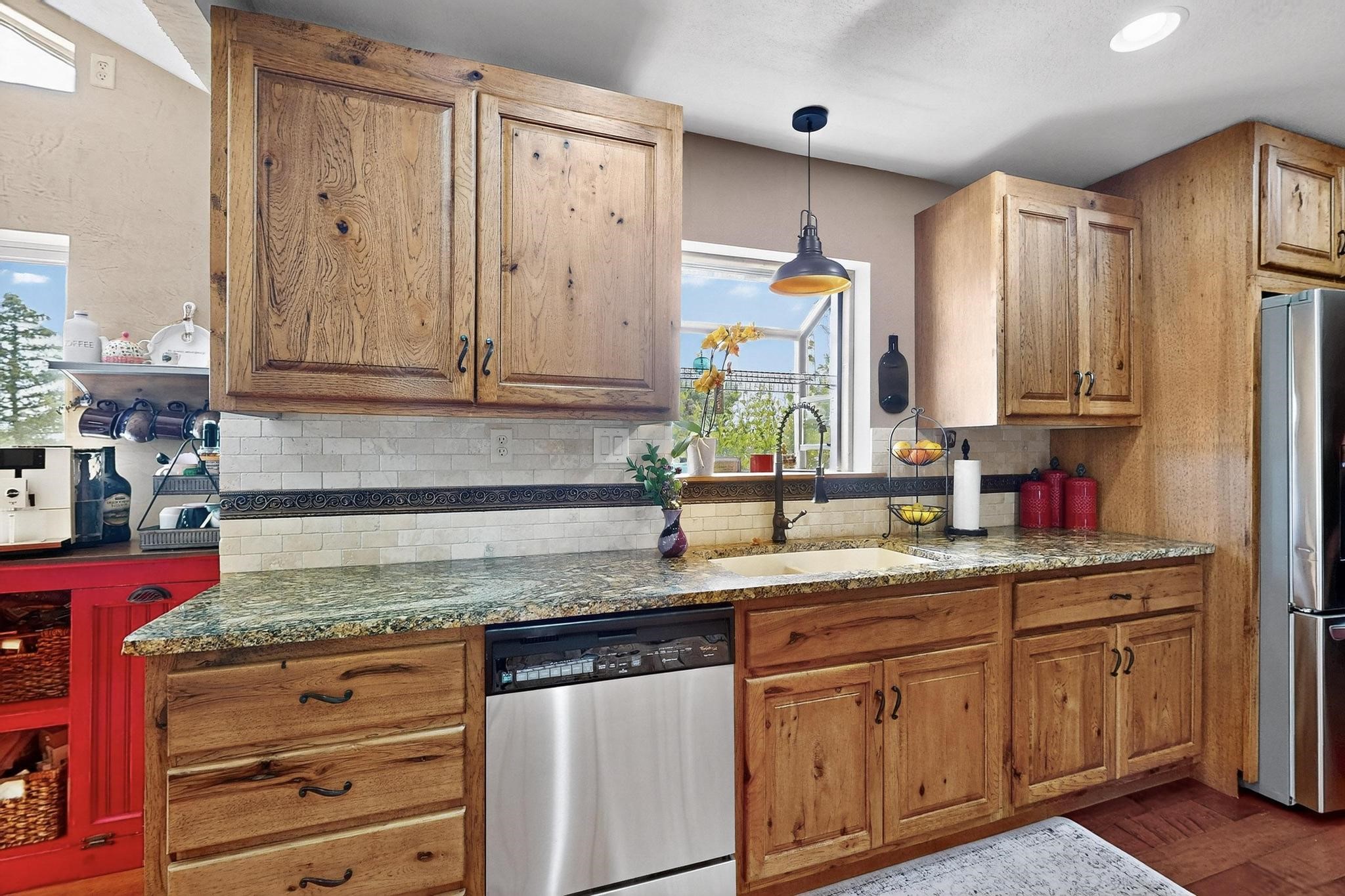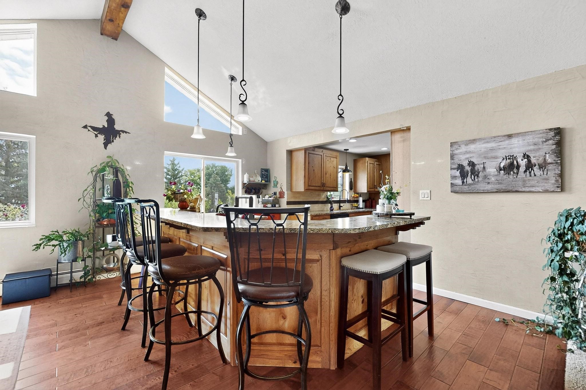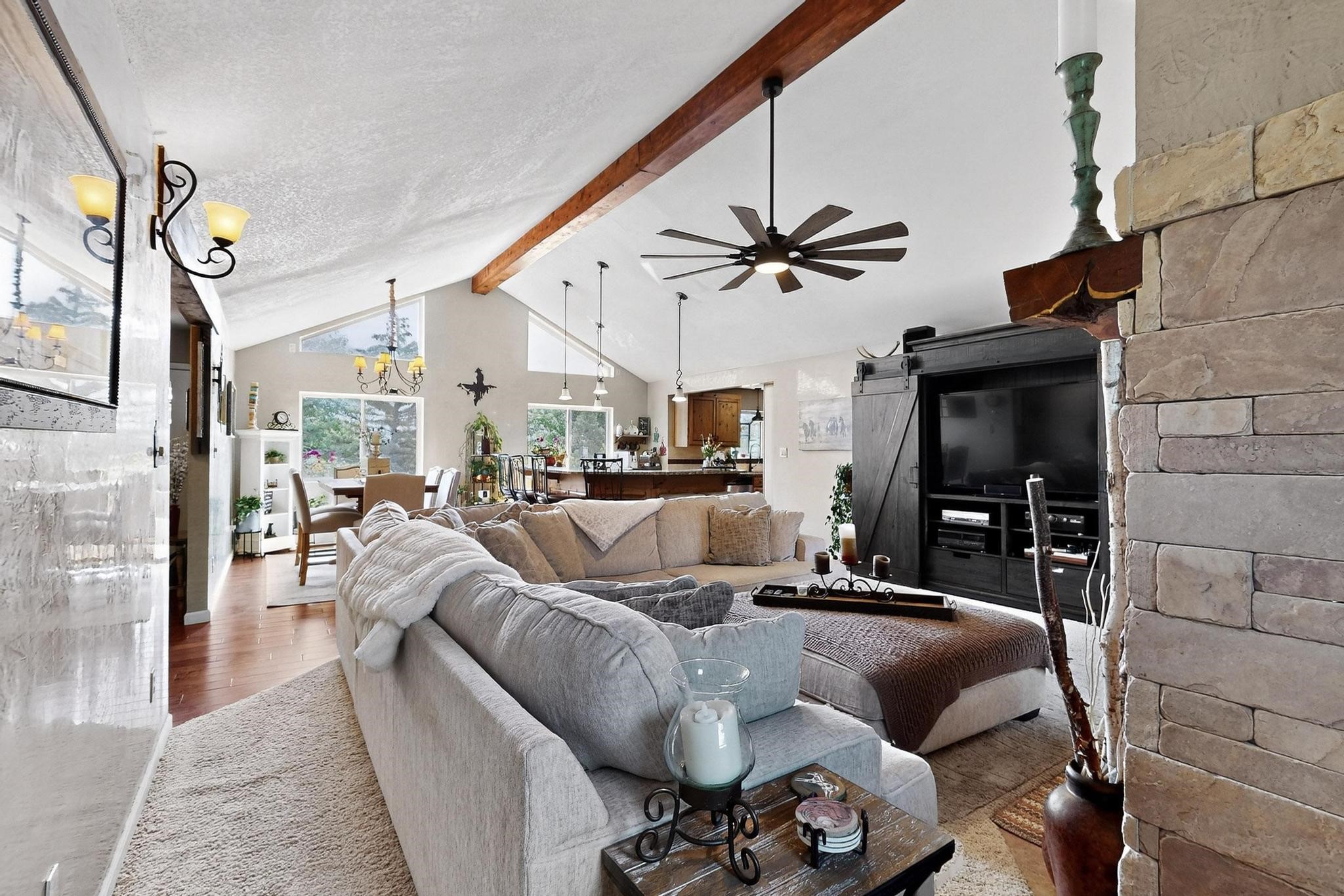 Welcome to 585 Navajo Rd, a rare move-in ready home offering 4 bedrooms, 3 bathrooms, and two bonus flex/office rooms--perfect for today's work-from-home lifestyle, hobbies, or guest space.Step inside to an inviting open-concept main level with vaulted ceilings, exposed beams, and abundant natural light. With a spacious granite island at its heart, the living, dining, and kitchen areas connect effortlessly for everyday living and entertaining.On the lower level, you'll find a second living room with a cozy fireplace, creating the perfect retreat for movie nights or quiet evenings. Throughout the home, you'll appreciate abundant storage options that keep everything organized and out of sight.This home has been carefully maintained and upgraded, featuring a new roof, new boiler, and new water heater for peace of mind.Outdoors, the property shines: the front yard is xeriscaped for low-maintenance beauty, while the backyard is a true oasis with a covered patio, pond, lush landscaping, and a large outdoor shed for all your tools and gear. There's even dedicated RV parking along the side of the house, adding functionality and value.Set on a corner lot in the highly sought-after Barranca Mesa neighborhood, you'll enjoy quiet surroundings, nearby schools, and quick access to trails and all that Los Alamos has to offer.