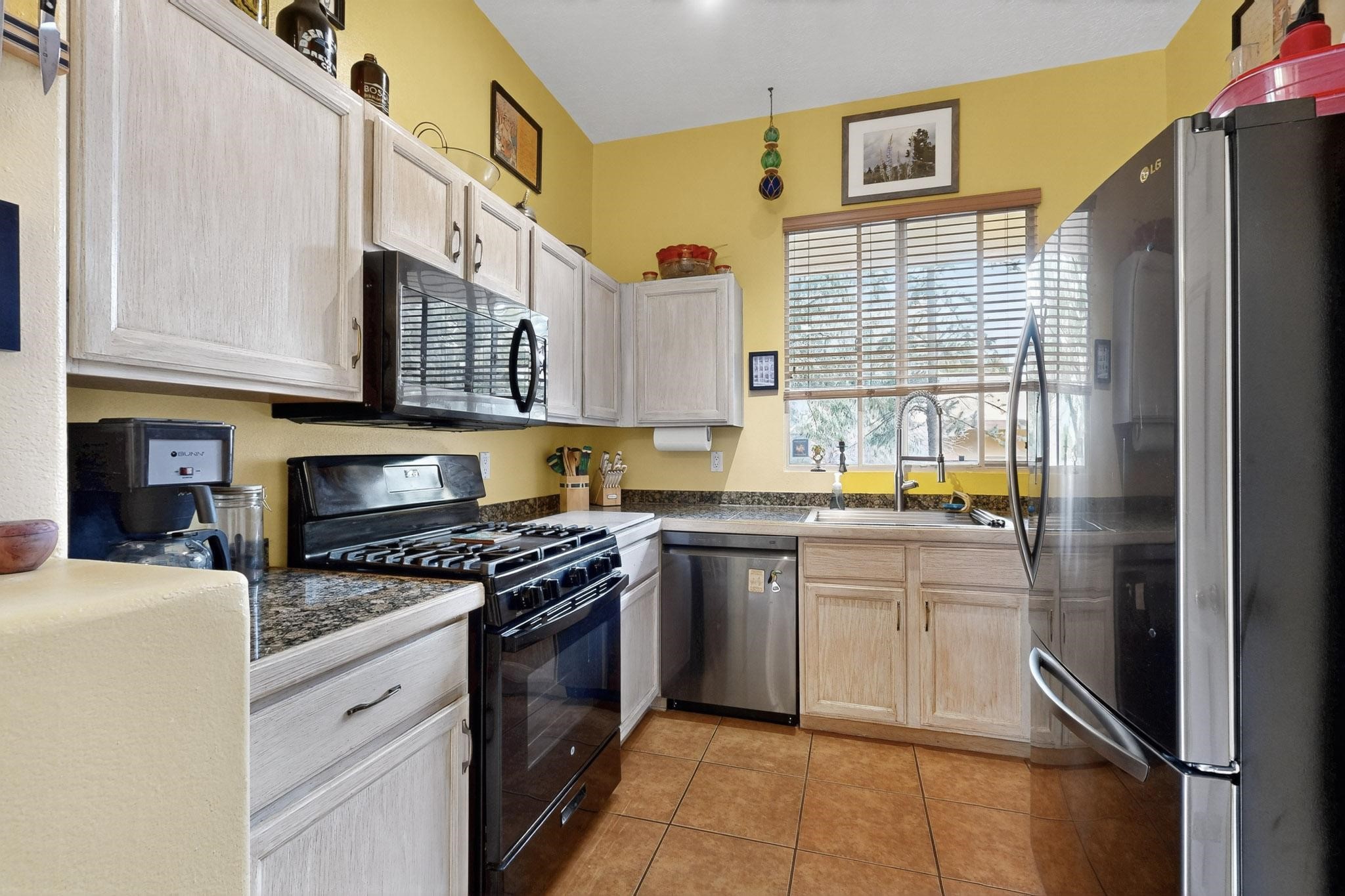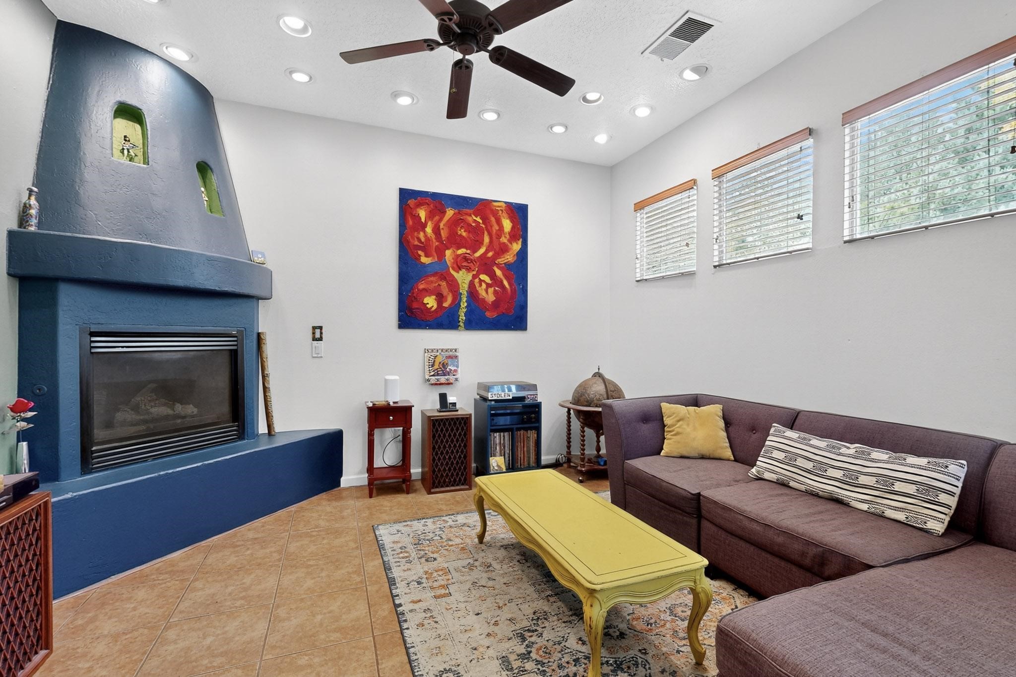 Welcome home to this warm and inviting 4-bedroom, 3-bathroom property located in one of Santa Fe's most convenient and family-oriented neighborhoods. Just minutes from top-rated schools, parks, and Southside amenities, this home offers the perfect blend of comfort and location. Enjoy a freshly updated interior with new kitchen appliances, new central heating and A/C, and professional paint throughout. The thoughtful 2-story floor plan provides room for everyone, including a spacious primary suite and three additional bedrooms, perfect for guests, family, or and a home office. Enjoy bright and colorful living areas with tall 10 foot ceilings, and nestle up by the cozy gas-powered kiva fireplace. The private fenced yard is ideal for kids, pets, and outdoor gatherings, and the 2-car heated and cooled garage can double as a year-round home gym or workshop. Move-in ready and close to everything your family needs!