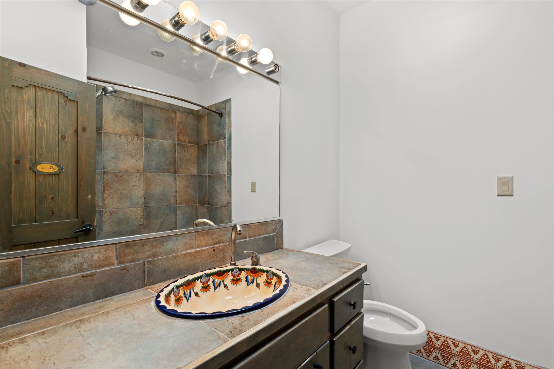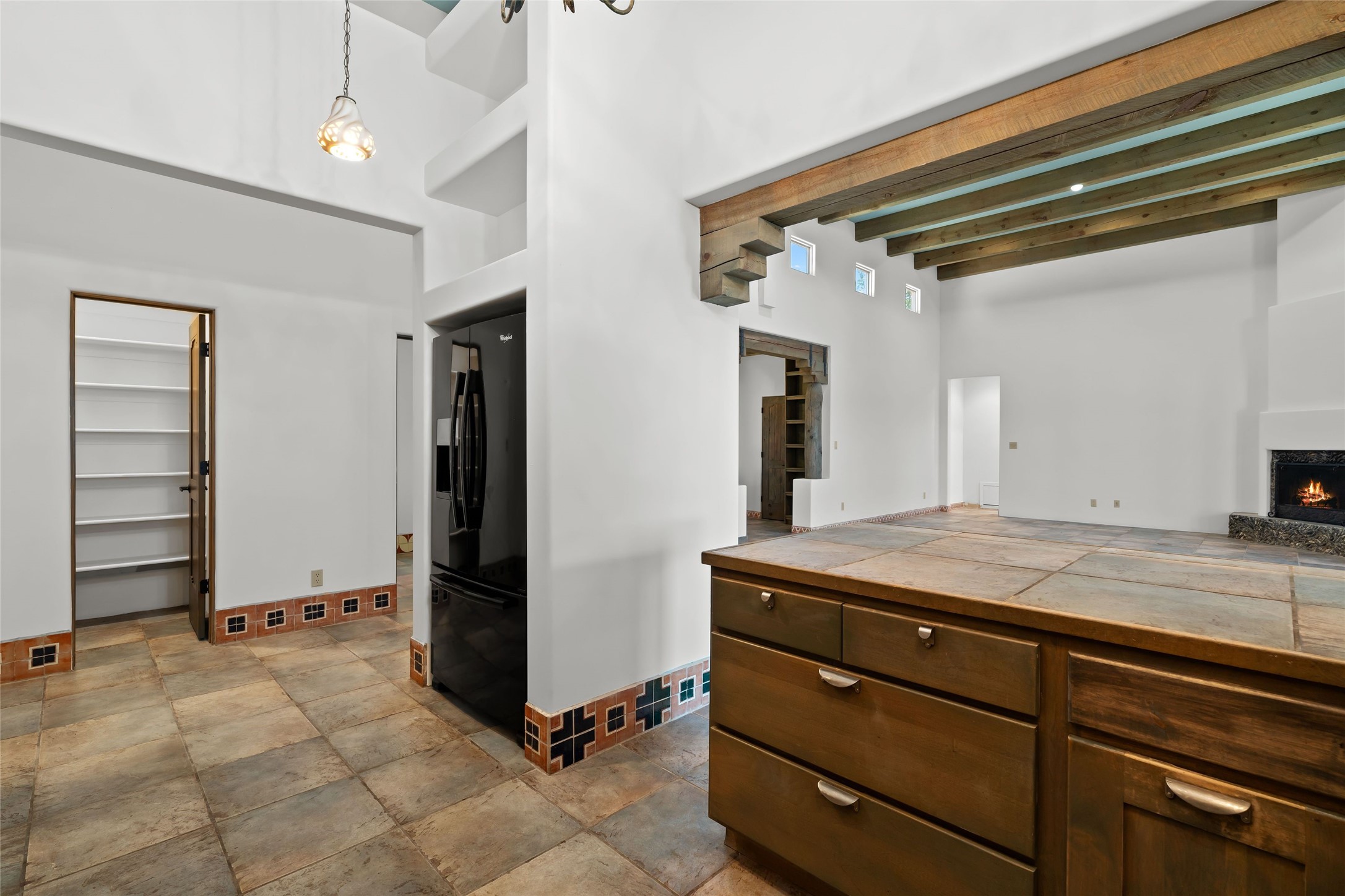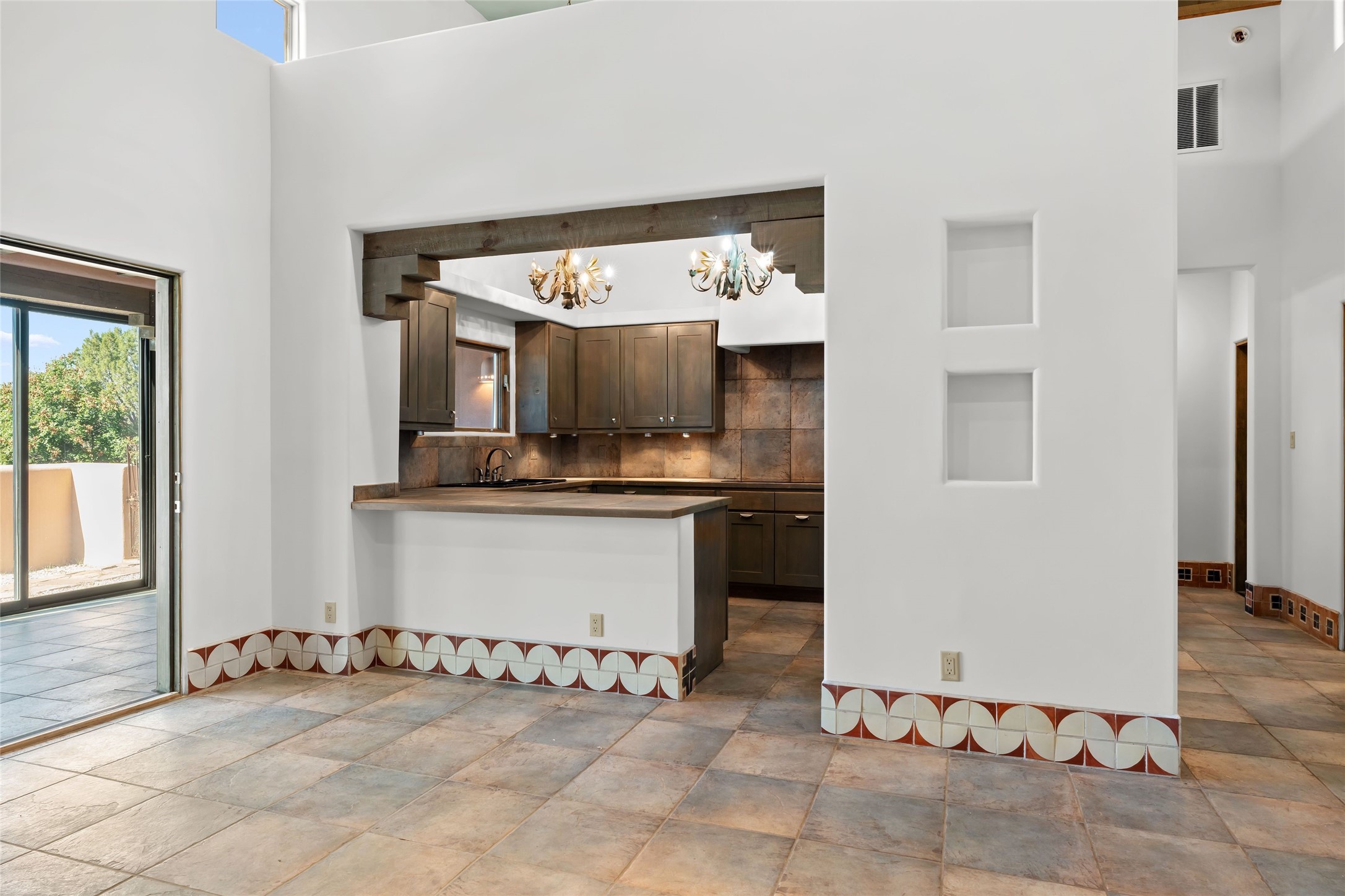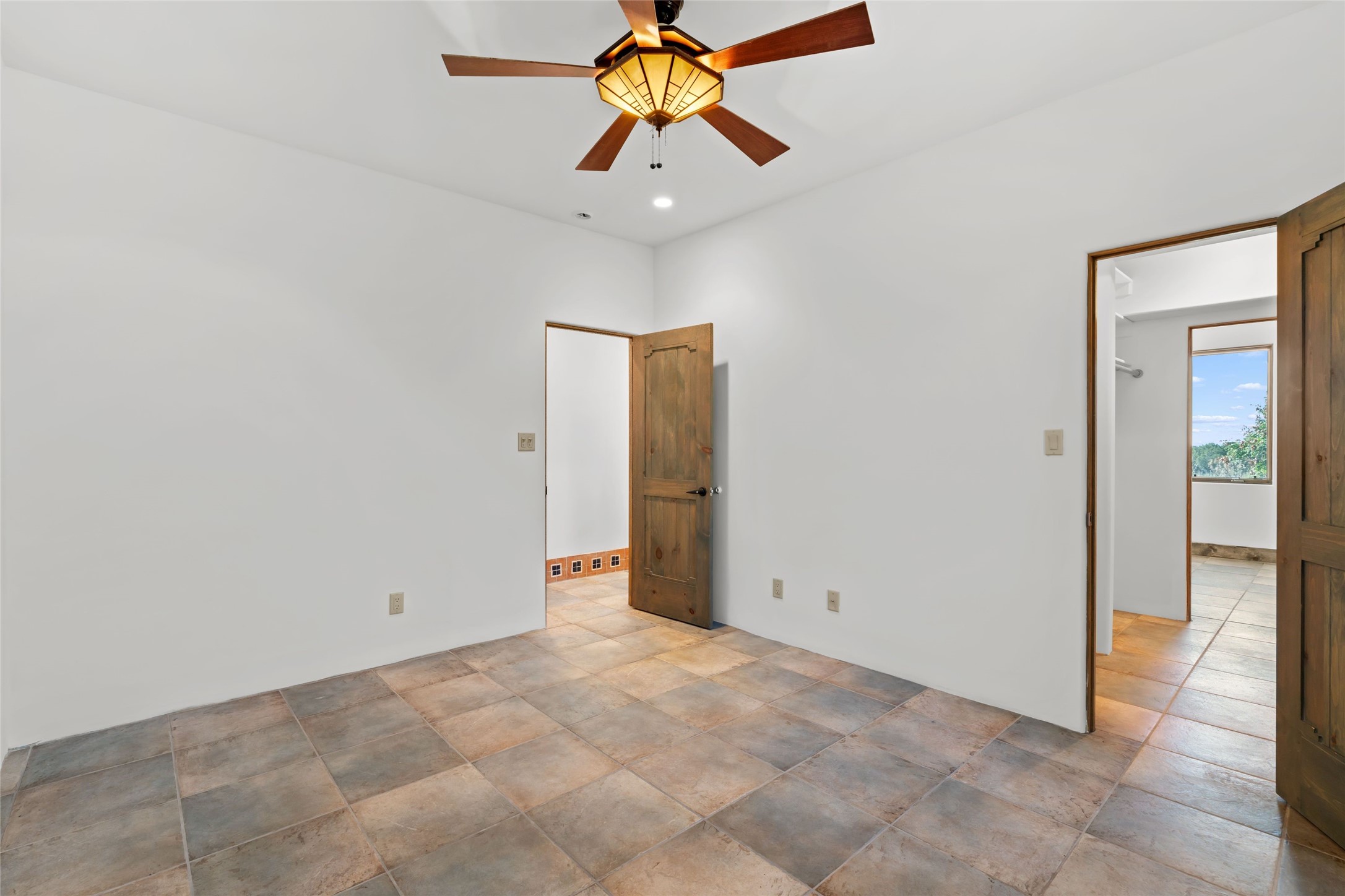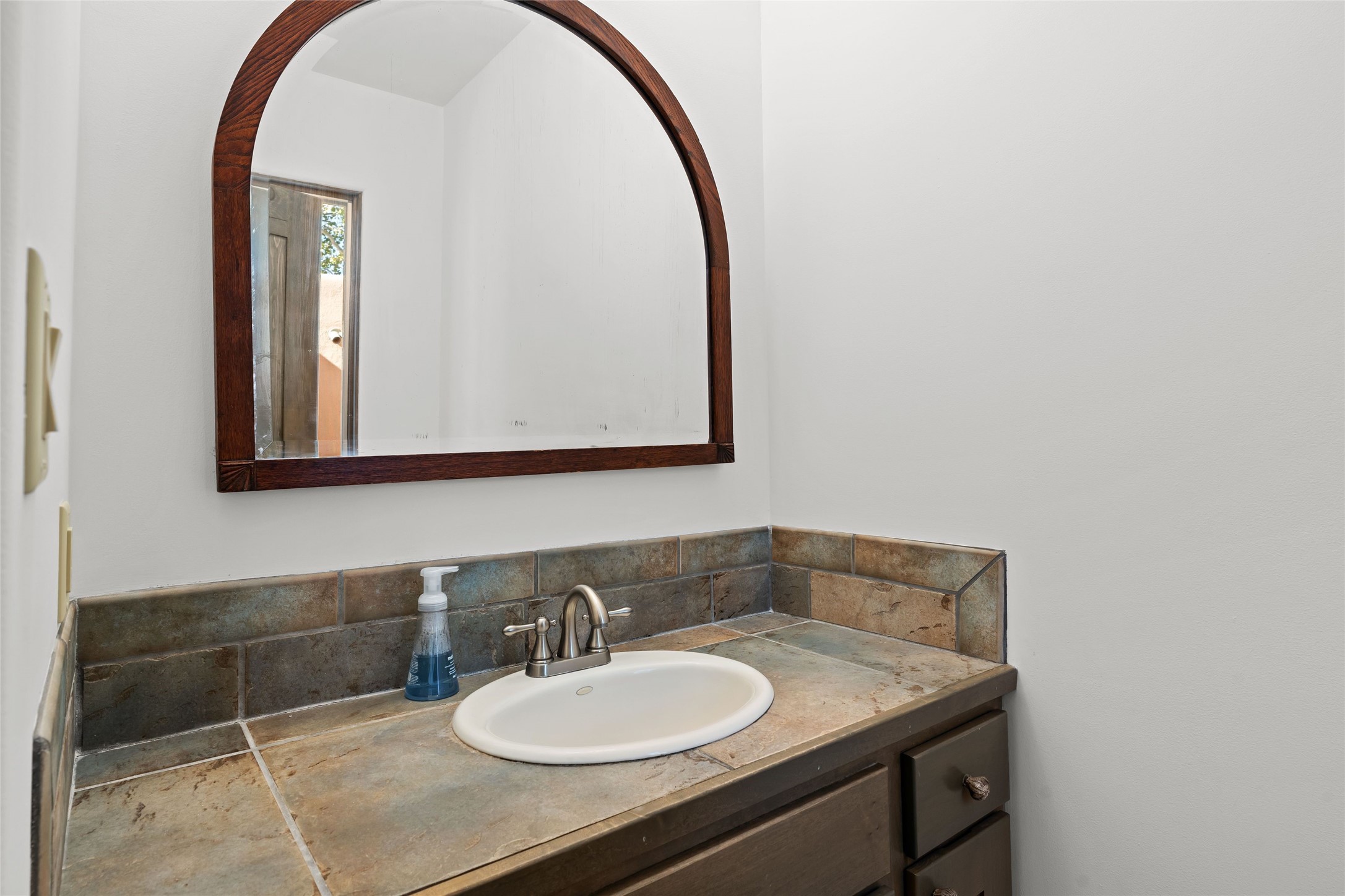 Nestled in the serene Eldorado/Lamy area, this home perfectly balances tranquility and convenience. Enjoy the peacefulness of the high desert while being just a short drive from Santa Fe's renowned dining, cultural attractions, and amenities. Embodying the timeless elegance of Southwestern architecture, this residence features classic vigas, rich wood accents, and authentic regional charm. Step through the foyer into an expansive living room, where soaring ceilings, clerestory windows, and a cozy fireplace create an inviting sense of space and light. The living and dining areas flow seamlessly into the adjacent kitchen, making it ideal for entertaining and everyday living. The well-designed layout includes a large walk-in pantry near the kitchen, as well as a laundry room with abundant storage and a utility sink. The split floor plan offers privacy, with the primary suite on the east side of the home and two generously sized secondary bedrooms with a nearby full bath on the west side. The spacious primary suite includes a dual-sink vanity, soaking tub, separate shower, large walk-in closet, and direct access to an expansive enclosed patio--perfect for enjoying quiet mornings or evening sunsets. A bonus room off the oversized two-car garage provides flexible space for an art studio, home gym, or private office/library. Recent upgrades include a new high-efficiency boiler and water heater and fresh interior paint. Outdoor spaces are equally impressive, featuring a gated courtyard with a covered portal and a walled backyard accessible from the patio or side gate. Set on approximately 4.66 acres, this property offers sweeping views of the Ortiz, Sandia, and Jemez Mountains. With its combination of comfort, character, and spectacular scenery, this home is a must-see Santa Fe retreat. PROPERTY IS BEING SOLD IN AS-IS CONDITION.