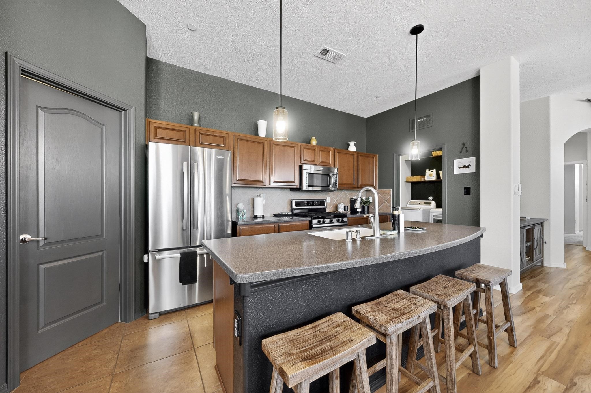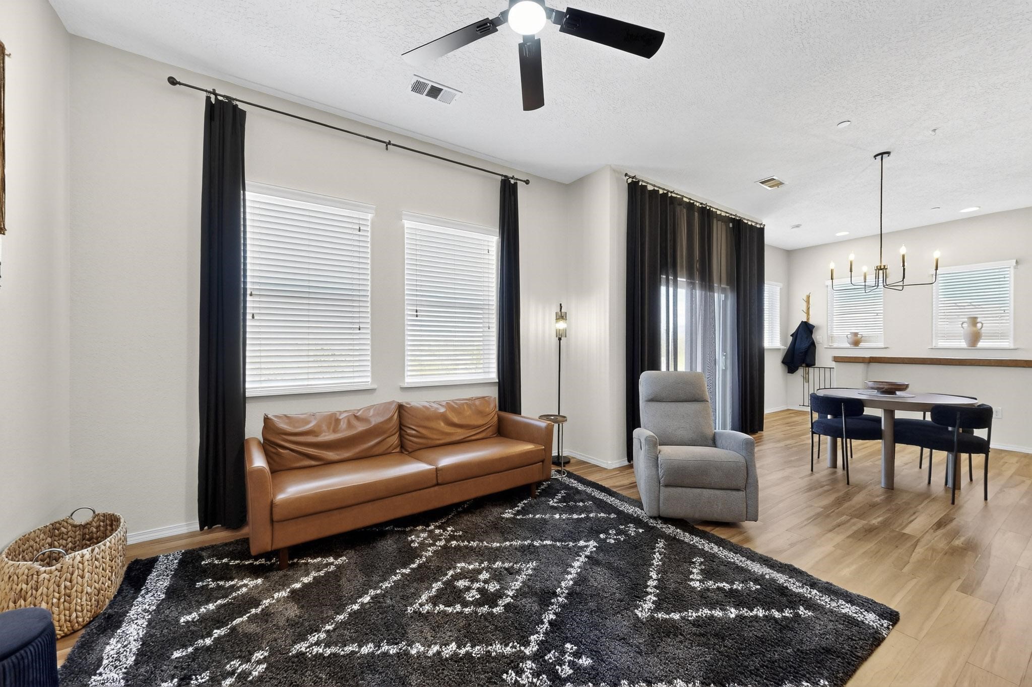 Welcome to this contemporary Southwest-inspired home. This home features modern updates, smart features, and mountain views. It includes a 1-car garage, 10-foot ceilings, updated fixtures, fresh paint, and tile accents throughout the main living, kitchen, and dining areas, with an open floor plan. Engineered vinyl plank flooring extends throughout the main areas. The kitchen has a generous island, pendant lighting, and stainless steel appliances. Both bedrooms feature plush carpet, and the primary bedroom includes a well-organized closet system, with additional shelving in the second bathroom. A dedicated laundry room includes an LG WiFi-enabled washer and dryer. Smart home features include a Yale front door lock, MyQ garage system, Ring doorbell, and Ecobee thermostat. Situated on a quiet cul-de-sac, the elevated corner lot provides views of the Jemez Mountains, sunsets, seasonal snowfall, and summer monsoons. The home receives abundant natural light and airflow throughout. This home is being sold fully furnished, including kitchen, bathroom, and bedroom essentials, along with coordinated furniture and dcor--ready for immediate occupancy (including quality kitchen items such as Calphalon cookware and knives, and OXO utensils). The home is located near a local park, shopping, and dining options, with access to I-25 and US-599.