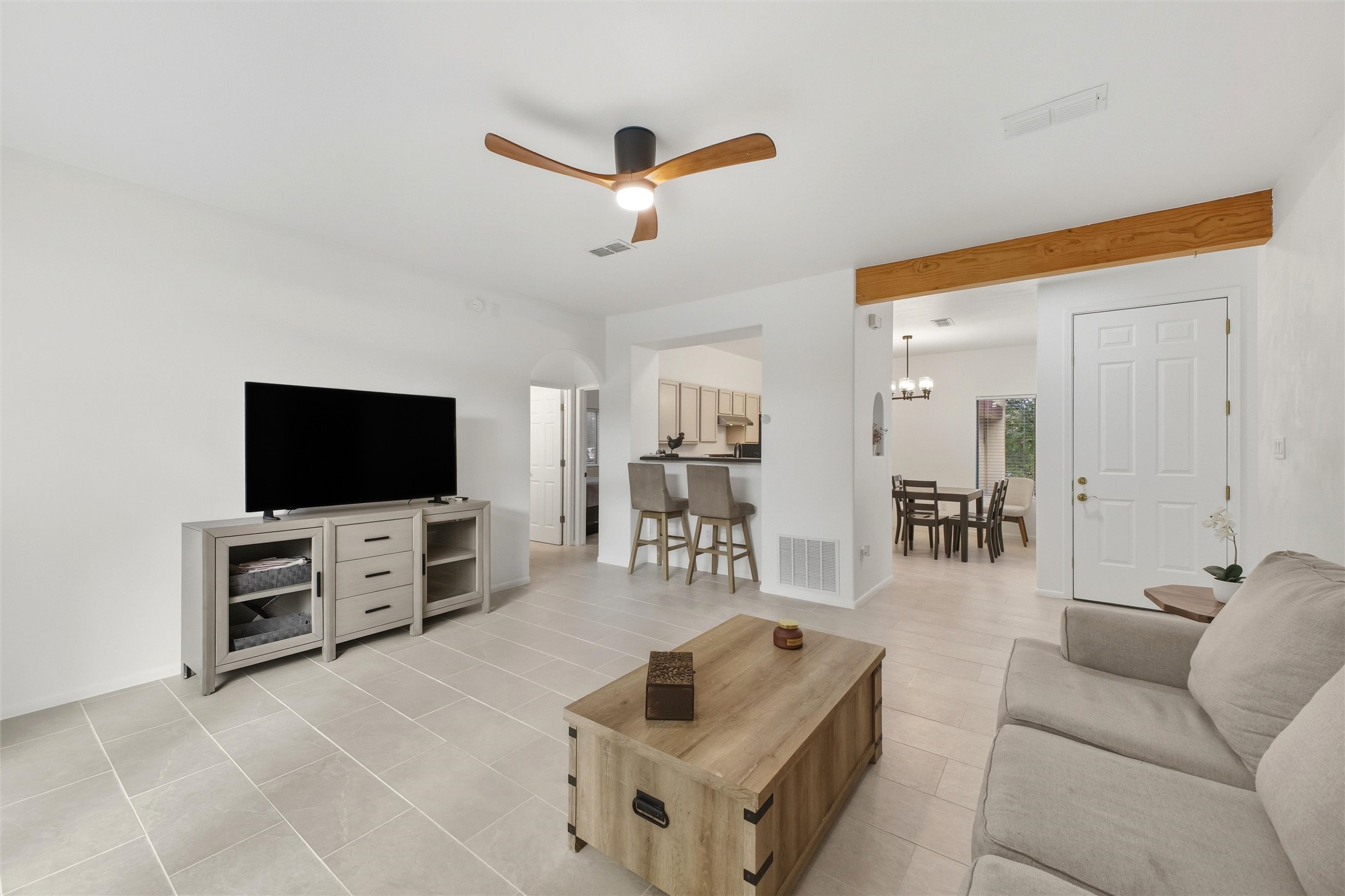 Updated in 2025, 4616 Apache Knoll blends warm Santa Fe style with modern comfort and easy, low-maintenance living. Sunlit interiors and a fresh, neutral palette set the tone as the main living and dining areas flow naturally to a modernized kitchen with refreshed cabinetry and counters, updated fixtures and lighting, and generous prep and storage--ideal for everyday cooking and casual gatherings. Bathrooms read clean and current with contemporary finishes, while comfortable bedrooms and a flexible additional space accommodate work, hobbies, or overnight guests. Throughout the home, coordinated 2025 improvements--interior/exterior paint, lighting upgrades, and selective hardware/trim--create a cohesive, move-in-ready feel. Outdoor living is equally simple and inviting: low-water landscaping and private patio areas offer sunny spots for morning coffee and shaded corners for evening conversation, with room to garden, grill, or just unwind. The setting balances quiet neighborhood living with quick access to parks, shopping, dining, and commuter corridors, placing everyday conveniences within minutes and the best of Santa Fe an easy drive away. Whether you're seeking a full-time residence or a low-maintenance home base, Apache Knoll delivers an updated, turnkey option in a desirable location.