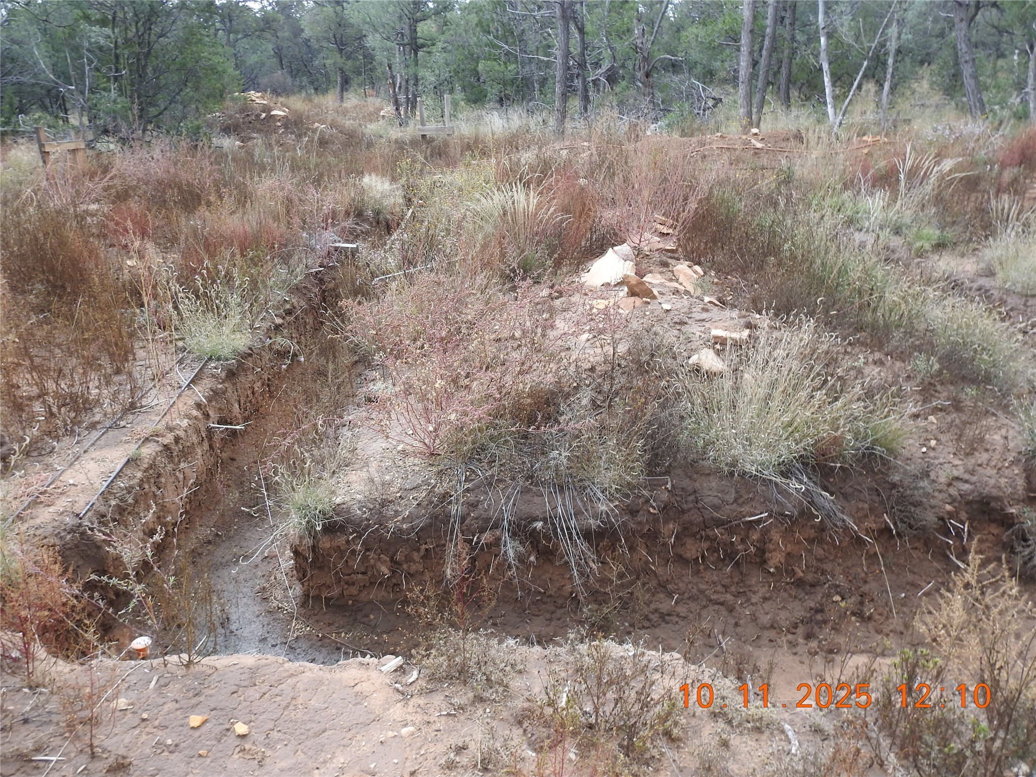 Current owner has been working to develop a homesite on lot 1C and has installed underground utilities to his home site in the center of the parcel. Community water is installed and flowing and electricity has been brought to the meter loop and once a meter is installed will be ready to use. Owner has begun developing a guest home with the foundation started. A septic tank and four pallets of concrete blocks will go with the sale. The septic tank needs to be installed. His approved HOA log home plans are available and all the approved permits will go with the sale. Owner had a serious accident which prompted this sale. The Tierra de Dios subdivision is surrounded by the Canon Blanco Ranch, BLM and Santa Fe National Forest. Horses are allowed on the lot & native wildlife are common here. Its not unusual to wake up to a herd of elk in your front yard. A working county fire station is located just around the corner from this parcel as well. Its a beautiful start... just needs someone to finish it. Call soon to arrange your tour.
