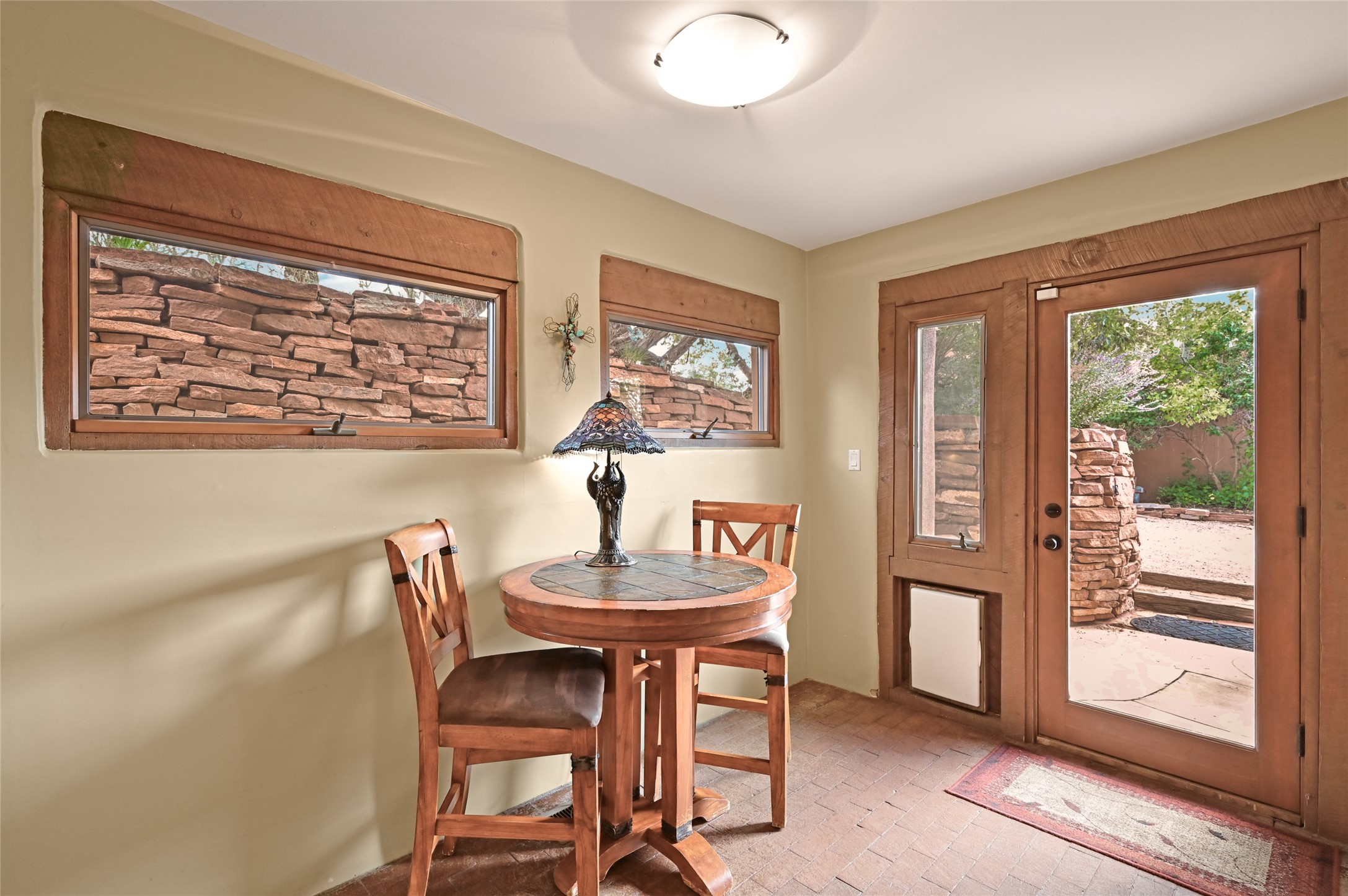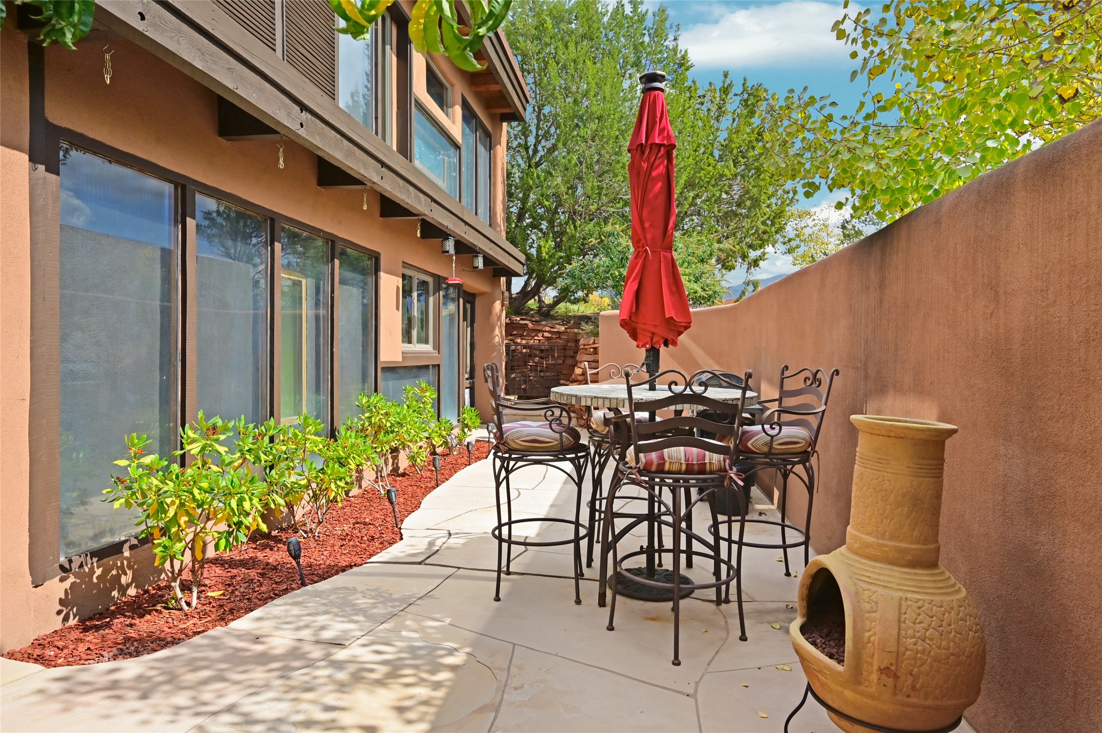 Tucked in the peaceful Santa Fe foothills, this beautiful Estancia Primera home offers comfort, character, and a wonderful sense of place. Thoughtfully designed for both everyday living and entertaining, the home blends classic Santa Fe details with warm, inviting spaces that flow easily indoors and out. The flexible four-bedroom layout includes a spacious primary suite with a private balcony that captures natural light and views to the South. Distinct living and dining areas connect to the kitchen and a cozy breakfast nook, creating ideal spaces for gathering and conversation. With ample flexible spaces and bedrooms, the floor plan provides room for an office, studio, or media space, accommodating a variety of lifestyles. Step outside to enjoy the patio and a large deck oriented to the southwest; perfect for relaxing in the sun, enjoying the mature aspen trees, or hosting evening gatherings beneath Santa Fe's gorgeous skies. The two-car attached garage adds everyday convenience, while the location offers an ideal balance of privacy and proximity. Just minutes from the historic Santa Fe Plaza, Fort Marcy Park, and is off the road to Ski Santa Fe, this serene retreat invites you to experience the best of Santa Fe living.
