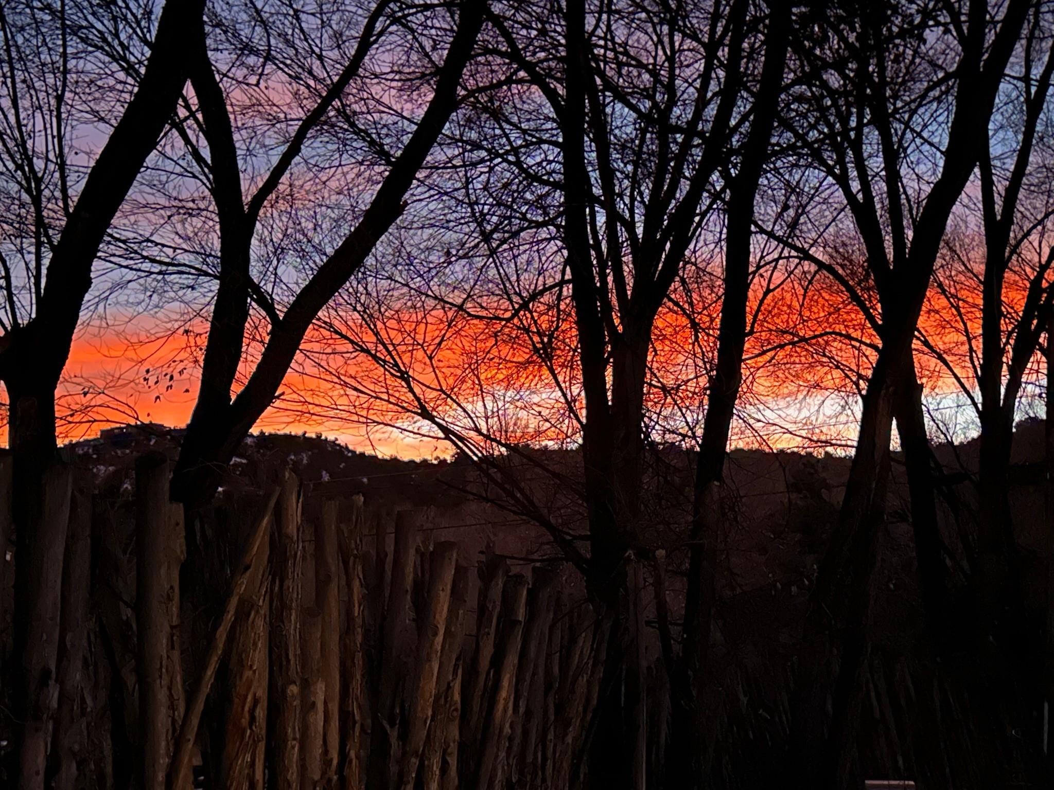 Location, location! A quick 8 minutes to Santa Fe Plaza and 5 minutes from the beloved Tesuque Village Market, this extraordinary 3,366 sq ft adobe sanctuary is nestled on .77 lush, tree-covered acre and adjacent to the seasonal Tesuque Creek. This 3 bdrm/3.5 bath residence blends soulful Santa Fe architecture built by notable local craftsmen, with regenerative land stewardship to support biodiversity. Flagstone floors, vigas, split cedar ceilings, and walls that transition organically from adobe to stone create a uniquely grounded and artistic living experience. The renovated kitchen features natural stone countertops and open dining area perfect for entertaining. Dining area opens to a covered portal with a natural gas firepit ideal for outdoor gatherings beneath the stars, rain or shine. There are two living areas: The original living room was designed for Japanese tea ceremony with glass wall that opens to views of the garden and creek side forest. The North living room features a dramatic fireplace, high ceilings, and connects to a serene ground-level primary suite with cedar lined closet, as well as a fenced garden area abundant with fruit trees and pollinator-friendly plants. The handcrafted staircase is built with no nails and leads to the upper level, where you'll find a guest suite and a second primary suite with a private deck and an infrared sauna - an immersive retreat in the treetops of Tesuque. Both have en suite bathrooms.Additional amenities include an automatic gated entry, labyrinth, private well with pristine water, EV charger, and a handcrafted workshop. There is so much more to say about this poetic property, but if you're seeking a Santa Fe home that honors nature, creativity, and intentional living, this eco-sanctuary in Tesuque is for you. Hiking access via arroyo from back yard and up the road .75 miles to the Lower Windsor Trailhead offer instant connection to the Sangre de Cristomountains and the coveted ecology of the Tesuque Valley.