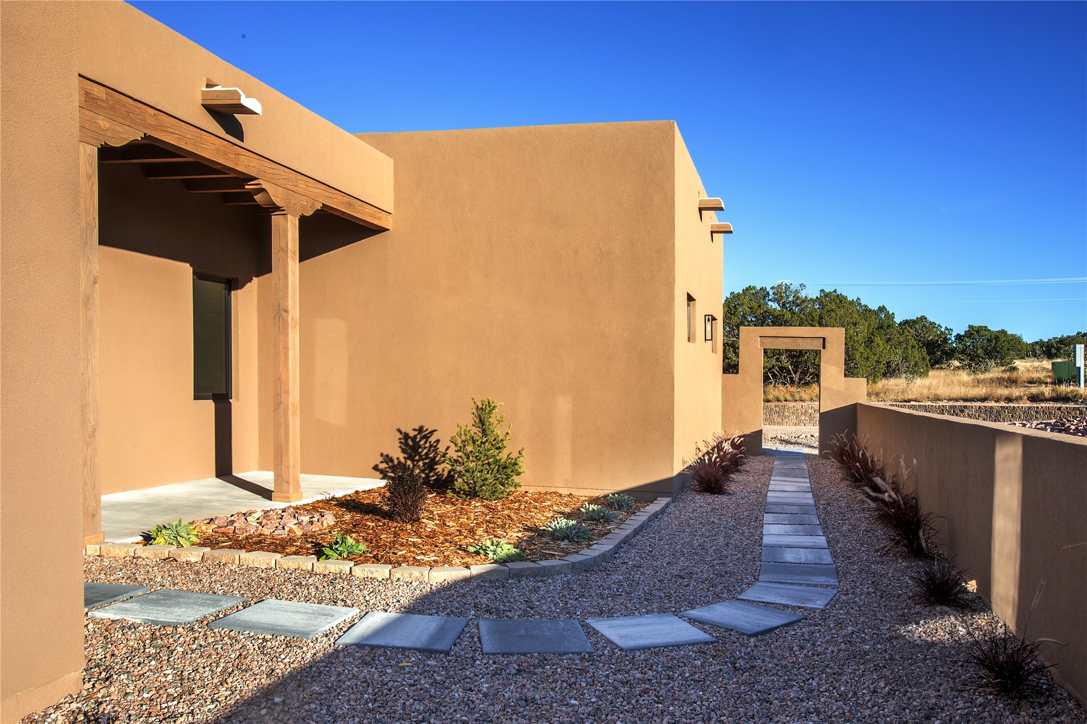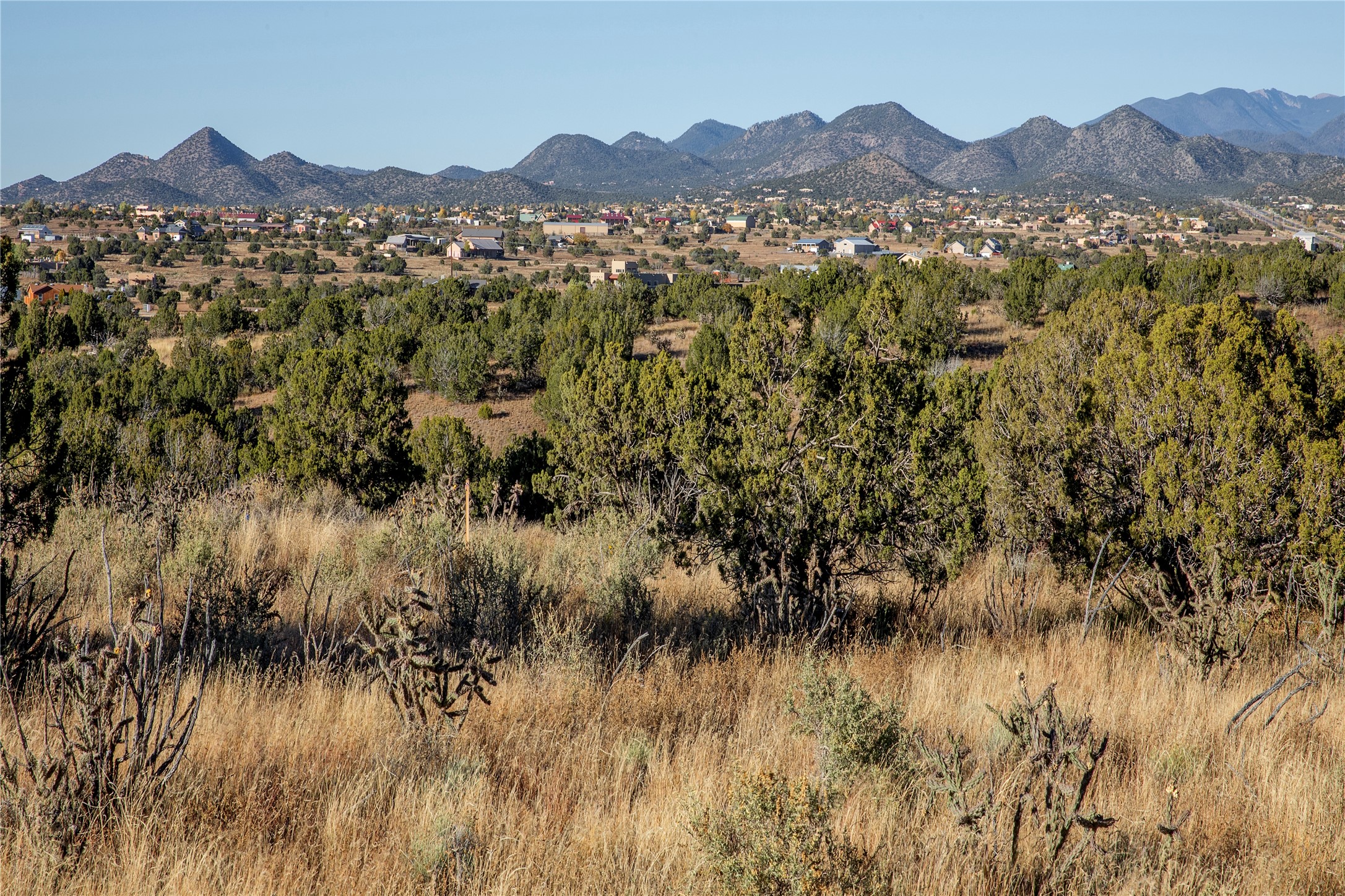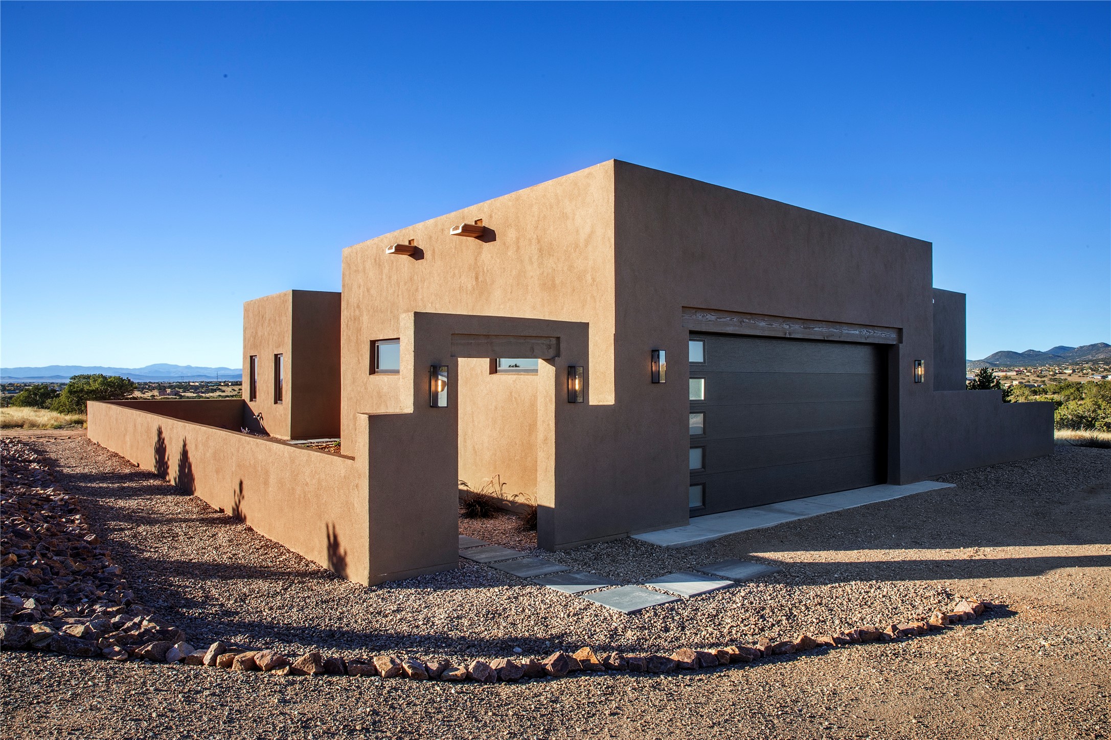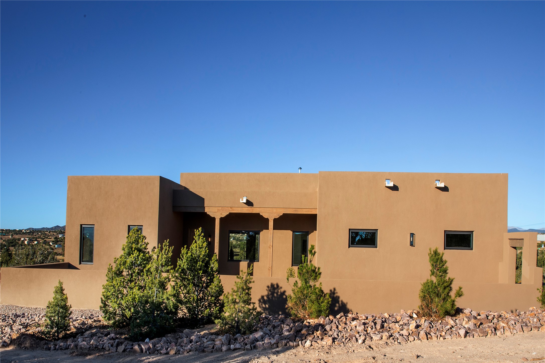 What an incredible place! The views are outstanding! Here you have 6.19+/- acres on a hilltop with views that reach far to the north and far to the west. At this property you can have an art studio or a business right at your home. There is plumbing and septic, and electric all set up to build another building on this lot. You can build an additional casita or guest house! This home is complete and ready to move into. It has the landscaping done with irrigation. The windows were placed to maximize light as well as mountain views. This modern home has gorgeous elements that also tie in the traditional styles of Santa Fe. There are viga beams in the main open concept living/dining/kitchen area. Both the front and back porches have Fir posts and beams with plenty of space to entertain or just relax and take in the beauty of this place. Watch the weather with a cup of coffee or tea on the back porch. There is a Douglas Fir custom-built modern vanity in the guest bathroom as well. The floors are a gorgeous, real wood engineered white oak. The doors are all a beautiful alder wood. Here you have a certified Green design home with Energy Star appliances, a HERS rating certification, and a very well-insulated house with highly insulated windows. This home comes with A/C and forced air heating, which is great when you want the temperature to adjust right away. Every detail was thought out and selected with a discriminating eye.You must come check this beautiful home out to feel what it will be like to live here.