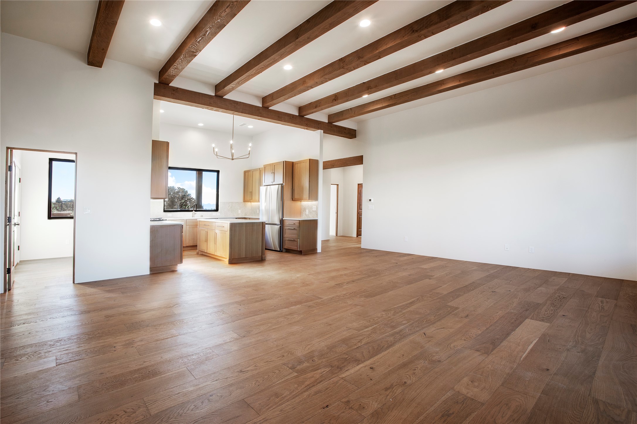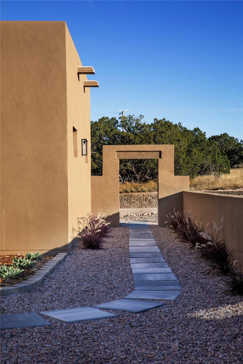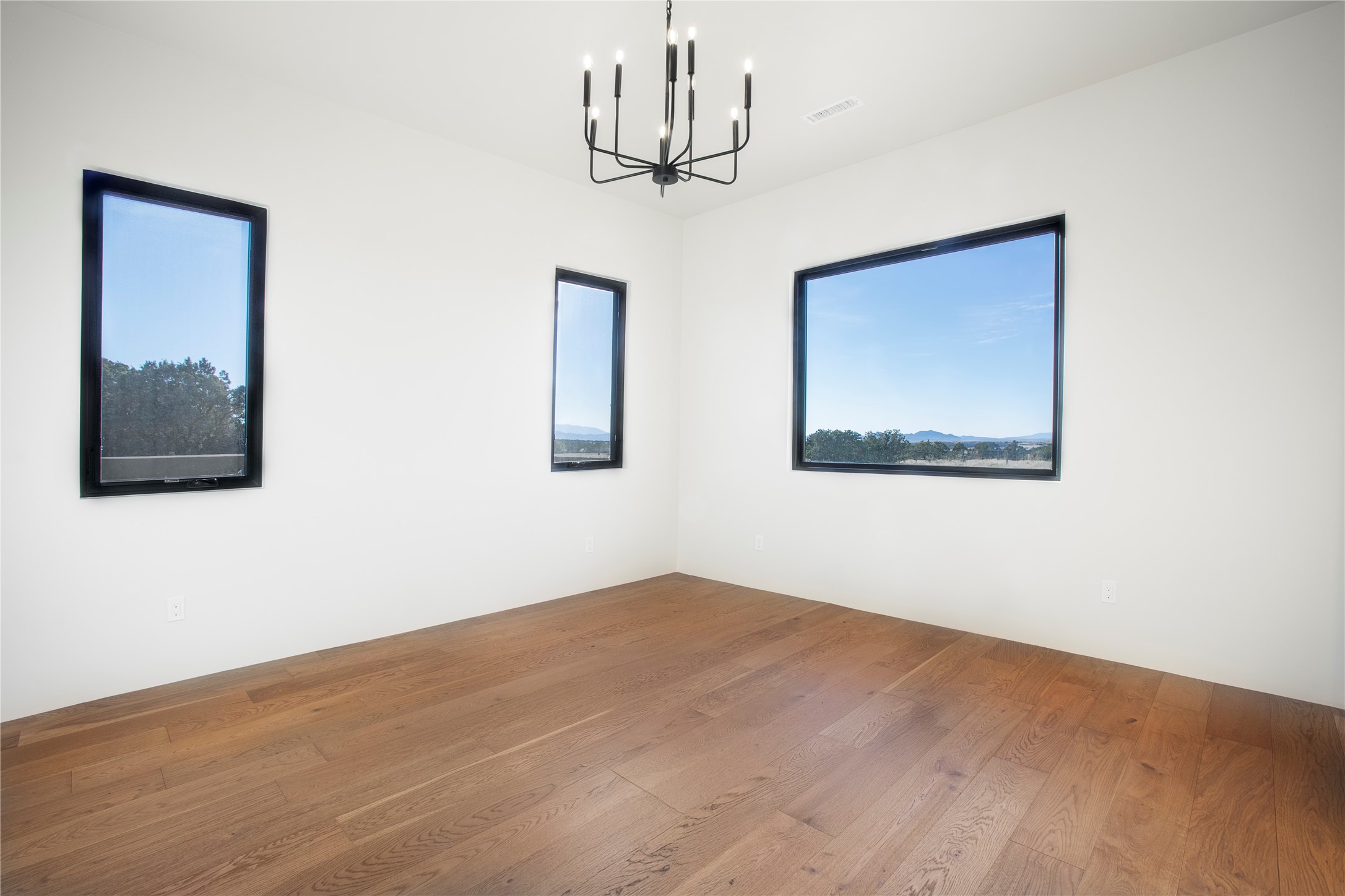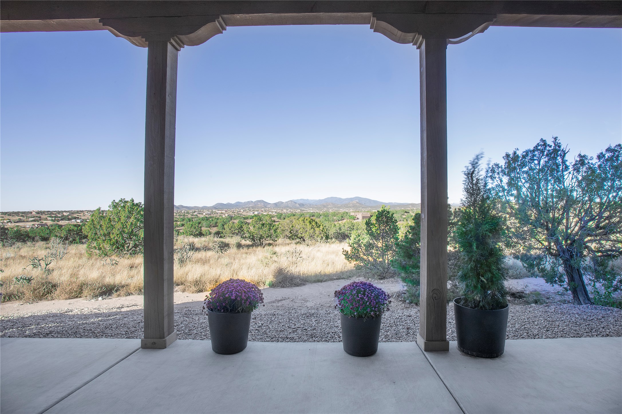 What an incredible place! The views are outstanding! Here you have 6.19+/- acres on a hilltop with views that reach far to the north and far to the west. At this property you can have an art studio or a business right at your home. There is plumbing and septic, and electric all set up to build another building on this lot. You can build an additional casita or guest house! This home is complete and ready to move into. It has the landscaping done with irrigation. The windows were placed to maximize light as well as mountain views. This modern home has gorgeous elements that also tie in the traditional styles of Santa Fe. There are viga beams in the main open concept living/dining/kitchen area. Both the front and back porches have Fir posts and beams with plenty of space to entertain or just relax and take in the beauty of this place. Watch the weather with a cup of coffee or tea on the back porch. There is a Douglas Fir custom-built modern vanity in the guest bathroom as well. The floors are a gorgeous, real wood engineered white oak. The doors are all a beautiful alder wood. Here you have a certified Green design home with Energy Star appliances, a HERS rating certification, and a very well-insulated house with highly insulated windows. This home comes with A/C and forced air heating, which is great when you want the temperature to adjust right away. Every detail was thought out and selected with a discriminating eye.You must come check this beautiful home out to feel what it will be like to live here.