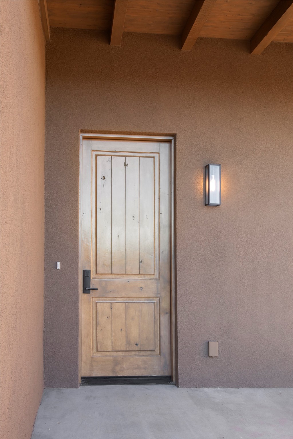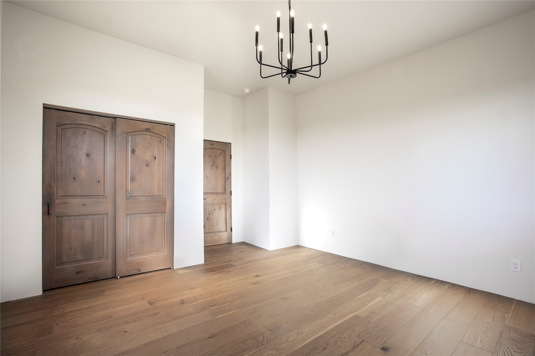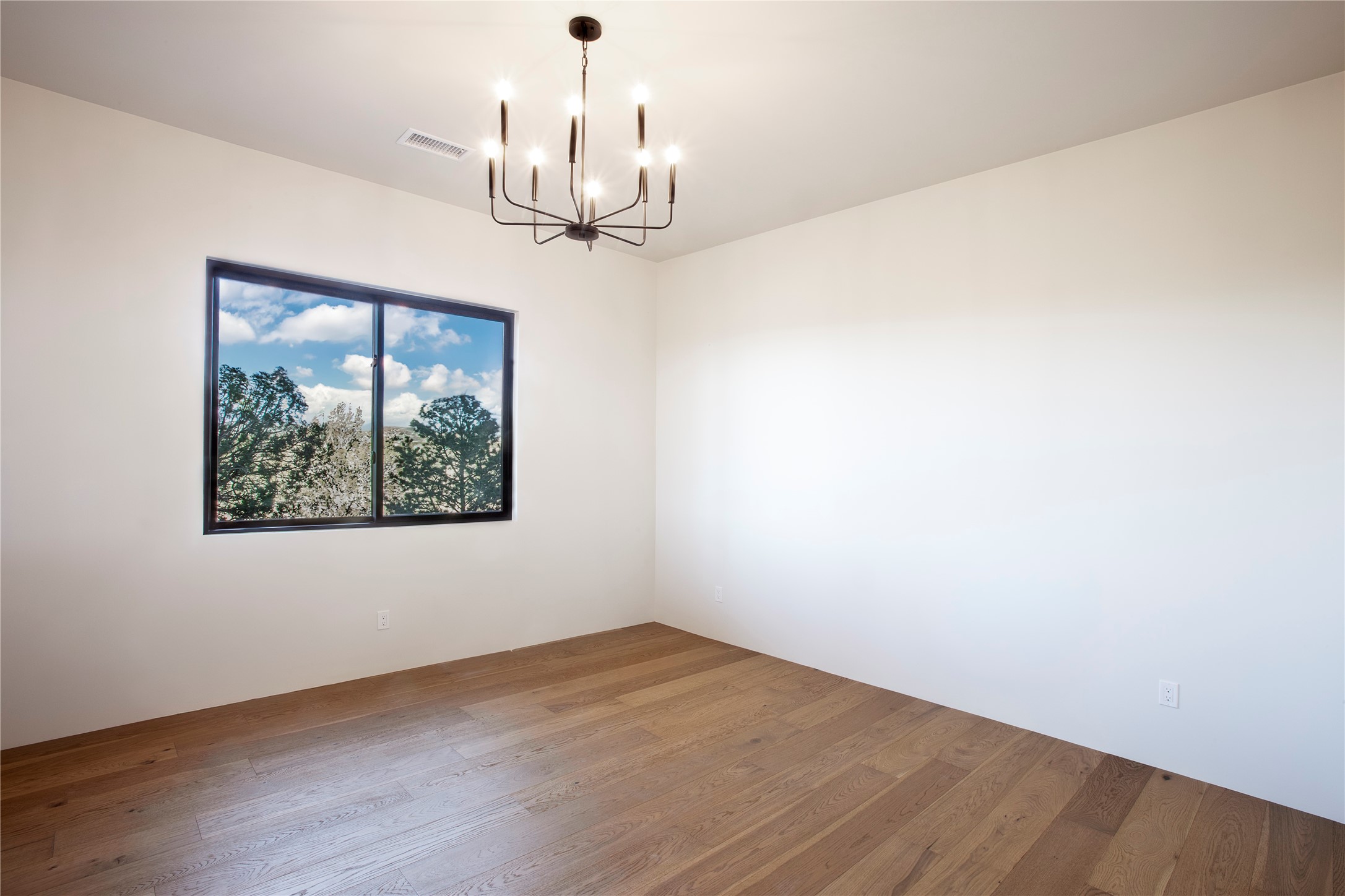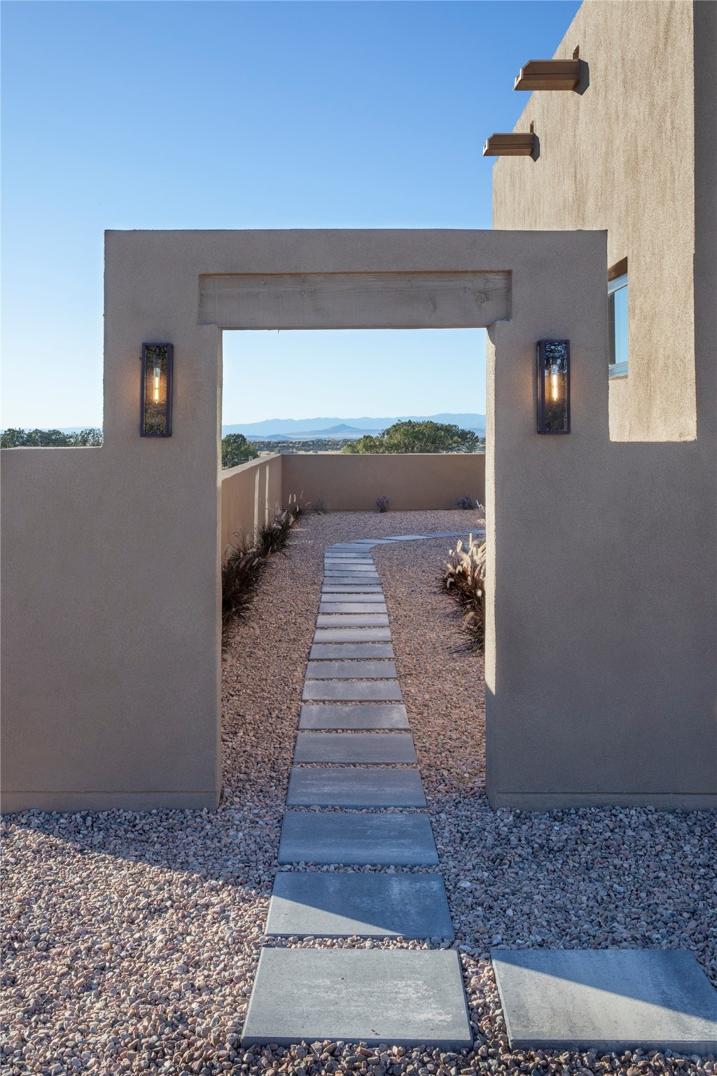 What an incredible place! The views are outstanding! Here you have 6.19+/- acres on a hilltop with views that reach far to the north and far to the west. At this property you can have an art studio or a business right at your home. There is plumbing and septic, and electric all set up to build another building on this lot. You can build an additional casita or guest house! This home is complete and ready to move into. It has the landscaping done with irrigation. The windows were placed to maximize light as well as mountain views. This modern home has gorgeous elements that also tie in the traditional styles of Santa Fe. There are viga beams in the main open concept living/dining/kitchen area. Both the front and back porches have Fir posts and beams with plenty of space to entertain or just relax and take in the beauty of this place. Watch the weather with a cup of coffee or tea on the back porch. There is a Douglas Fir custom-built modern vanity in the guest bathroom as well. The floors are a gorgeous, real wood engineered white oak. The doors are all a beautiful alder wood. Here you have a certified Green design home with Energy Star appliances, a HERS rating certification, and a very well-insulated house with highly insulated windows. This home comes with A/C and forced air heating, which is great when you want the temperature to adjust right away. Every detail was thought out and selected with a discriminating eye.You must come check this beautiful home out to feel what it will be like to live here.